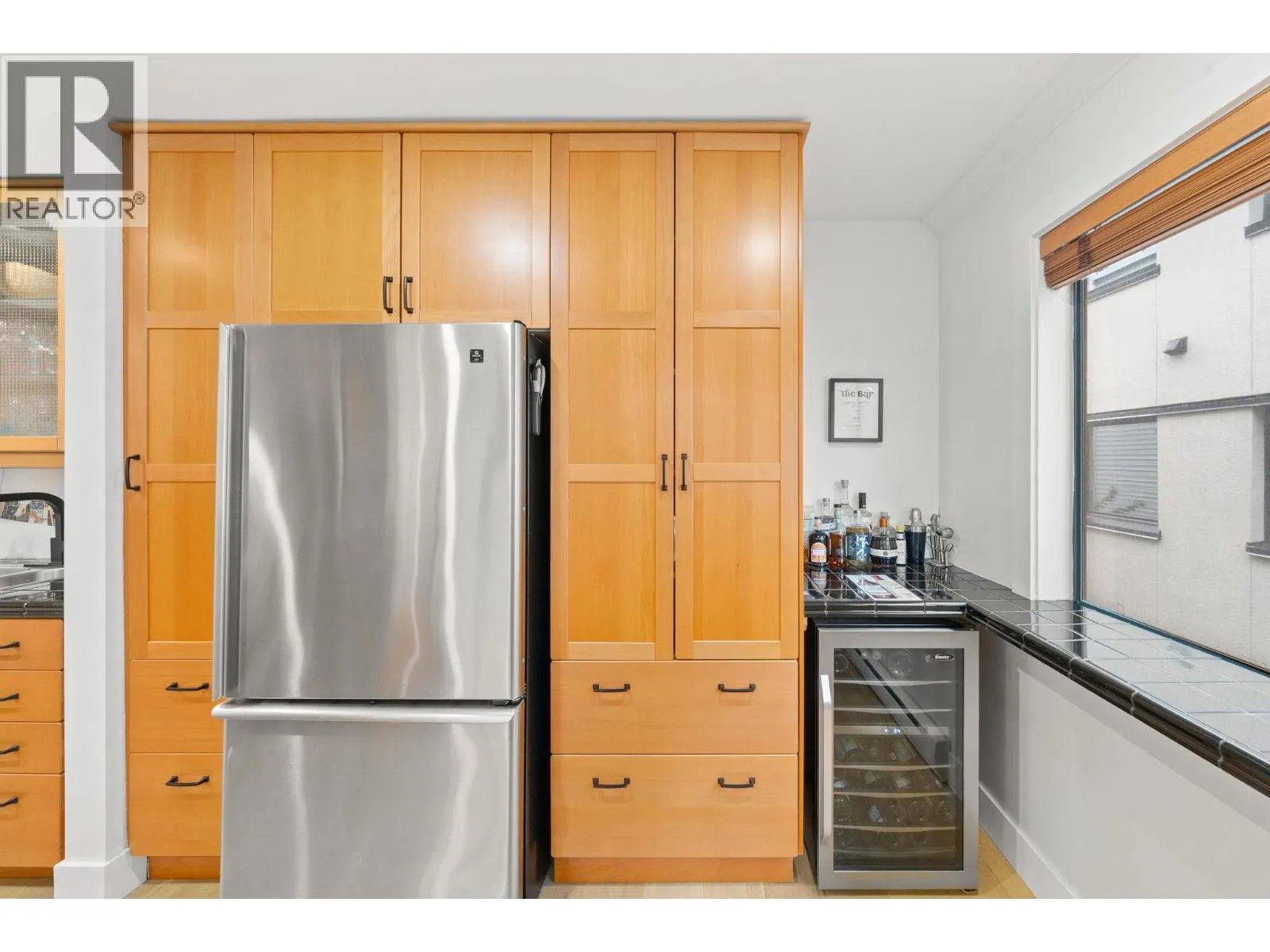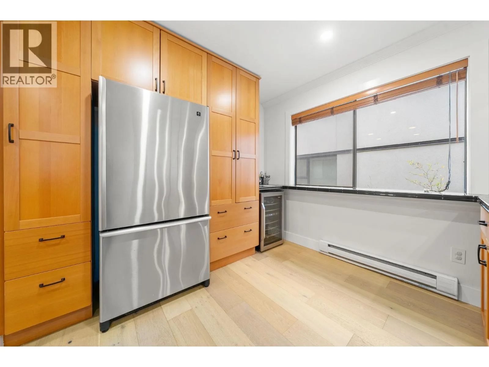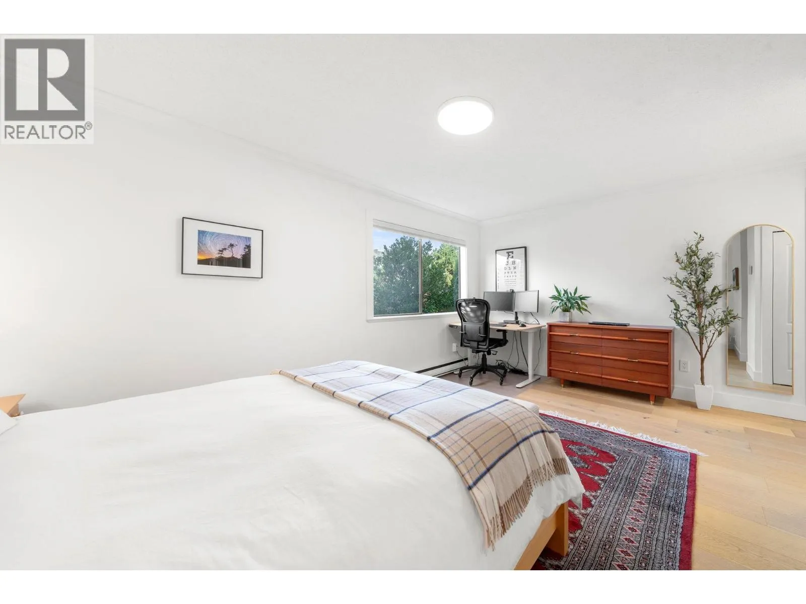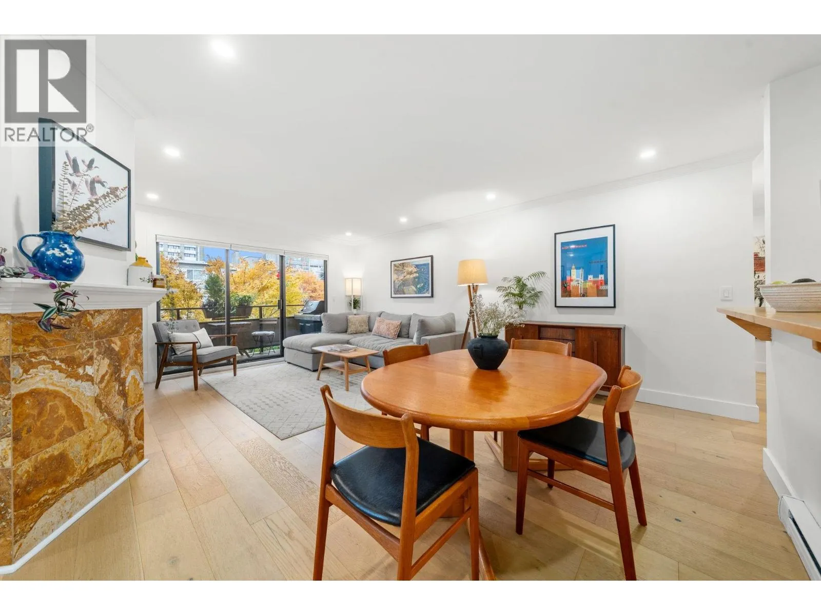Boutique, 5 unit strata in a no fuss, easy maintenance building! Suite 201 occupies the entire front half of the floor, allowing for windows on 3 sides of the home. At nearly 1,200 sqft, there are zero compromises on space. The suite has been caringly updated & features wide plank Oak hardwood, updated lighting, blinds, paint & trim throughout. Enjoy open concept living & a large L shaped deck for summer evenings. Features include a dual-sided f/p, cozy den, & large updated kitchen with coffee bar area. The bedrooms are spacious, including a primary with dual closets & a full ensuite. Tons of in suite storage, plus 2 external lockers & 1 parking. Pets allowed & in suite laundry allowed with strata approval. Roof recently replaced! Walking distance to future Broadway line and VGH! (id:27476)