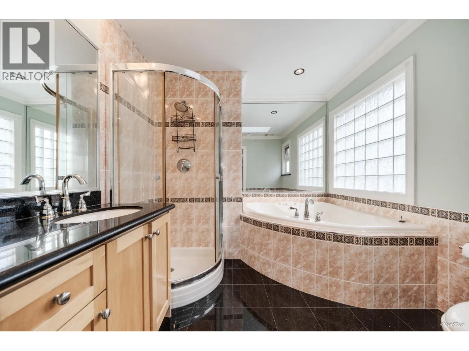 Meticulously maintained 3 level home on a 50´ frontage lot in prime Renfrew Heights, offering breathtaking mountain & city views! This spacious residence features 4 bedrooms with 4 full ensuite baths upstairs, plus a main-floor bedroom & full bath. The basement includes two self-contained 1-bedroom suites, each with private entry & 2 full baths. Luxurious details includes, custom granite foyer with 9´ ceilings, gourmet kitchen with island & spice kitchen, large family room, 3 granite fireplaces, wet bar, skylights, built-in vacuum & alarm system. Enjoy unobstructed views from the rooftop deck (re-done 2022). Fully fenced low-maintenance yard with automated gate, RV parking & triple garage backing onto a serene park. Steps to Vancouver Christian School, Falaise Park & amenities. (id:27476)