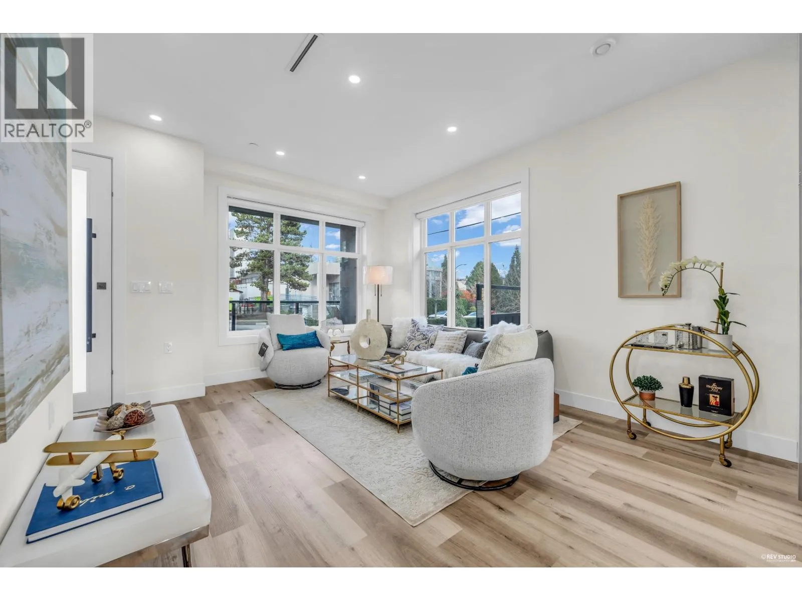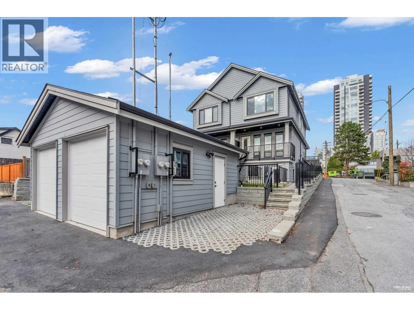 Impeccably built and almost new side-by-side duplex in the heart of Marpole! This elegant residence offers nearly 2,000 sq.ft. of bright, thoughtfully designed living space featuring 3 generous bedrooms upstairs and a 2-bedroom legal suite below with separate electrical meters and hot water tanks. Quality craftsmanship throughout with engineered hardwood floors, high ceilings, and air conditioning for year-round comfort. A large detached garage plus one open parking space provide convenience and flexibility. Ideally located near top schools, parks, and just a short walk to Marine Gateway SkyTrain, shops, and restaurants-where superior quality meets exceptional lifestyle! Equipped with 200-amp electrical service and two Level-2 outlets, making it ideal for EV charging or future upgrades. (id:27476)