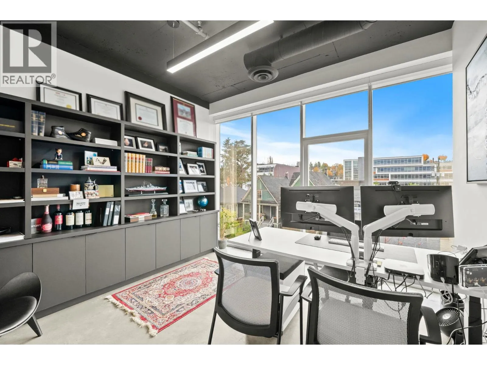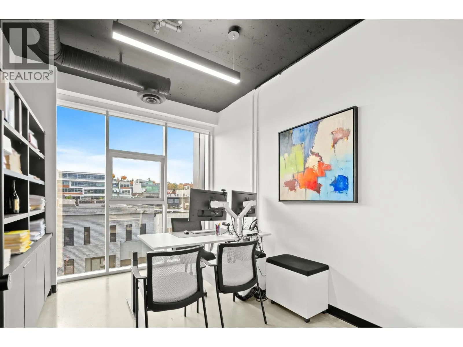 This bright, modern unit features four private offices, a boardroom, and a kitchen within an efficient layout ideal for professional, creative, or small business use. Includes rooftop deck access and two secure underground parking spaces included in the lease offer. Excellent exposure with convenient access to transit, Olympic Village, and nearby amenities. A rare opportunity in one of Vancouver's most sought-after commercial areas. (id:27476)
