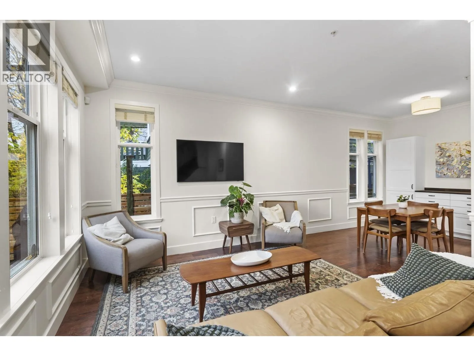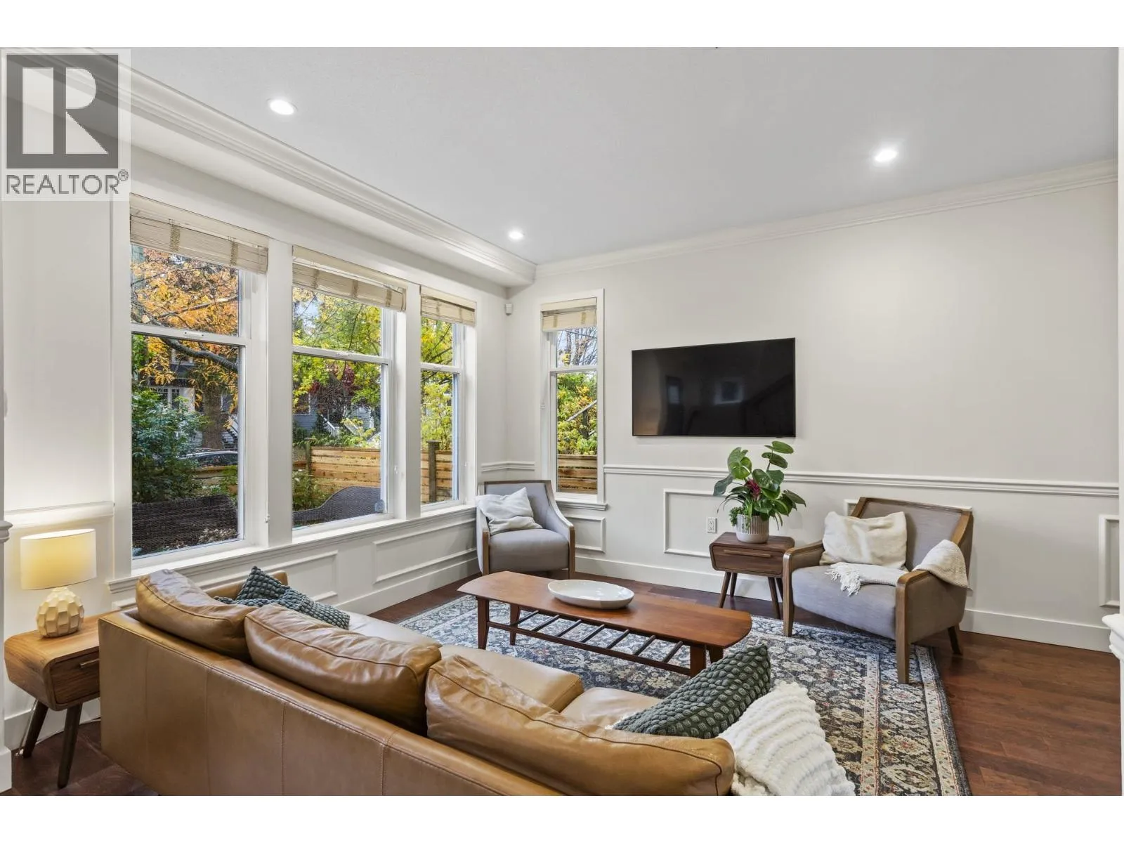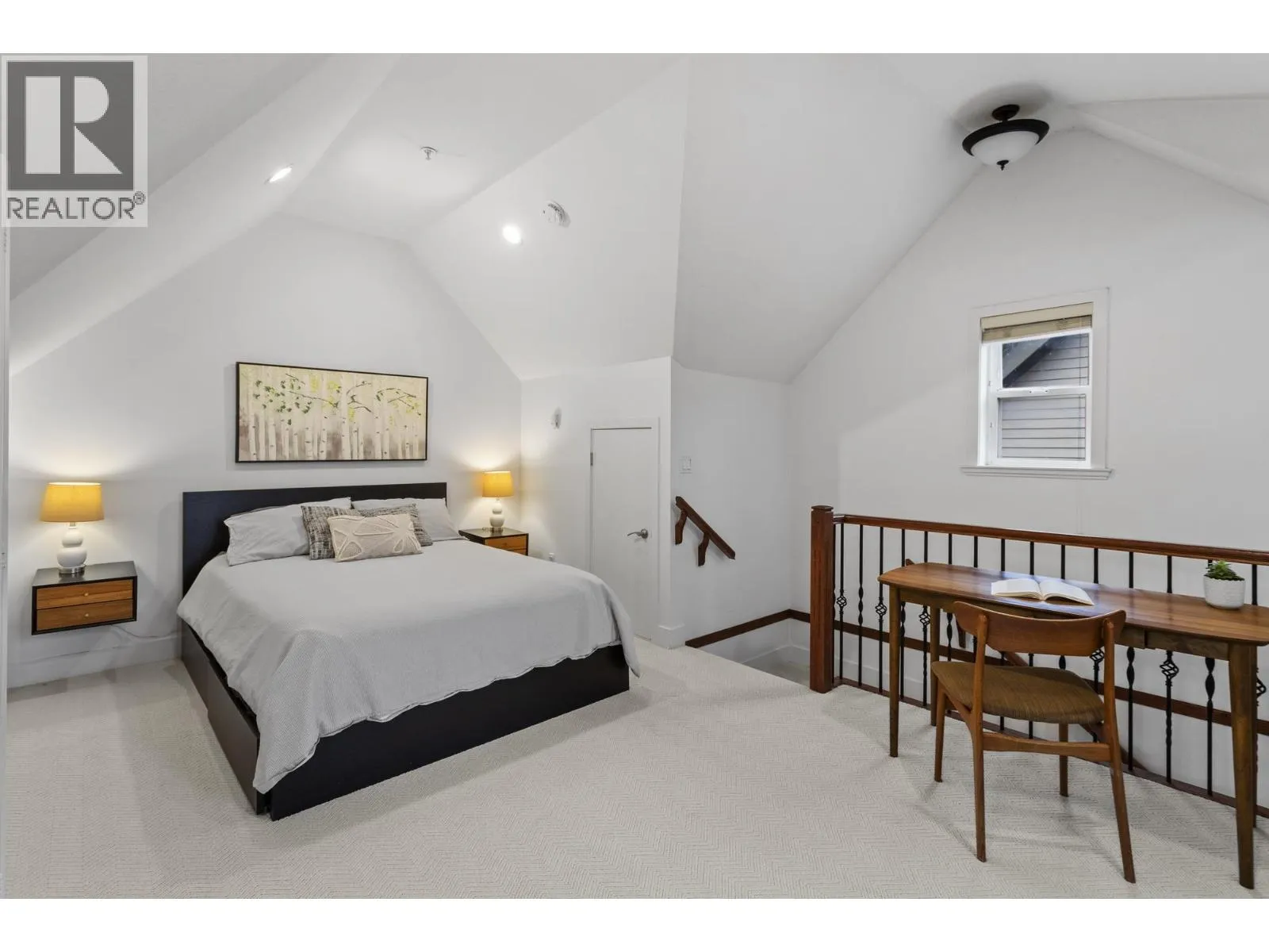 This front 1/2 duplex is a rare find, located on a quiet, family-friendly street. Architecturally designed by Birmingham & Wood, 'Welwyn Mews' is an exclusive collection of 5 craftsman-style homes. The home feels bright and spacious with an open-concept main floor, powder room, and S/S appliances. The 2nd level features 2 bright bedrooms and a full bath. Ascend to the 3rd-floor primary suite, a private oasis with soaring ceilings, an ensuite, a private deck, and scenic views. Enjoy the private fenced garden and easy access to the best of the city. Steps to great schools, parks, and transit, with a quick connection to downtown and Commercial-Broadway. Book your private showing today! (id:27476)