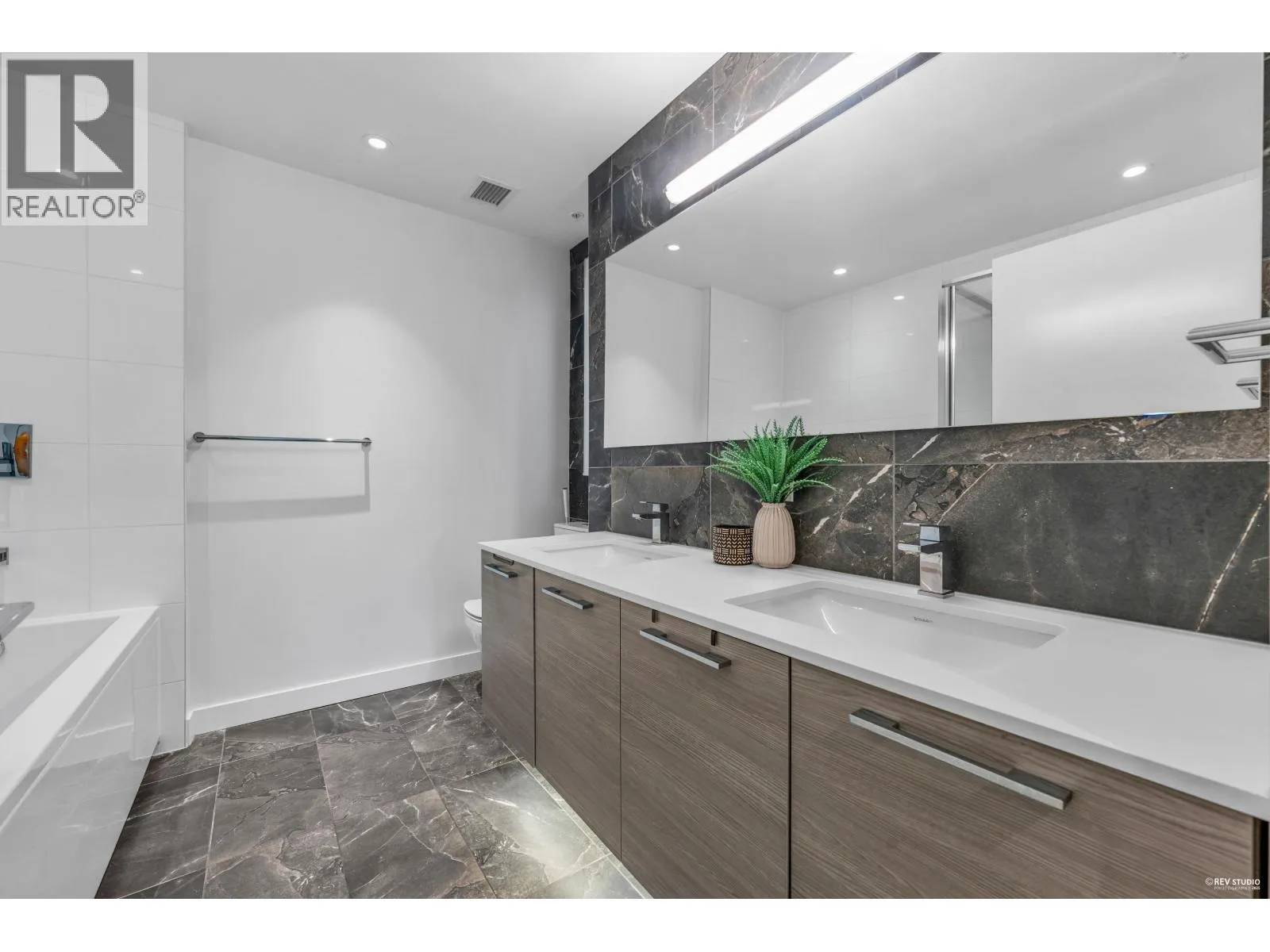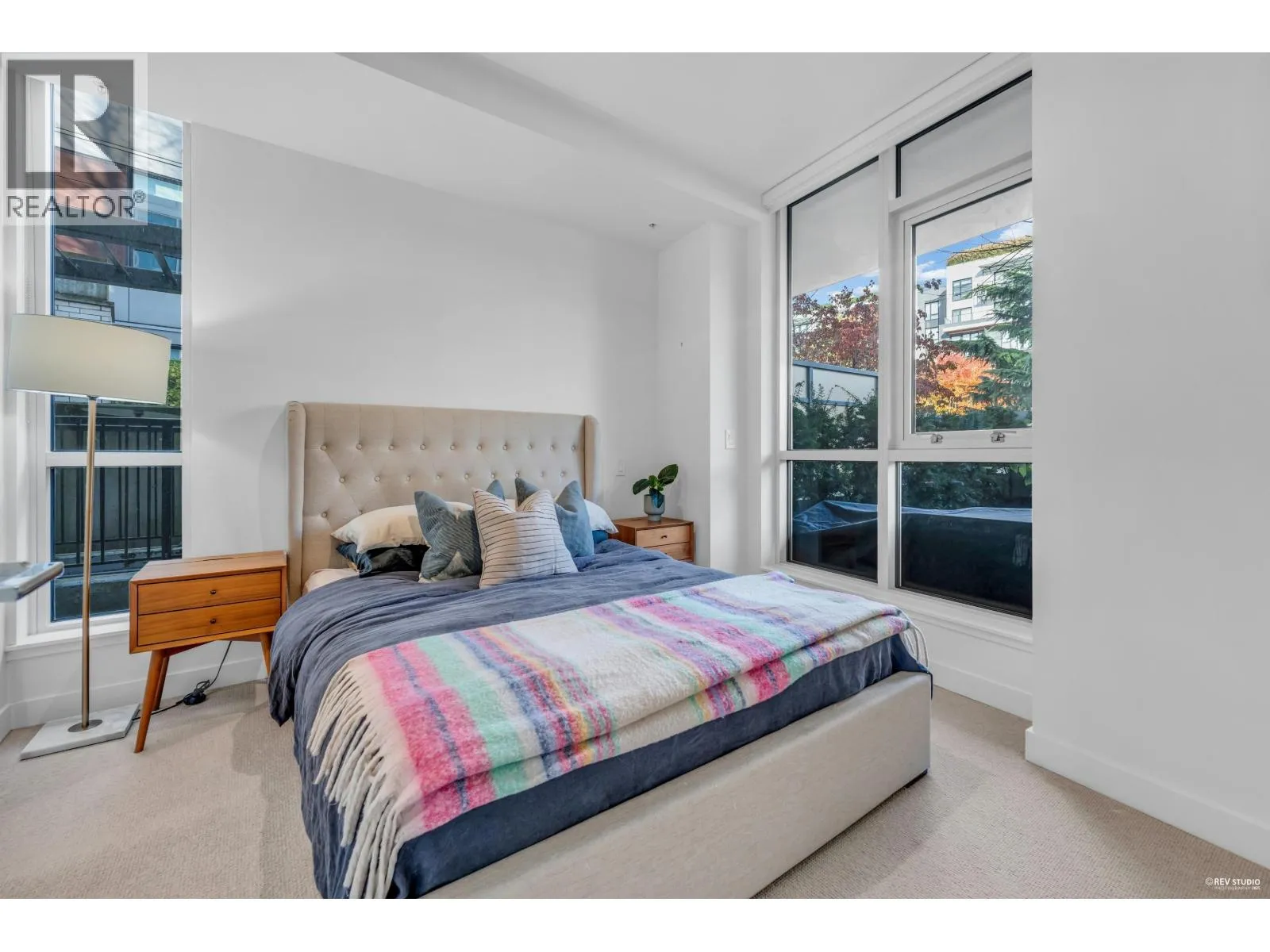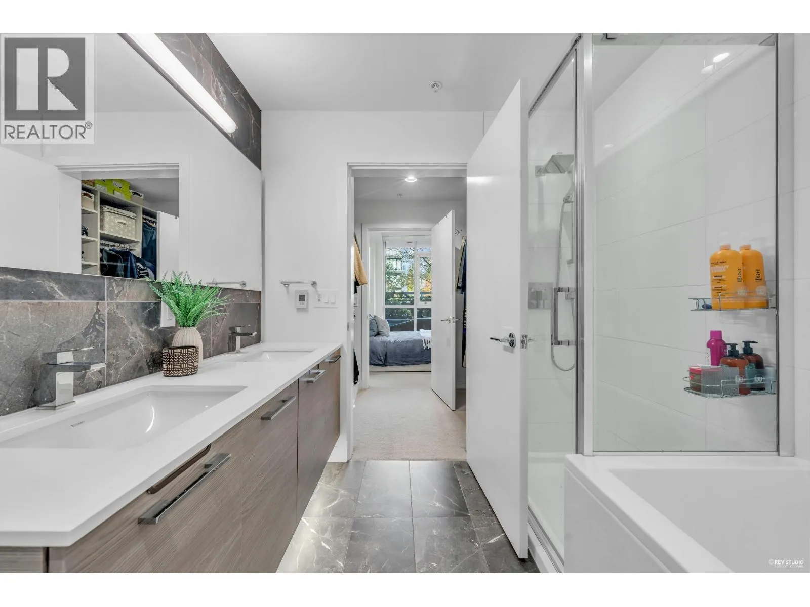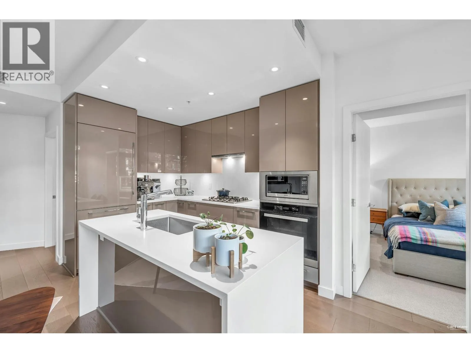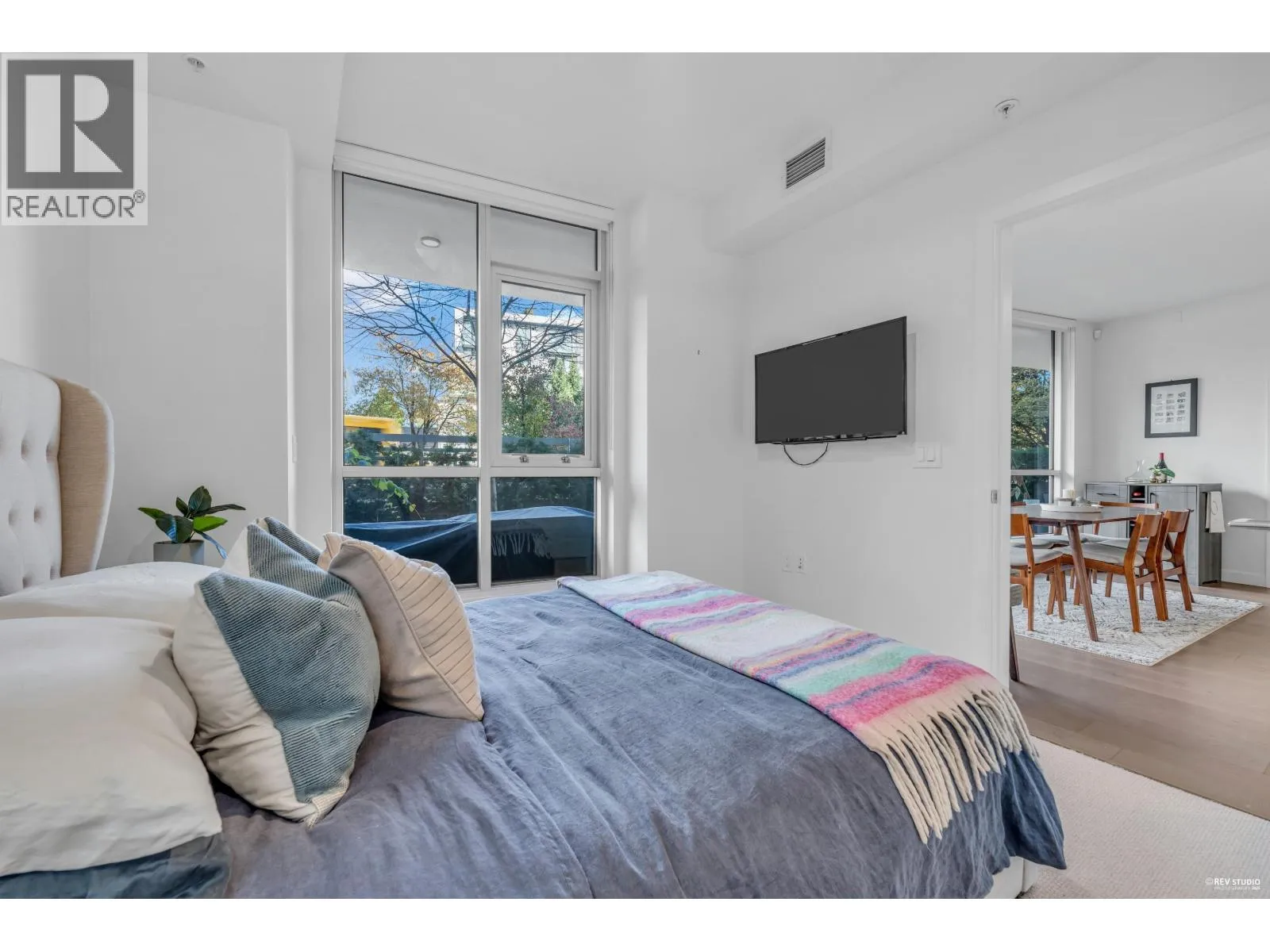 CONTESSA - NE corner 2 bdrm + den + laundry/storage room, 2 bath across from QE Park. Bright open layout with floor-to-ceiling windows and an expansive wrap-around patio that feels like townhouse living. Features over-height ceilings, A/C, Miele appliances, gourmet kitchen with quartz counters and backsplash, and wide-plank engineered hardwood floors. Spacious primary bedroom with walk-through double closets by California Closets and an ensuite featuring double vanities, a bathtub, and a separate shower. Central location-walk to Hillcrest, Oakridge Mall, QE Park, SkyTrain, and all amenities. Eric Hamber catchment. 1 EV parking & 1 bike locker included (2nd parking rental is possible for $100/month) *OPEN HOUSE Nov. 16 Sunday 2:30-4PM* (id:27476)