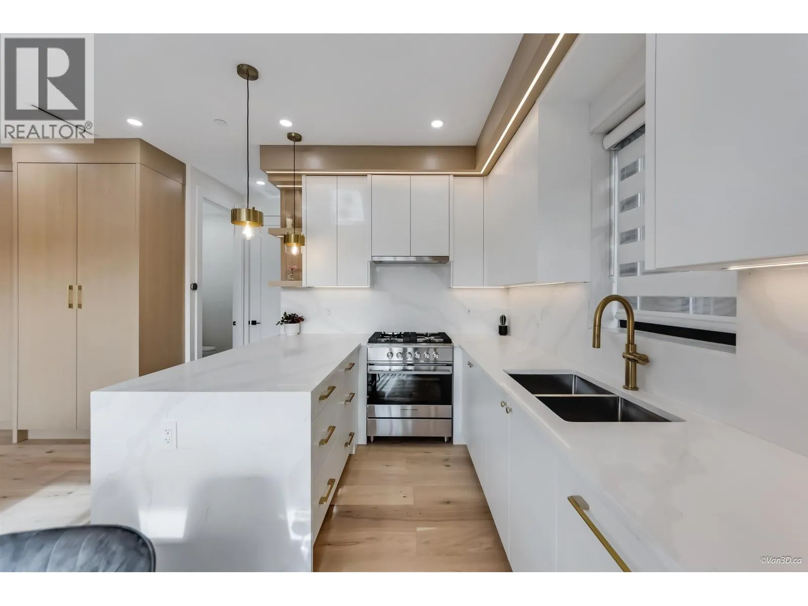 Discover this stunning brand new 1,585 sqft back-unit half duplex perfectly situated West of Main Street near Langara Golf Course. This beautifully crafted home features 3 bedrooms and 4 bathrooms across 3 spacious levels with an ideal open-concept layout. The designer kitchen boats premium appliances and custom cabinetry. Enjoy the comfort of air-conditioning and quality finishes throughout. The private yard offers an inviting outdoor retreat, while the home includes a single garage plus an additional parking pad. Steps to vibrant Main Street shops, restaurants, parks and top schools - modern living in one of Vancouver's finest neighbourhoods. Open house Sunday Nov 23rd from 2-4 PM. (id:27476)