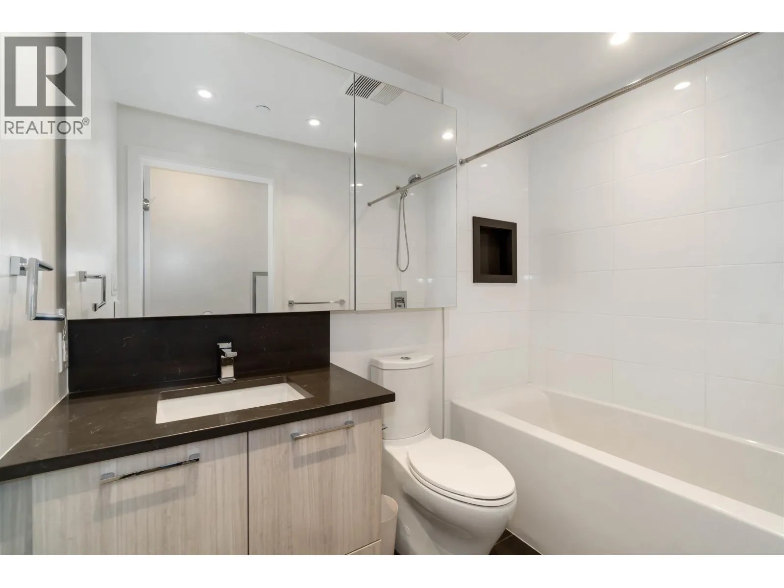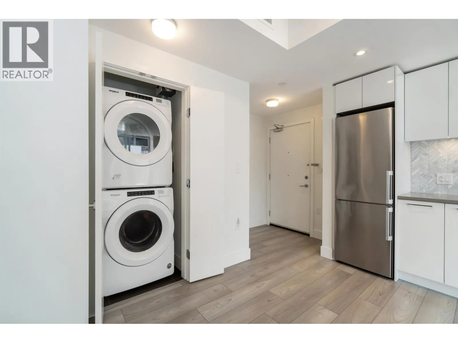 Welcome to Avalon 2 at River District. Step into this bright and stylish 1 Bedroom + Den home, designed for comfort and life-style. The open-concept with 9-ft ceilings and floor-to-ceiling windows, filling your space natural light and beautiful west-facing views. The Kitchen features premium stainless steel appliances, sleek cabinetry, and marble backsplash. Stay comfortable year-round with the high-efficiency heating / cooling system managed by NEST thermostat. Top-tier amenities include a gym, SkyLounge, party room, study room, and guest suites. Save-On-Foods, Shoppers Drug Mart, TD Bank, local shops, cafés, and dining options - All just steps from your door. 1 parking included. Don´t miss this opportunity. Open House SAT Nov 15th 2-4pm (id:27476)