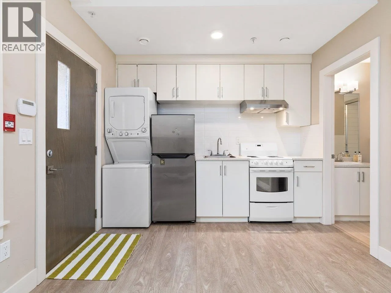 Two-Bedroom Home with Lock-Off Rental Suite-Rare Corner Unit with Exceptional Light! Bright and functional layout featuring 9 ft ceilings and east-west exposure that fills the home with natural light. The front portion offers a 2-bedroom suite with a full kitchen, bath, and in-suite laundry, perfect for personal living. The rear lock-off bachelor suite has its own separate entrance, full kitchen, laundry, and stove, ideal for a mortgage helper or short-term rental. Enjoy two complete living spaces, allowing you to live on one side and rent the other, generating income from day one! Comes with 1 parking and 1 locker. Conveniently located within walking distance to 29th Avenue SkyTrain Station, parks, schools, grocery stores, and restaurants-everything you need just steps away. (id:27476)