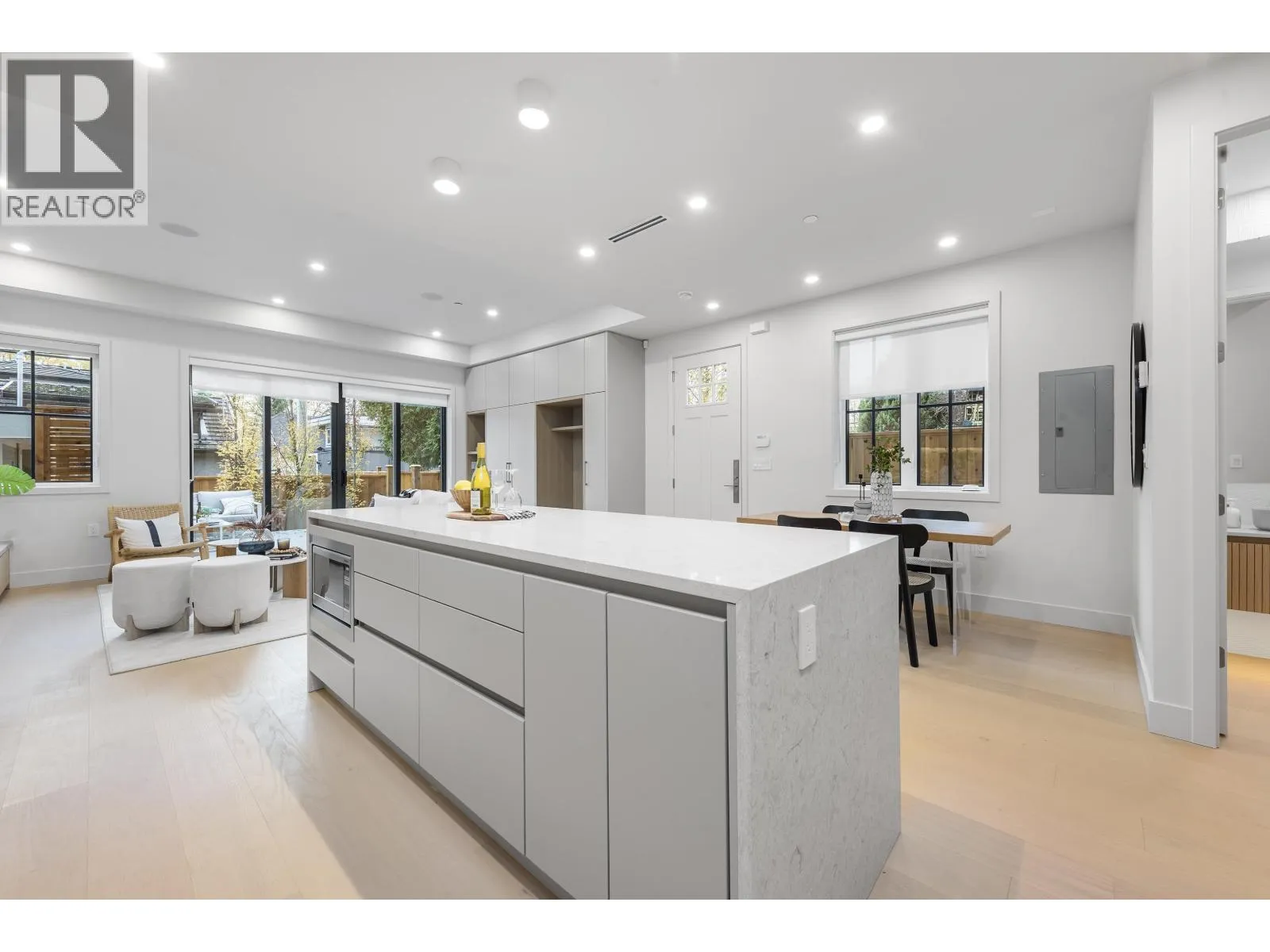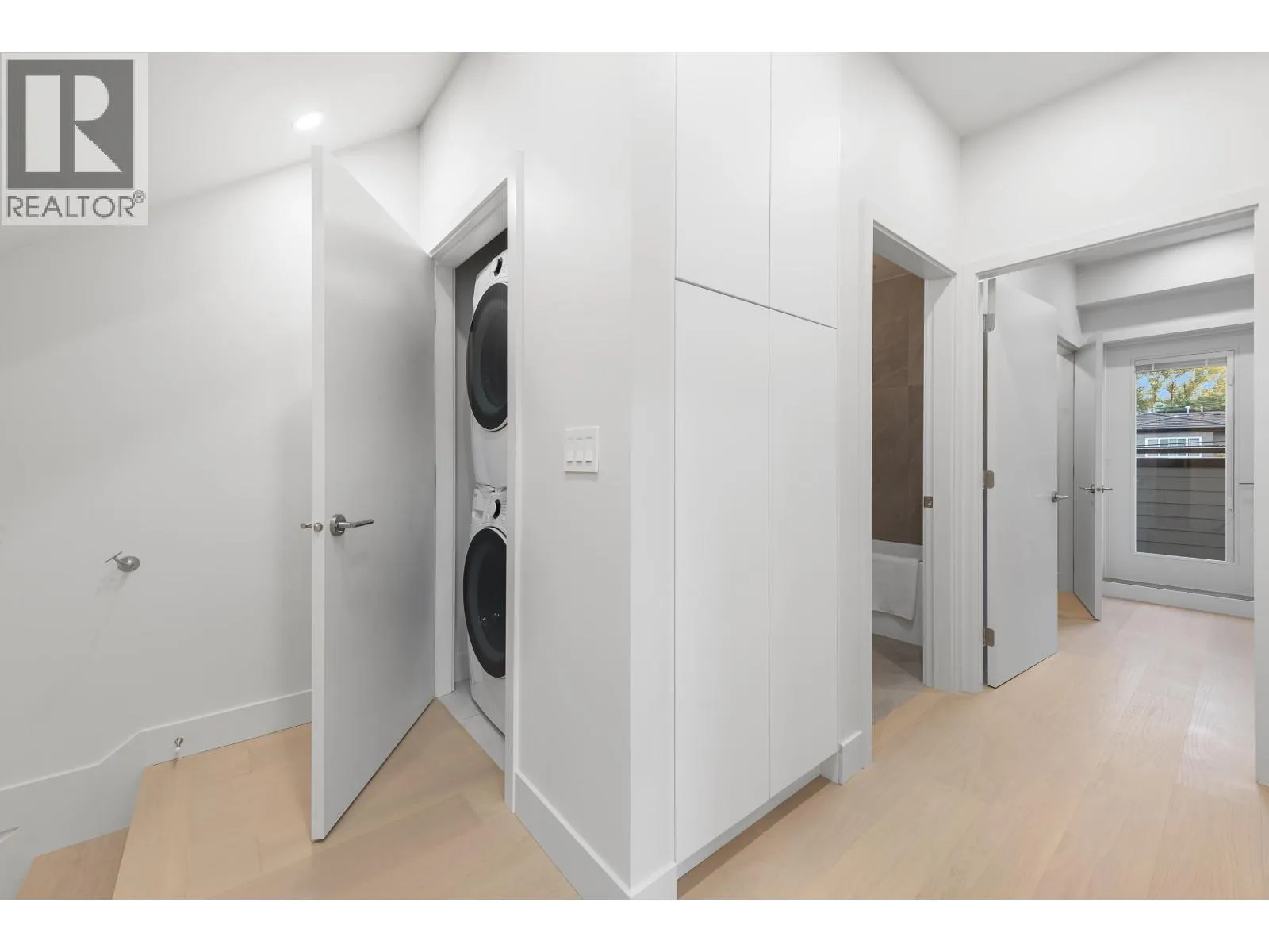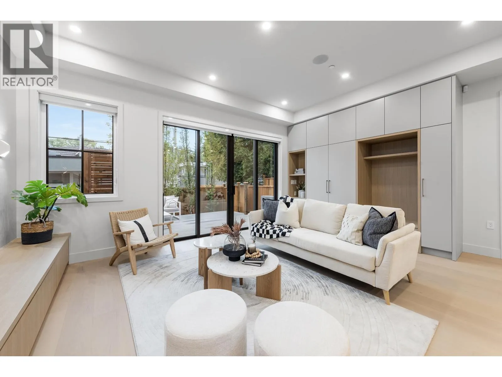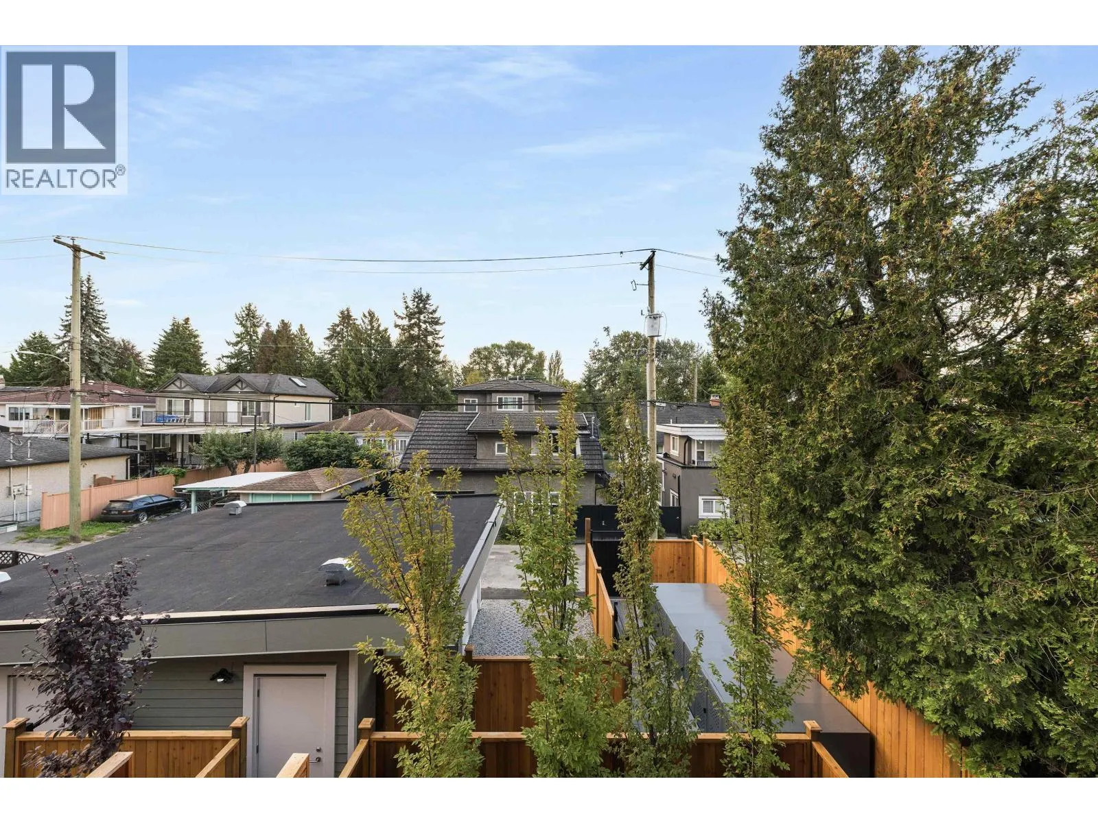 Proudly built by MEDALLION HOMES, this is a triplex like no other with a functional, thoughtful layout and even a special spot for your furry friend! This bright and welcoming back unit features a sunny south-facing yard, perfect for family time and play. High-quality finishes include irrigation, integrated appliances, Blanco sinks, engineered hardwood (with minimal knots), automated sound control, built-in vacuum rough-in, and a shared crawlspace for extra storage. Enjoy a custom patio with BBQ fire pit, gas rough-in, and energy-efficient airtight design. Located across from Ãcole Laura Secord Elementary-one of Vancouver´s top French Immersion schools with on-site childcare and a vibrant parent community-and just minutes to Trout Lake for recreation, this home is your perfect haven. (id:27476)