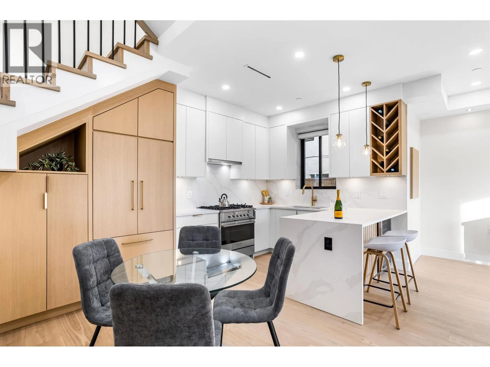 Discover the Napier Duplex Collection! Beautifully crafted front unit duplex offering 3 bed 4 bath open concept living floor plan. Premium millwork, design package + elegant finishing built with attention to detail + functionality in mind. Urban farmhouse style that offers warm and inviting spaces from the moment you step inside. Kitchen is equipped with Fisher-Paykel integrated appliances package, custom cabinetry, wine cooler and pantry space. Engineered hardwood flooring, A/C heat pump, security systems, radiant floor heating + single car garages with EV parking. Quick access to schools, amenities, HWY1 access + short drive to Hastings Street shops. With its blend of functional design, premium finishes, and central location, it´s the ideal home for your family to create lasting memories. (id:27476)