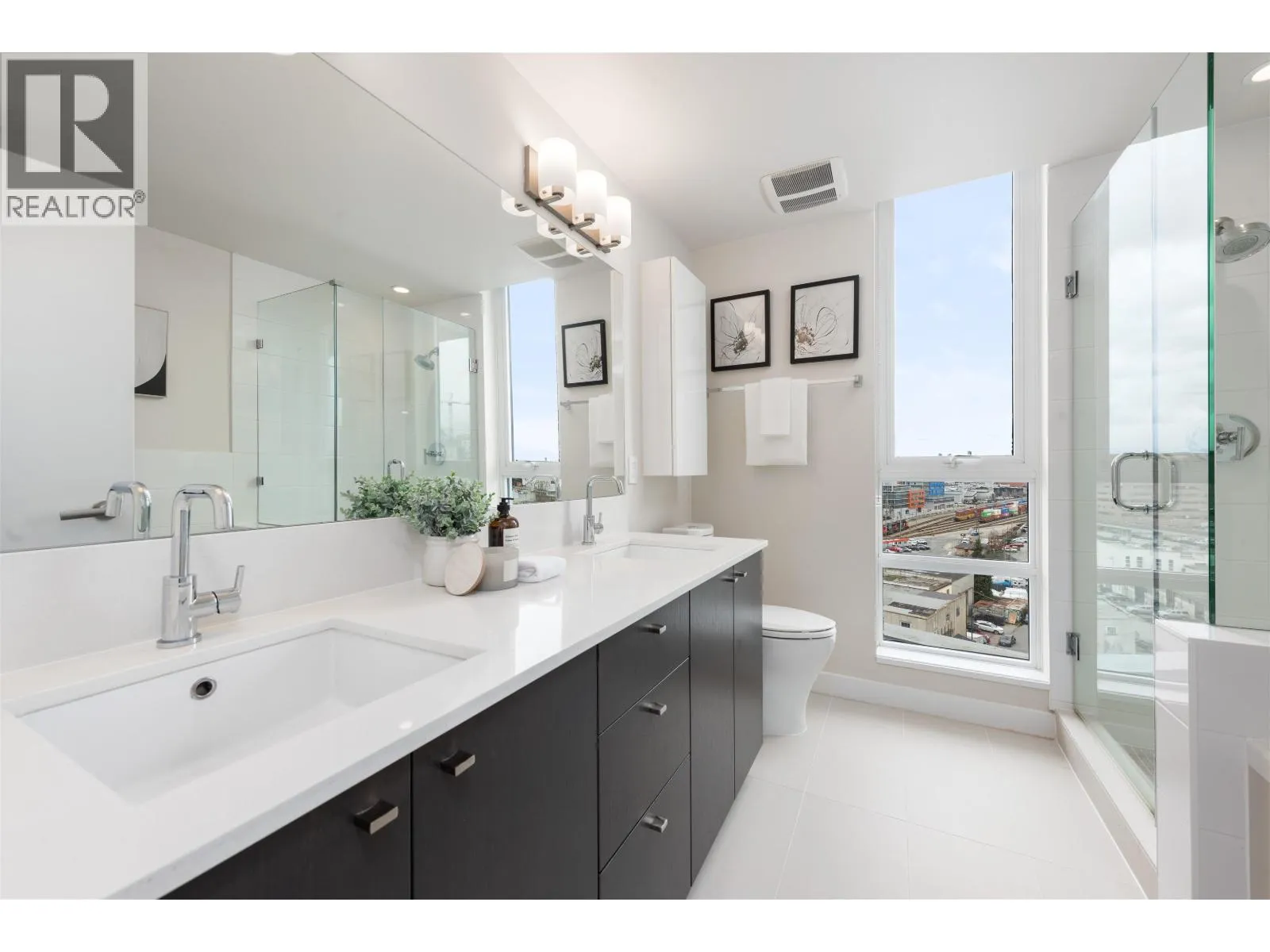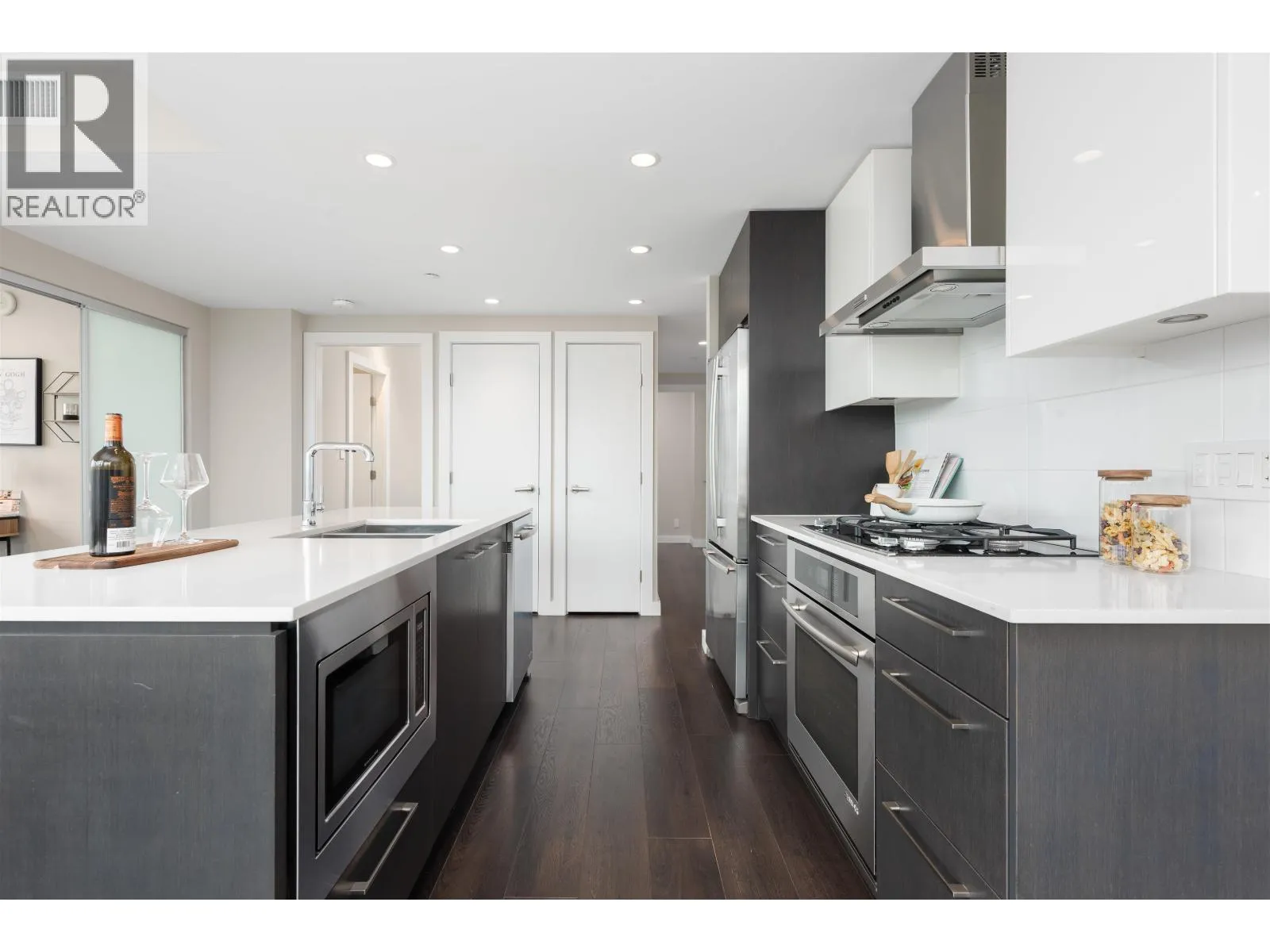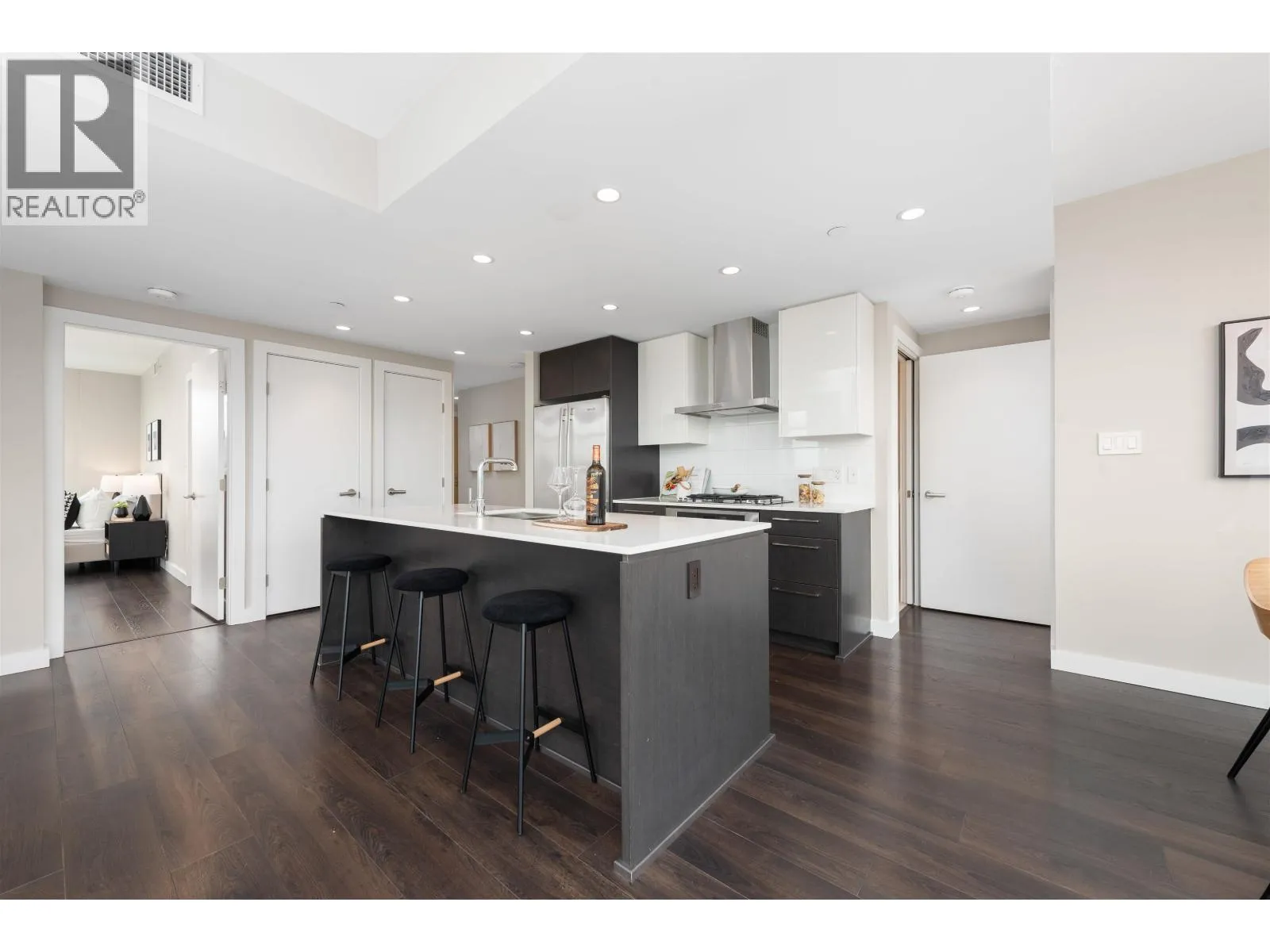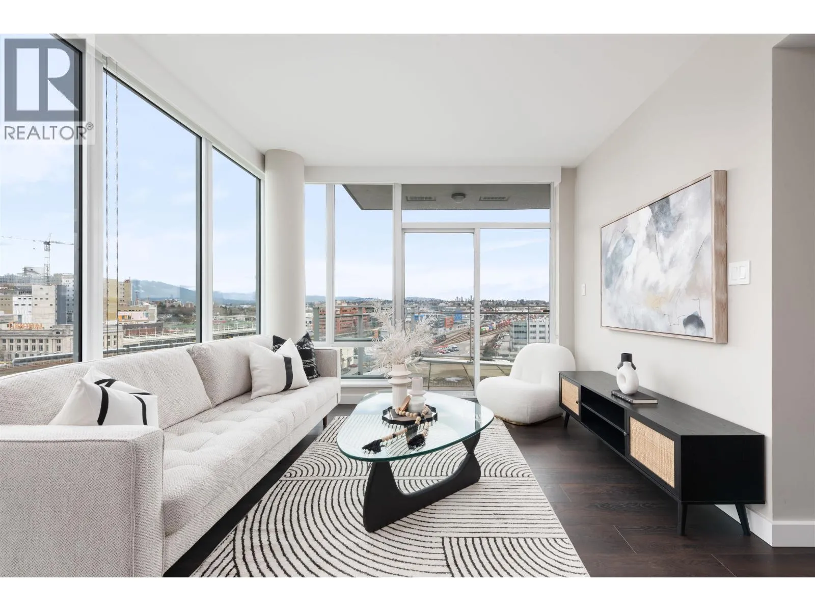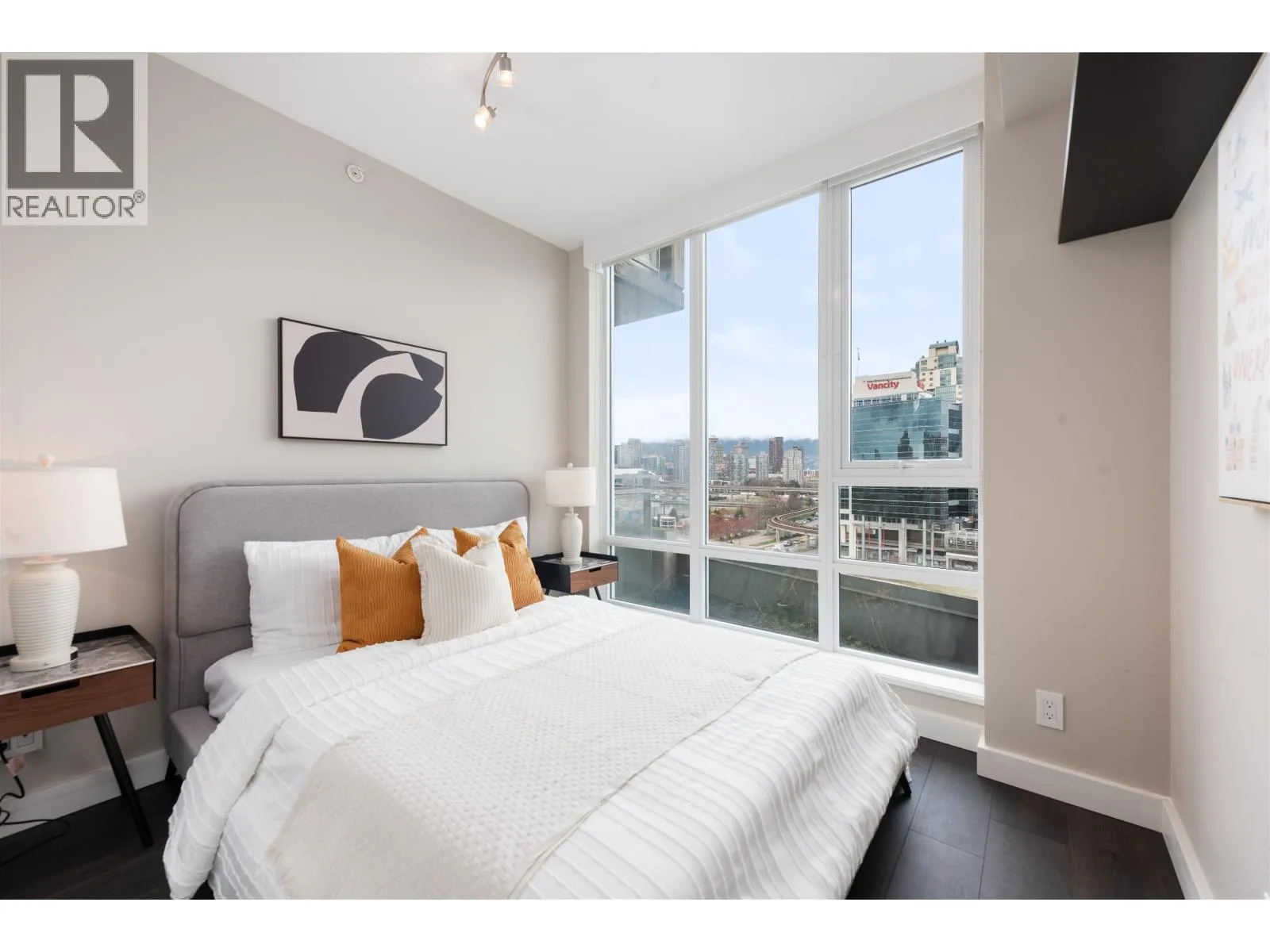 Welcome to Central by Onni! This rare corner unit features 2 beds, 2 baths, a flex room, a den, and balcony offering versatility and space. This bright northeast-facing home showcases stunning city and mountain views and includes central AC and heating for year-round comfort. The modern kitchen boasts integrated stainless-steel appliances and sleek quartz counters. Enjoy luxury amenities like a full-time concierge, rooftop dining terrace with a garden, full-size gym, party room, and theatre. Steps to the seawall, Skytrain, and Olympic Village. Includes 2 side-by-side parking spots and a storage locker. Don´t miss this exceptional opportunity to own in one of Vancouver´s most sought-after neighbourhoods! (id:27476)