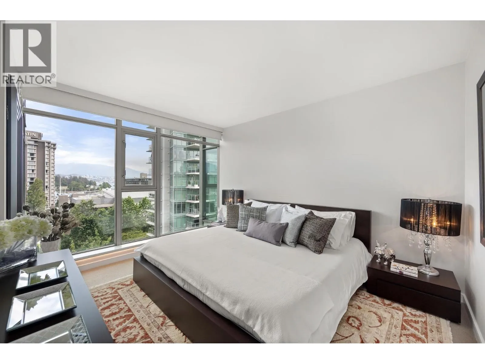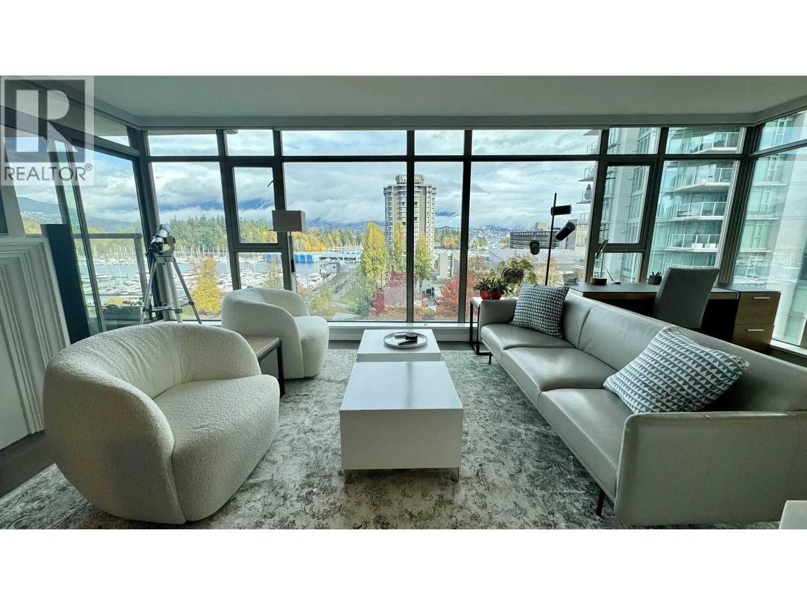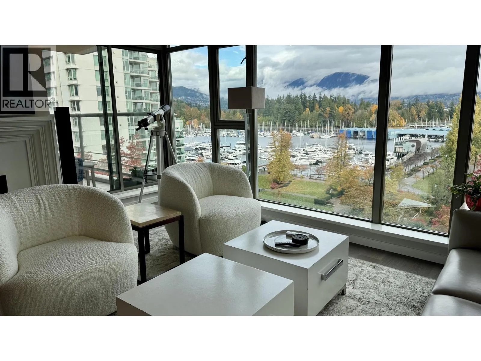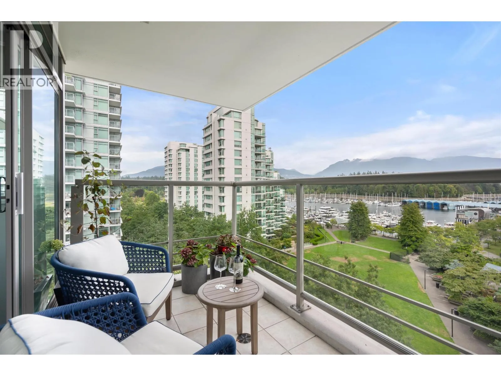 Fully Furnished Luxury living at Bayshore Gardens located in Coal Harbour. This 2 bedroom and 2 baths open floor plan home features an Innovative designed kitchen, Engineered hardwood floors, air conditioning, Sub-zero & Wolf appliances, motorized roller shades, gas fireplace, premium lighting & hardware throughout this lovely home. Floor to ceiling windows in every room with unobstructed, breathtaking views of the marina & mountains. Located across from the quiet Marine Square park, easy access to Stanley park & the Royal Vancouver Yacht Club. Short walking distance to restaurants, groceries, shopping & so much more. 24-hour concierge, gym & sauna. Comes with 1 EV charging parking stall. Hydro and Wifi included (id:27476)