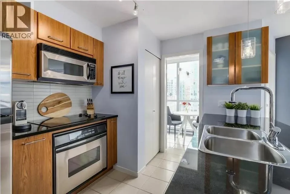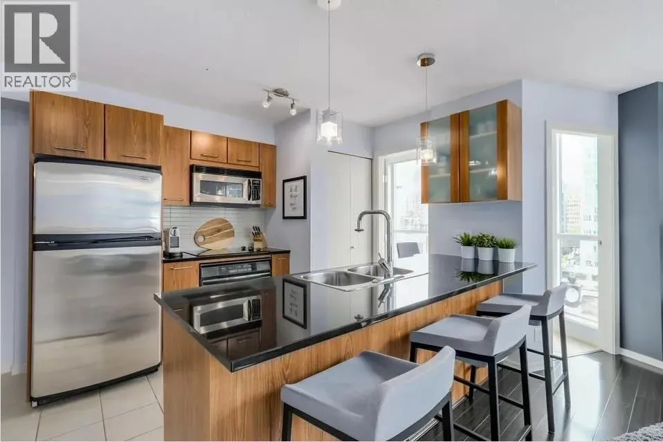 Modern 1 Bedroom + Den + Flex at Brava - Across from Emery Barnes Park Live at Brava, one of downtown Vancouver´s most desirable buildings, steps from Yaletown shops, dining, and Choices Market. This bright corner suite offers floor-to-ceiling windows, engineered hardwood floors, and an open layout with a gourmet kitchen featuring granite counters and stainless steel appliances. Enjoy in-suite laundry, a private BBQ-friendly balcony, parking, and storage. Building amenities include a 24-hr concierge, pool, hot tub, sauna, gym, theatre, and guest suites. Book a viewing: https://princesspan.com/tenant-viewing-request.html (id:27476)