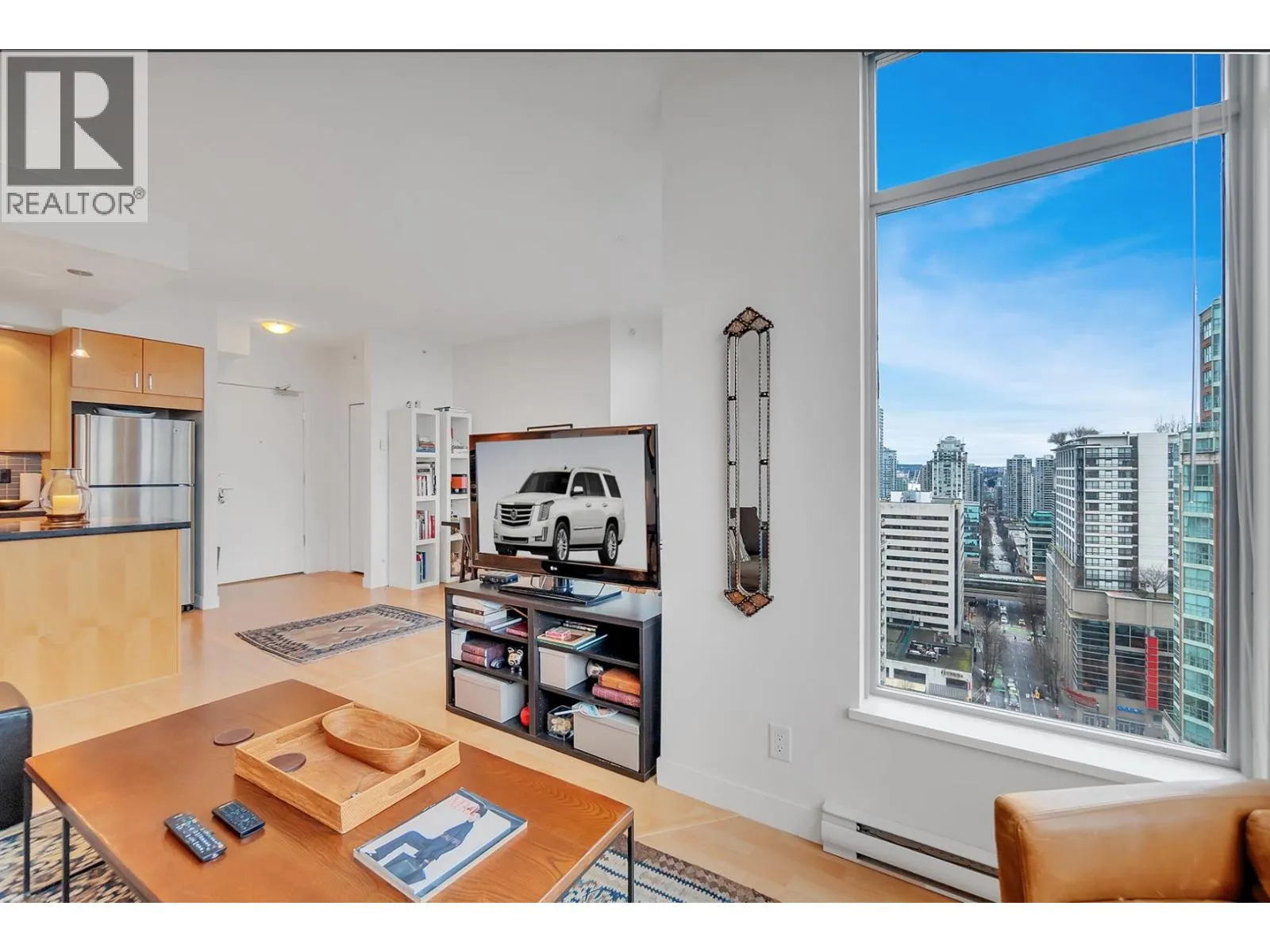 SUB-PENTHOUSE at The STERLING! VALUE, CONVENIENCE, LOCATION! Imagine waking up to breathtaking views DOWNTOWN'S skyline to English Bay. This bright, SPACIOUS southeast-facing 1-bedroom + den corner suite with OPEN PLAN boasts HIGH CEILING and a gourmet kitchen-perfect for entertaining. Just steps from Robson's vibrant shops, Scotia Theatres, and the IGA, you'll have everything at your fingertips. Enjoy luxurious AMENITIES like a GYM, HOT TUB, LARGE PARTY ROOM and concierge, plus the convenience of two parking stalls. Pets and rentals are welcome. Your ultimate VANCOUVER getaway awaits! Unbeatable value & PRICED SHARPLY $94,000 BELOW ASSESSMENT! BONUS TWO PARKING! THIS IS DOWNTOWN'S BEST VALUE! (id:27476)