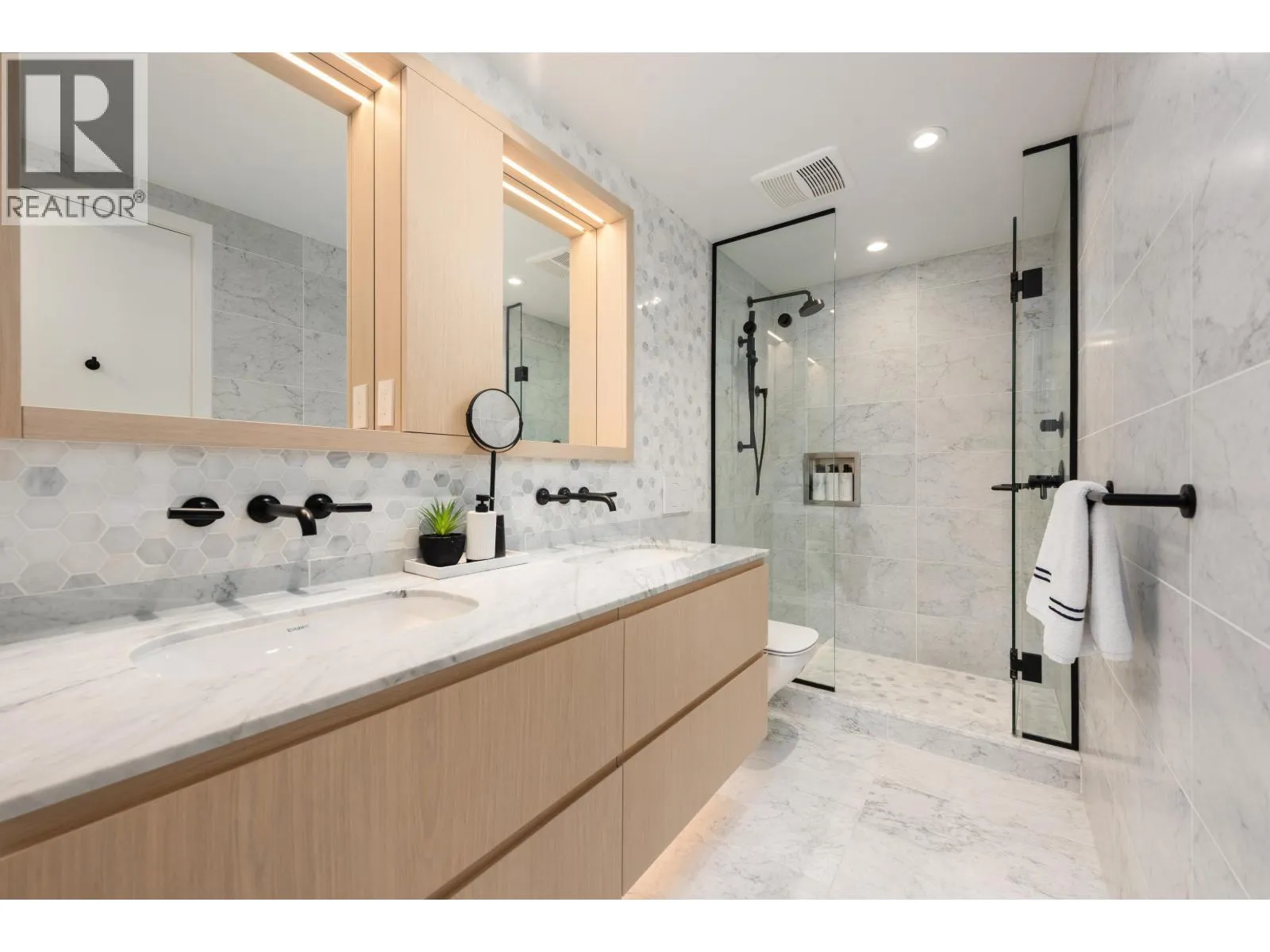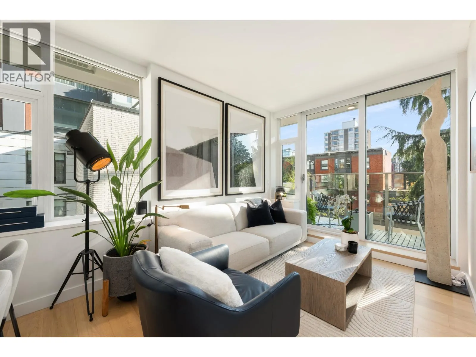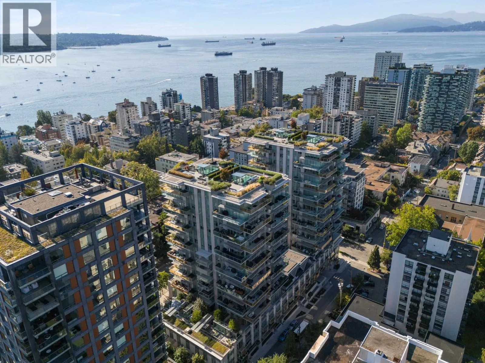 Boutique West End living at Mirabel by Marcon! This 2 bed, 2 bath home offers 1,077 sq. ft. of modern interiors plus 500+ sq. ft. of private outdoor space. Bright and spacious with wide-plank flooring, custom millwork, and floor-to-ceiling windows. The chef´s kitchen boasts Wolf & Sub-Zero appliances, while spa-like baths feature marble finishes and floating vanities. Enjoy a well-appointed primary bedroom complete with walk-in closet and ensuite; the second bedroom with Murphy bed adds flexibility. Stay comfortable year-round with forced air conditioning. The private rooftop patio with greenery, lounge seating, and fire table is perfect for relaxing or entertaining. Steps to English Bay, the Seawall, dining, and shops. 1 parking & 2 lockers included. A must see! (id:27476)