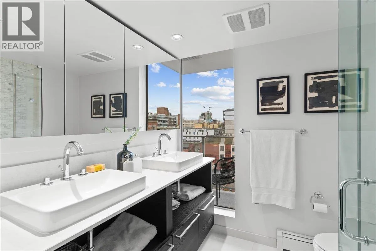 This modern 2 bed + flex SUB-PENTHOUSE at Keefer Block features 3 BALCONIES (322 sq.ft.) with city, mountain & peek-a-boo water views! European-inspired design with high-gloss cabinetry, wide-plank flooring & integrated appliances. Upgrades: BBQ gas hookup, added sound-proof wall insulation, lighting, & high-end doors. Flex room perfect for an office. Heating & gas included in strata fee. Amenities: rooftop with movie screen, BBQ, garden plots, dog wash, bike room & party room. Strong rental demand with proximity to SkyTrain, Downtown, the new St. Paul´s Hospital, and the city's best cafés & restaurants. Airbnb & short-term rentals allowed. Pets OK (3). 1 parking & 1 storage included (both oversized!). Turnkey opportunity in a high-growth neighbourhood! Book your private showing today! (id:27476)