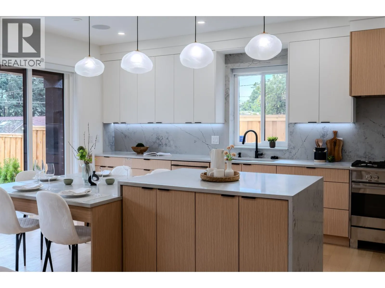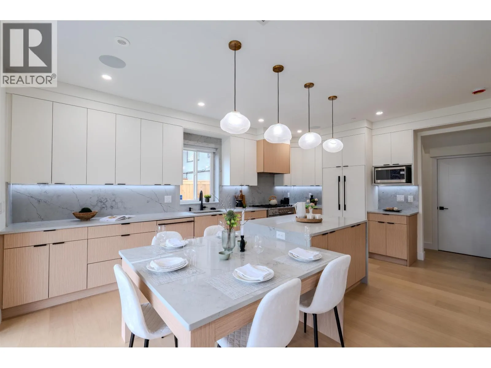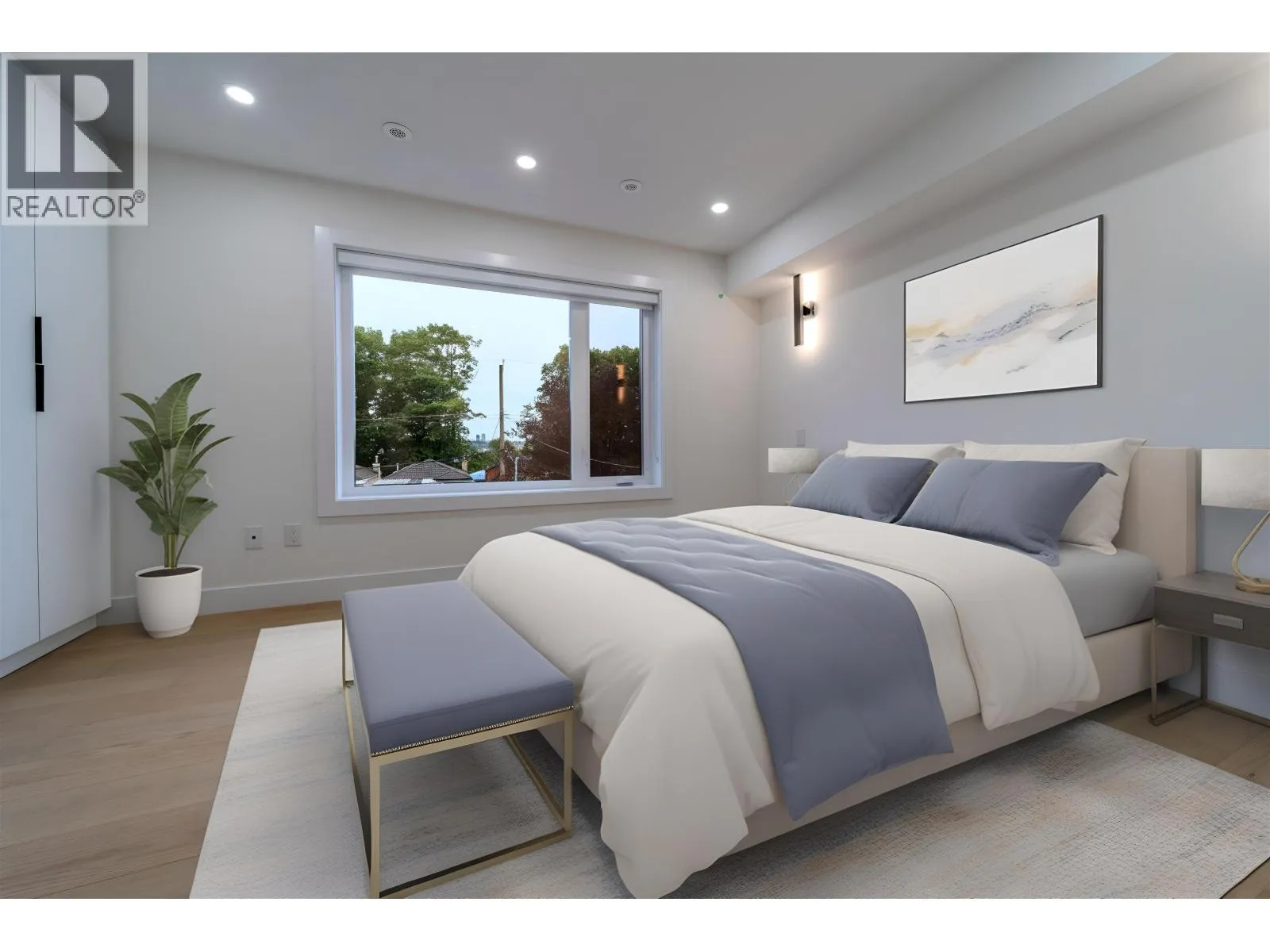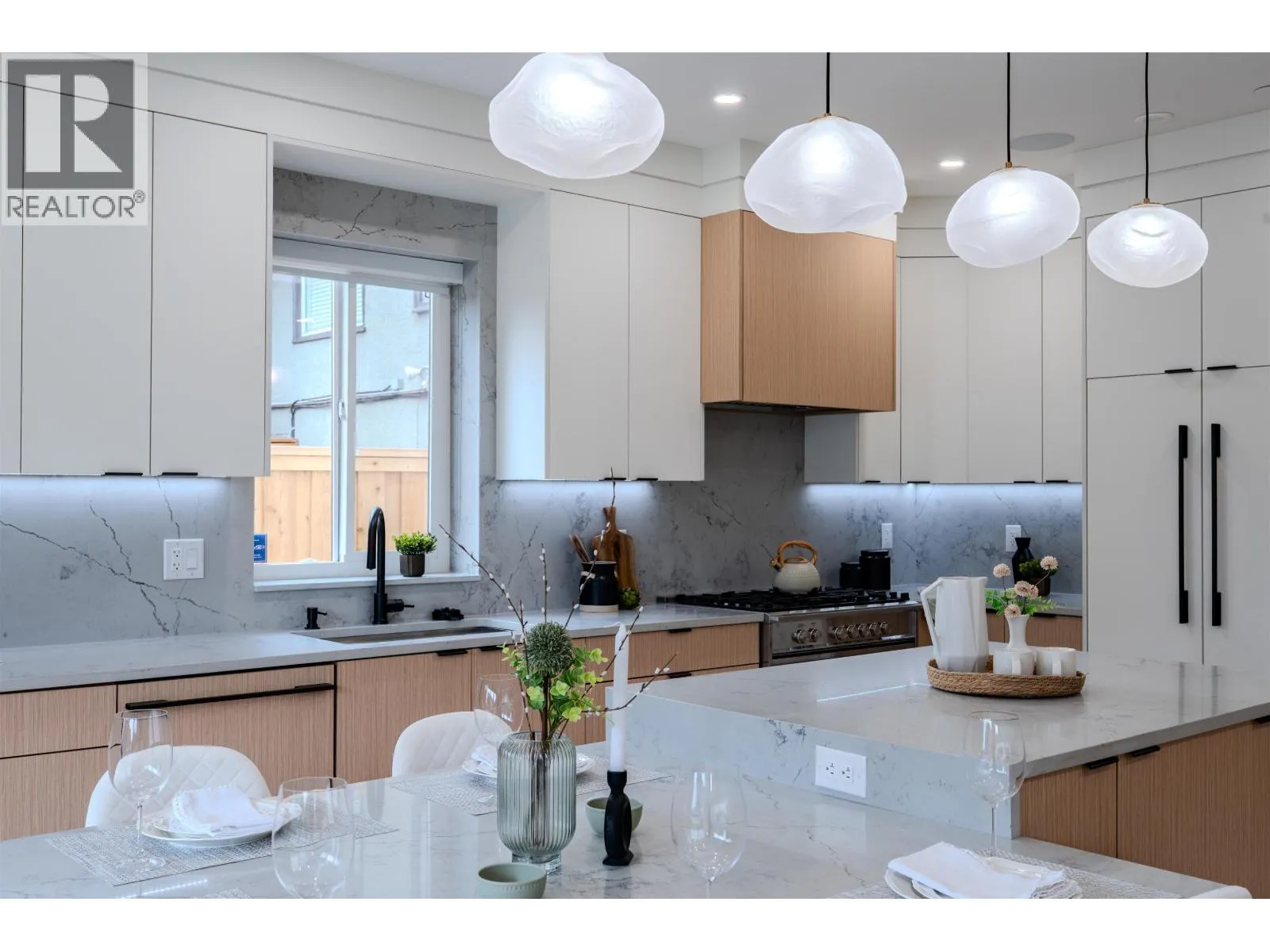 The Pender Vista Collection presents a brand new 4-bed, 4-bath ~1,700 sq.ft. rear 1/2 duplex, tucked away at the back of a rare 33Ã155 lot for privacy. Enjoy outdoor space and city & mountain outlooks from a private top-floor balcony. Interiors feature engineered hardwood, custom millwork, designer lighting, and smart home technology. The chef´s kitchen with built-in dining table boasts waterfall quartz, Fisher & Paykel appliances, gas cooking, and ample pantry. Spa-inspired tiled baths, A/C, and on-demand hot water ensure comfort. Minutes to parks, cafés, PNE, Adanac Bikeway, SkyTrain, and Brentwood Town Centre, with quick HWY-1 and Downtown access-quiet privacy meets city convenience. (id:27476)
