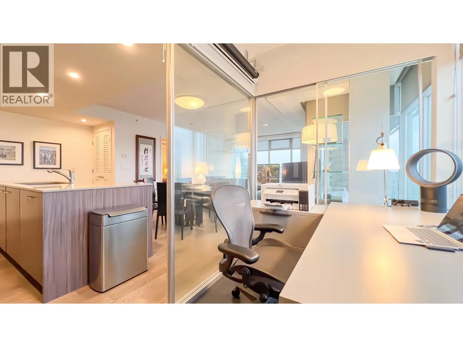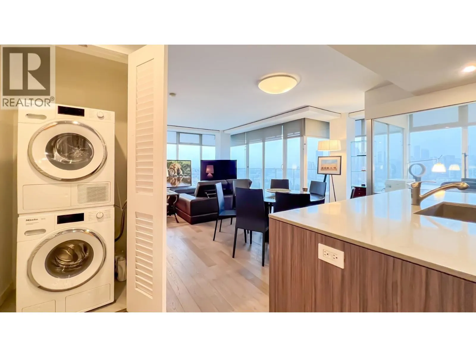 Excellent view and location, well-maintained luxurious suite with over 1,500 square feet featuring 3 bedrooms plus den, solarium & 2 bathrooms NW facing corner unit with stunning 180 degree unobstructed views of False Creek, North Shore mountains & the downtown. Gourmet kitchen, contemporary finishing, oak hardwood flooring & geothermal heating/cooling system. Two bathrooms has Nu-Heat heating flooring. Minutes to Canada Line, VGH, restaurants & banks. Owner has paid extra to buy three storage lockers and four parking spots, three of them has EV charging, all doors been changed and upgraded, three bedrooms floor changed from carpet to hardwood flooring, new sub zero fridge. All measurements, floor plan, video, photos by Almond Tree Media Inc. https://my.matterport.com/show/?m=B4E9YJEKQDW (id:27476)
