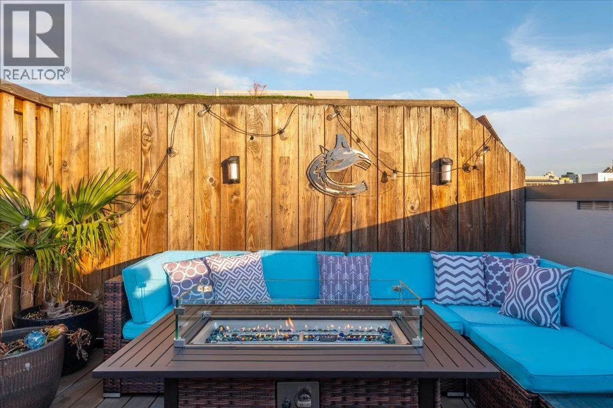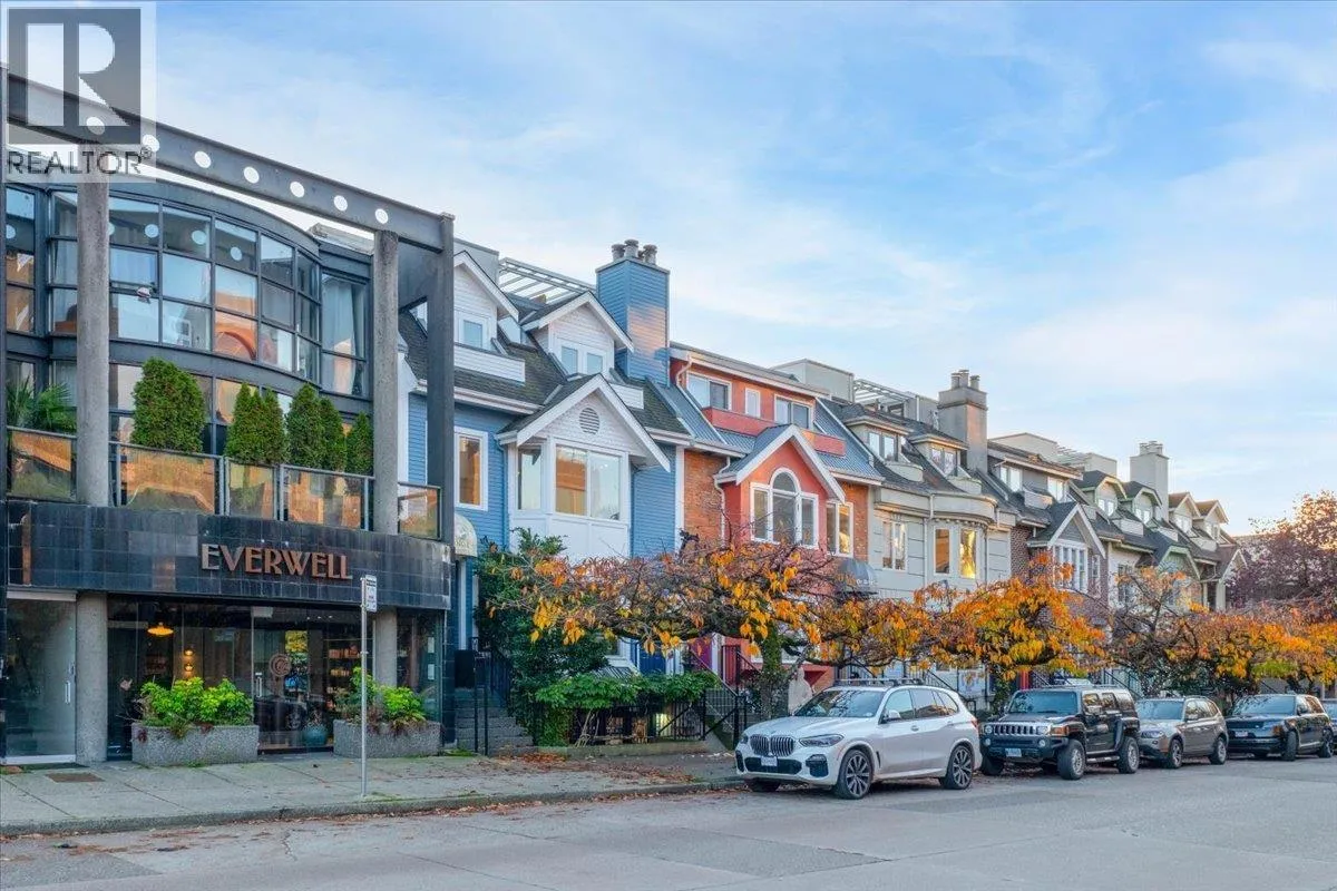 Welcome to Yorkville Mews, a beautifully updated two-bedroom, two-bathroom townhome nestled on a vibrant, tree-lined street in the heart of Kitsilano. Enjoy an exceptional location with a Michelin-starred restaurant across the street, Be Fresh Local Market nearby, and Pane from Heaven just around the corner for your morning coffee. With Kits Beach, West 4th Avenue, and downtown only minutes away by bike, bus, or on foot, this home truly sits at the centre of it all. Inside, you'll find a bright, open living and dining area, an updated kitchen with breakfast bar, a cozy wood-burning fireplace, refreshed bathrooms, and modern finishes throughout. Up top, a 394 sq. ft. private, sun-drenched rooftop patio offers the perfect space to relax or entertain. One secure parking stall included. (id:27476)