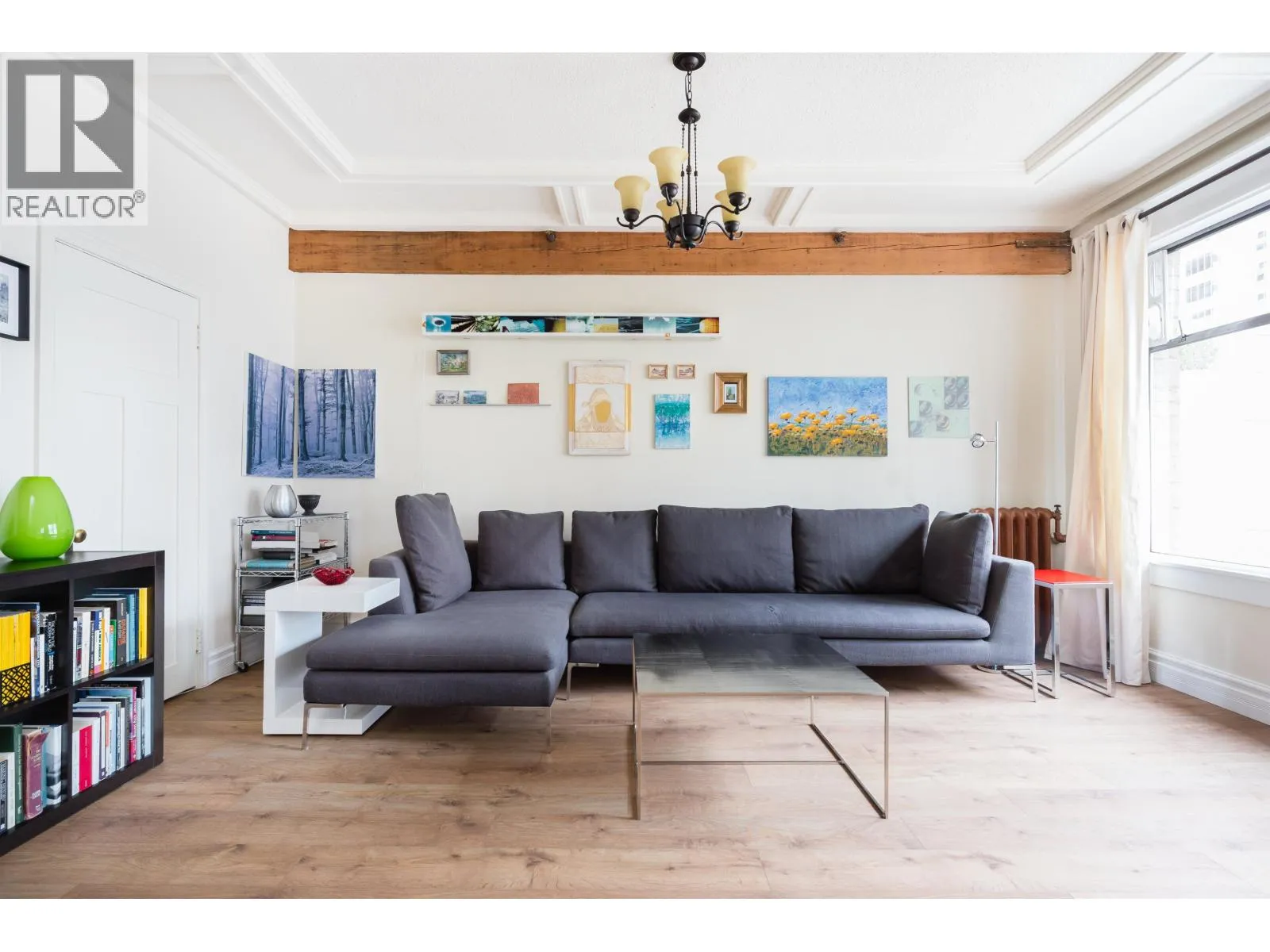 large 1 bd gem in the rare & lucky 777! Built in 1914, 777 Burrard is a landmark building in an ideal downtown location in Vancouver's Luxury Zone. Nestled between high-end shopping and dining such as Chanel, Saint Laurent, and Burberry. Steps to great transportation and food options. In addition to its cosmopolitan spirit, you will find yourself within walking distance to the Seawall, Gas Town, Coal Harbor and more. One of the largest units in the building, Unit has grand picture windows, historical ceiling crown molding, over height ceilings, and original Douglas fir wooden beams. The oversized master bedroom is large enough to fit a queen or king bed and has two closets with option for Stackable washer/dryer. Rentable parking directly next door. (id:27476)