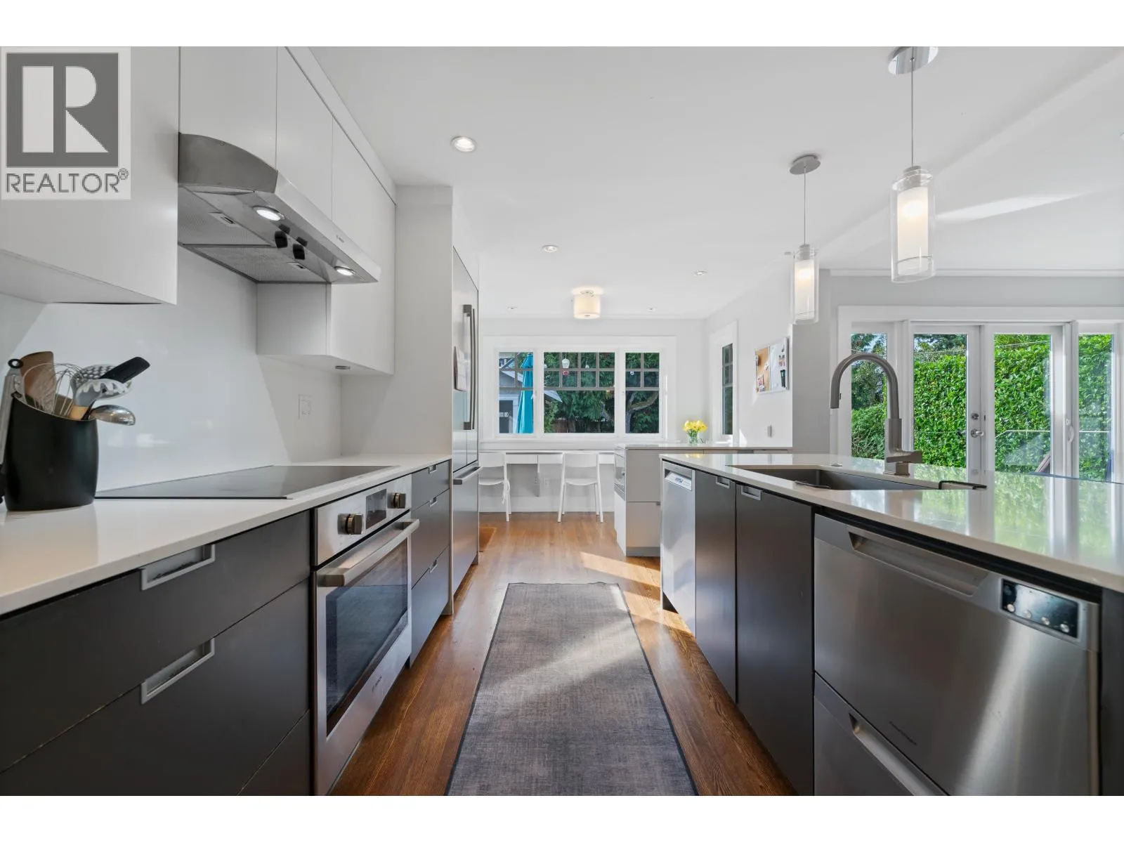 FAMILY HOME on a level 50' x 122' lot in a prime location! This renovated character home blends timeless charm with modem updates. The open kitchen features white cabinetry, stone counters & stainless steel Bosch appliances, flowing into a bright family room. French doors off the dining and family rooms open to sunny south-facing decks and garden. A formal living and dining room with fireplace offer classic appeal, while the main floor also includes a home office/bedroom. Upstairs you'll find 3 bedrooms & 2 bathrooms, with a 4th bedroom and kids' family room on the lower level. Steps to transit & the Arbutus Greenway-bike, walk or bus to Kerrisdale, Kitsilano, South Granville, Safeway, Loblaws City Market & Arbutus Club. School Catchment: Trafalgar Elementary & Prince of Wales Secondary. Open House Saturday Nov 22, 2:30-4pm (id:27476)