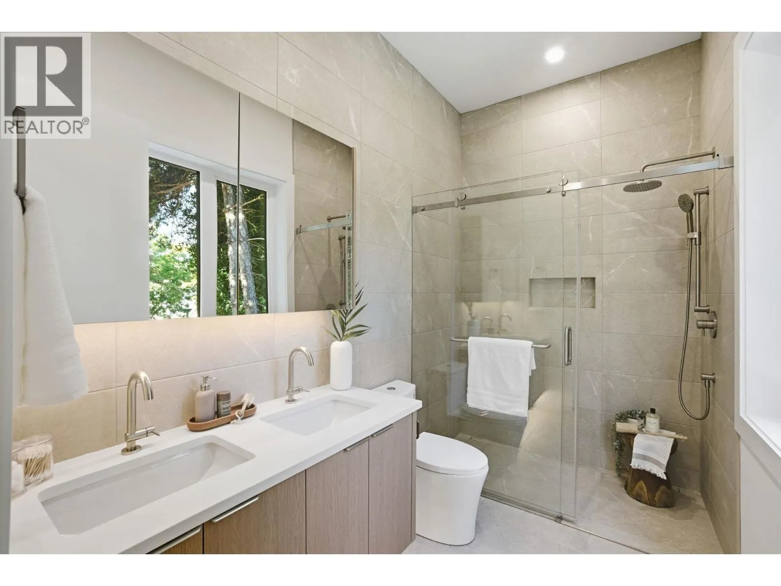GORGEOUS/XTRA LARGE FRONT duplex located on a quiet street in the heart of Kerrisdale! SOARING 11'5" ceilings on the main floor which features high end engineered wood flooring/millwork/fireplace, bar area/wine fridge, STUNNING Kitchen w tons of storage, MEILE appliances plus custom LED lighting throughout. Upstairs you will find 10' ceilings, ample walk in closets, both bedrooms with Ensuites + another loft area upstairs with a 3rd bedroom/full bathroom. Additional features include a 500+sf crawlspace, security/alarm/cameras, manicured outdoor spaces, private single car garage (EV ready) plus custom black metal fencing. An EXCEPTIONAL location, walking distance from shopping, restaurants, recreation, top-notch schools and transportation! (id:27476)