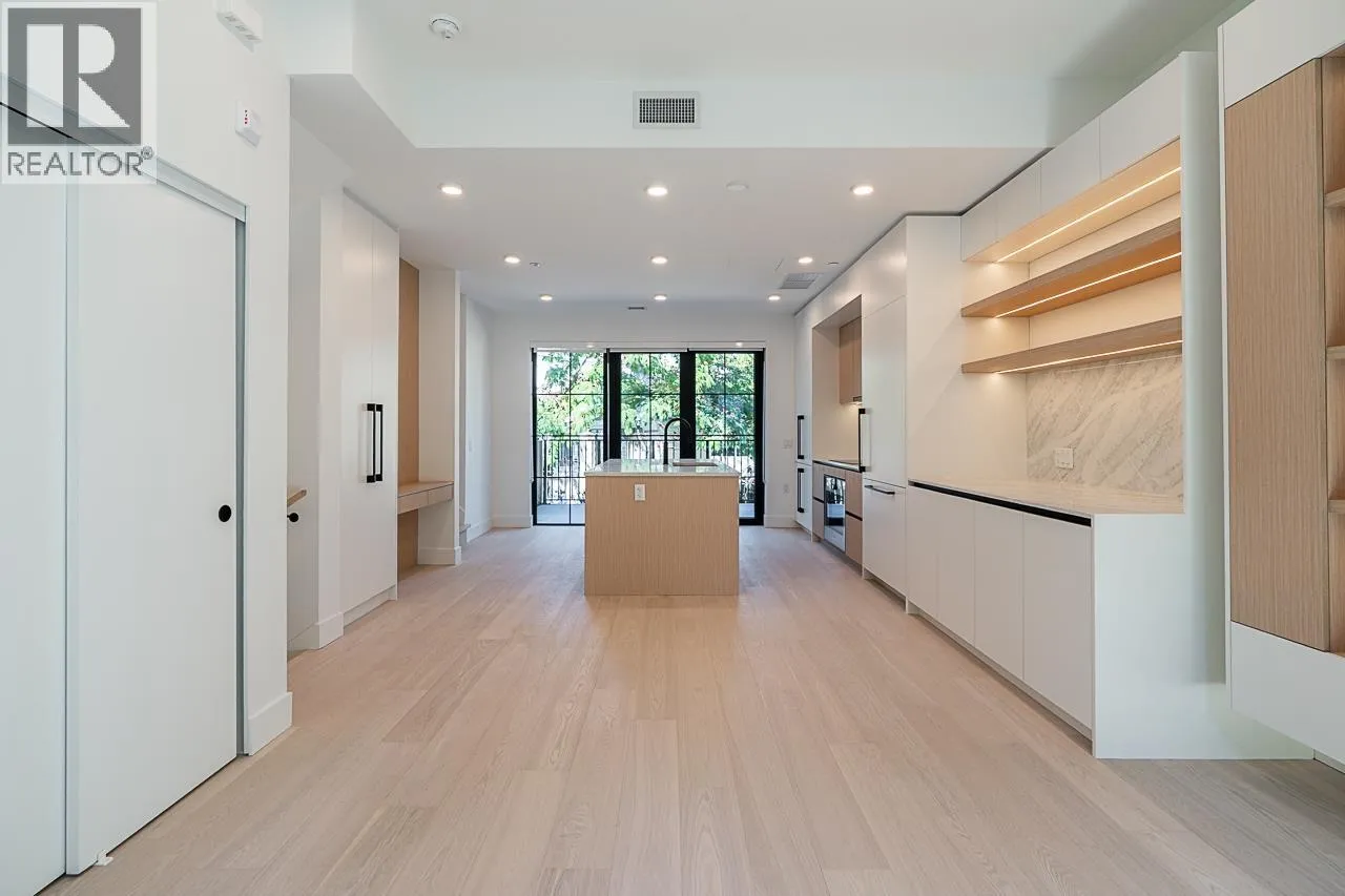 Welcome to Soto on W28 by FORME Development. This move-in ready 3 bed + 2.5 bath townhome offers 1,453 sqft of refined living with a rare 20´ wide layout, up to 10´ ceilings, and expansive floor-to-ceiling windows that fill the home with natural light. The modern kitchen features matte cabinetry, an oversized island with wine fridge, and a full Gaggenau appliance package. Enjoy A/C, engineered flooring, a custom media wall, private storage, and an EV-ready double garage with direct access. Outdoor living includes front and back patios plus a private rooftop terrace with sweeping mountain and city views. All set in one of Vancouver´s best neighborhoods-steps to Cambie Village, Queen Elizabeth Park, rapid transit, shops, cafés, and top school catchments. (id:27476)