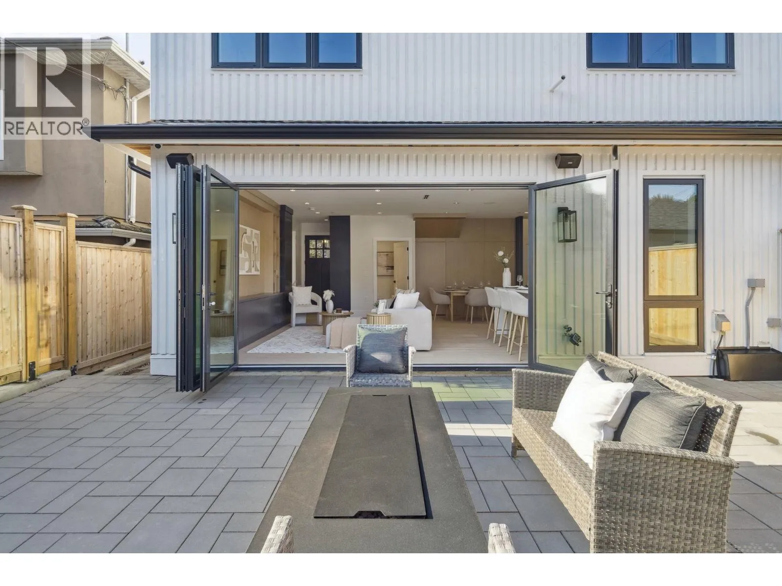 Discover elevated living in this brand-new back duplex, perfectly situated in the heart of Grandview-Woodland and steps from Trout Lake. Built by Encore Collection with a focus on quality and comfort, this 3-bedroom, 3.5-bath home spans 1,640 sqft of thoughtfully designed space. The open-concept main floor features accordion doors that extend your living area to a private patio-ideal for everyday living and entertaining. Highlights include Fisher & Paykel appliances, built-in speakers, air conditioning, and modern designer finishes throughout. Enjoy the best of East Vancouver with Commercial Drive, Trout Lake, transit, and top schools just minutes away. (id:27476)