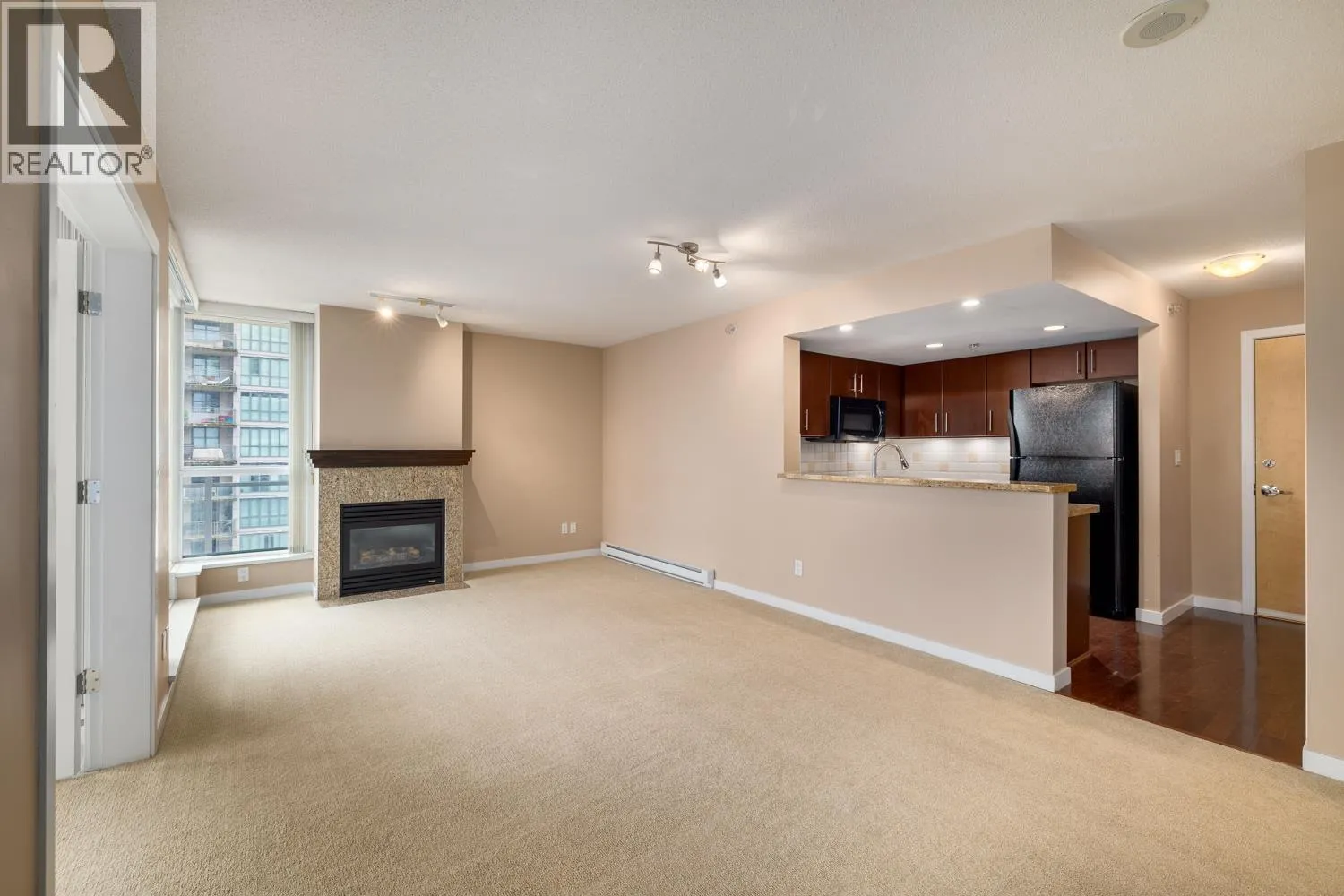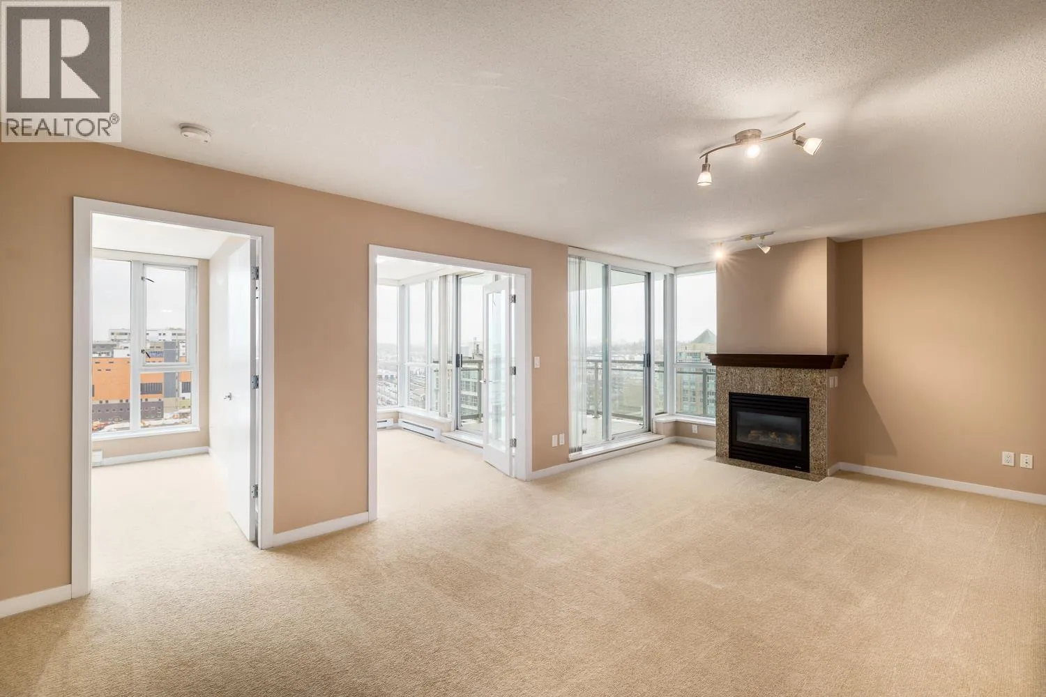 The Brighton by BOSA, located in the trendy City Gate Neighbourhood! Discover urban living at its finest in this bright, corner 2 bed/1 bath unit. The open-plan layout features a kitchen with ample storage, a spacious dining area ideal for entertaining, and a cozy living area with a fireplace. Extend your living space onto the large covered patio. Both bedrooms are generously sized, offering picturesque views. Enjoy premium building amenities: pool, sauna, and exercise room. Central False Creek location close to Seawall, Science World, skytrain, Olympic Village, Chinatown and an abundance of shops, restaurants & more! Open House Sat Nov 22, 2-4pm (id:27476)