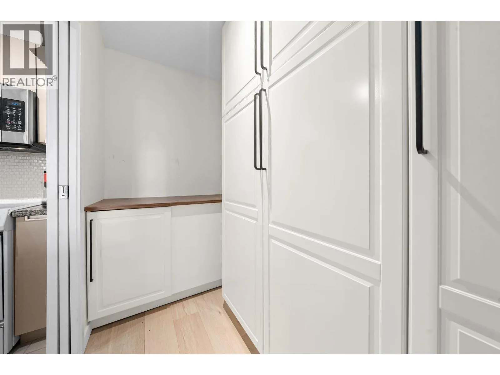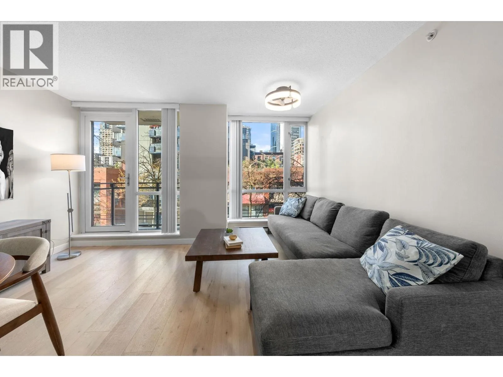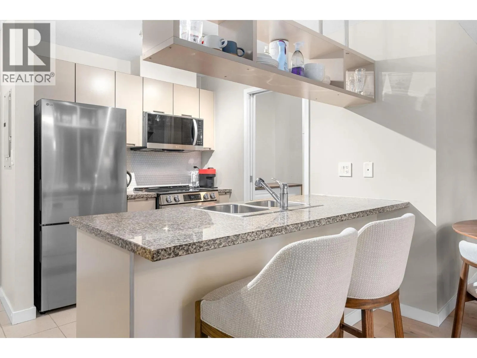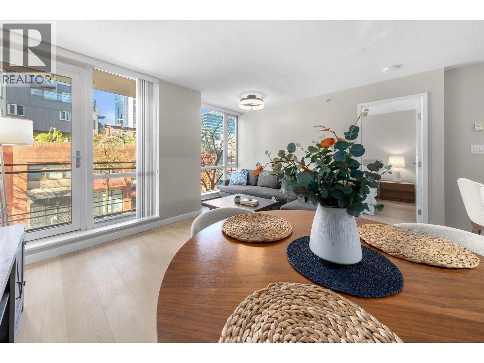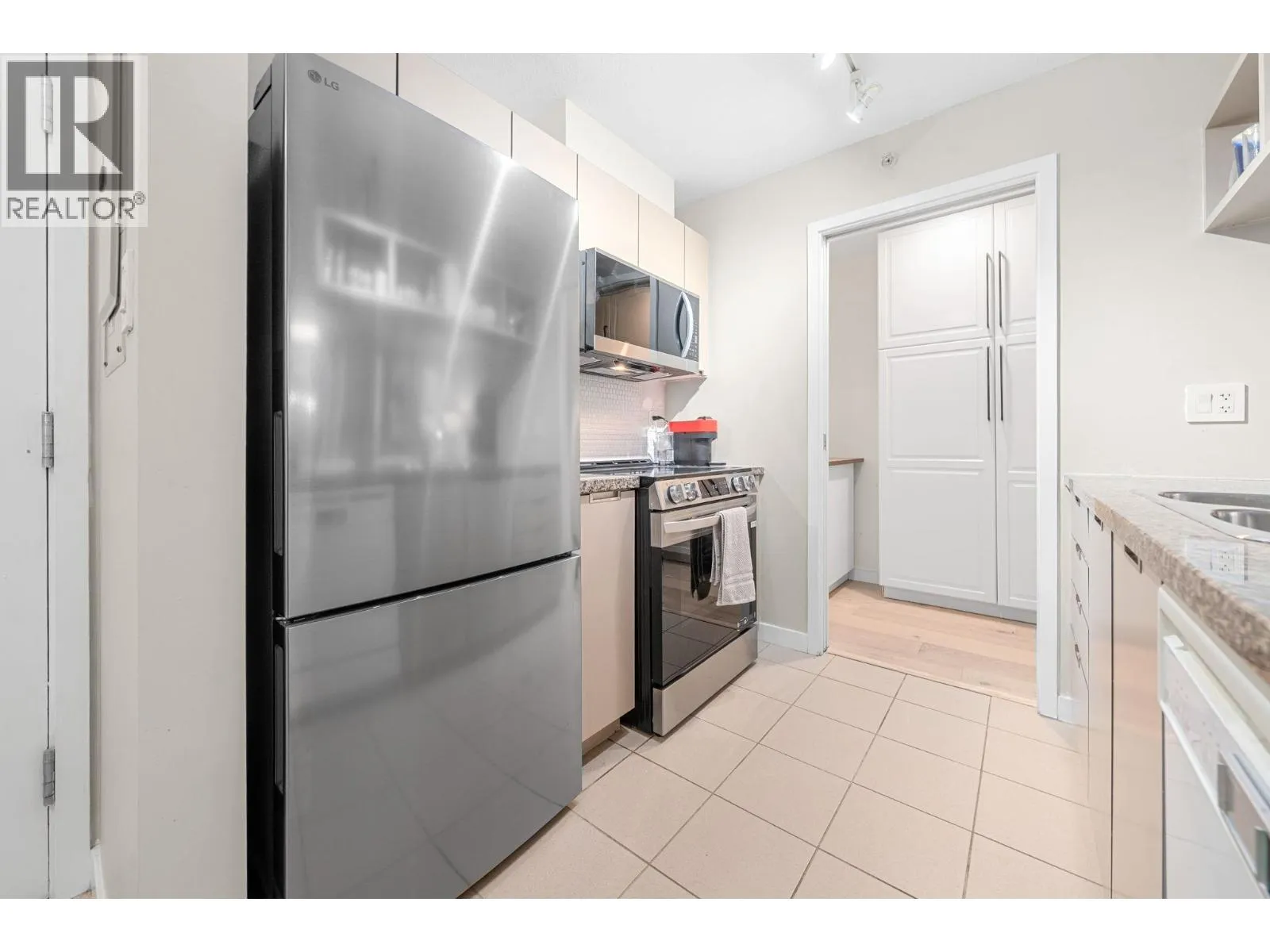 Well maintained, updated and OWNER OCCUPIED suite at the Freesia! The home features floor-ceiling windows, UPGRADED HARDWOOD OAK flooring, and open concept living. The kitchen has plenty of cabinet space and features BRAND NEW stainless steel appliances, granite counters and bar seating. The bedroom is large and comfortably FITS A KING-SIZED BED. There is also a large pantry with ample CUSTOM BUILT-IN STORAGE, IN SUITE LAUNDRY and a private outdoor WEST-FACING DECK that soaks up the afternoon sun. The strata has FULL TIME CONCIERGE service, a large gym and is pet and rental friendly. All this just steps to everything the Downtown Peninsula has to offer, including Emery Barnes Park, Yaletown, Davie Street, the Seawall and more! Owner occupied and possession available any time! (id:27476)