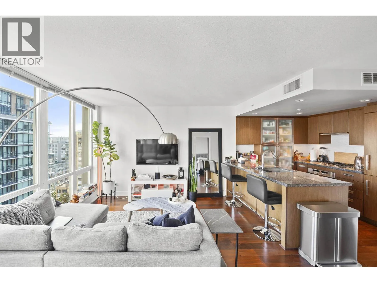 Welcome to the DONOVAN by Cressey, one of Yaletown´s most sought-after boutique buildings. This bright 1 bed + den home on the 17th floor offers open city views, AIR-CONDITIONING, engineered hardwood floors and floor-to-ceiling windows. The signature Cressey KitchenTM features Miele appliances, granite counters and ample storage. A spacious den is ideal for a home office or in-suite storage. Enjoy excellent amenities including a gym, yoga room, sauna/steam and residents´ lounge. One parking and locker included. Steps to the SkyTrain, seawall, parks, shops and restaurants, this is a smart choice for first-time buyers or investors seeking quality and convenience. (id:27476)