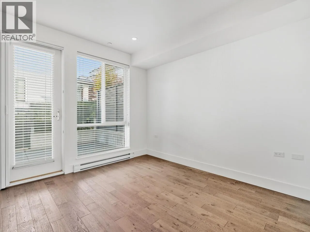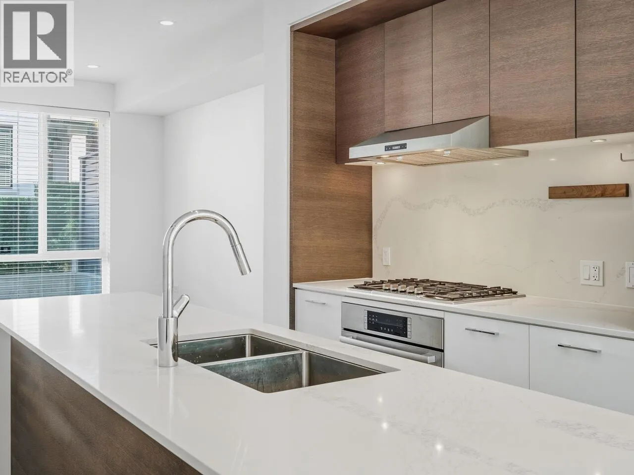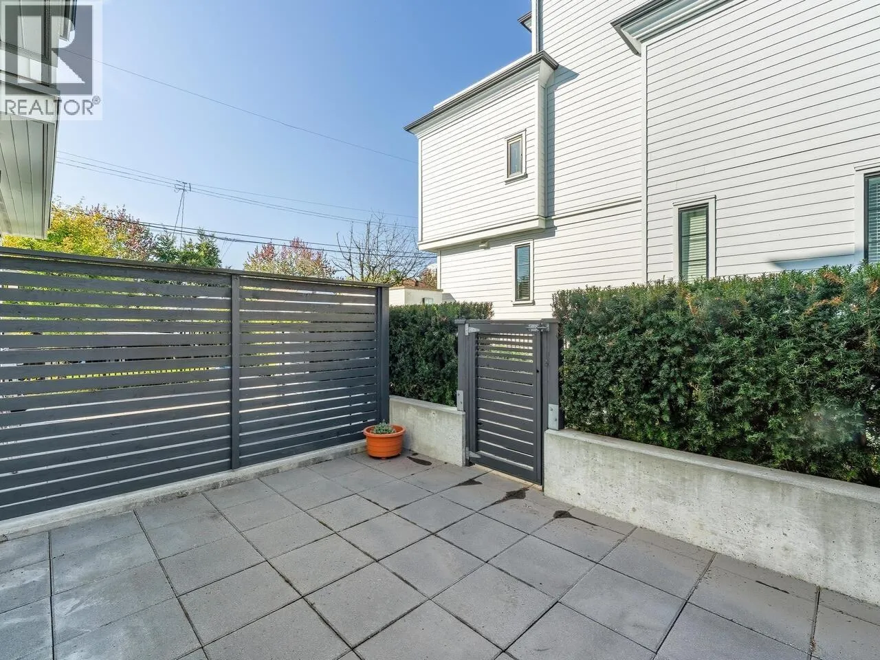 Outstanding 3 bedroom, 2.5 bath executive townhome in pristine condition. Thoughtfully designed, this beautiful home offers premium quality finishes including air conditioning for year round comfort. Bosch integrated appliances, gas cook top, stone counters & contemporary cabinetry create a sleek and streamlined kitchen. The home features a private patio on the main level plus a rooftop deck off the primary bedroom-perfect for relaxing. The lower level includes a generous sized storage or flex room, laundry and direct access to two secured parking stalls, including one EV. All of this located in a quiet, family-friendly area that offers easy access to the Canada Line, Winona Park, Langara Golf Course, excellent school catchments and nearby shops and restaurants. Showings by appointment. (id:27476)