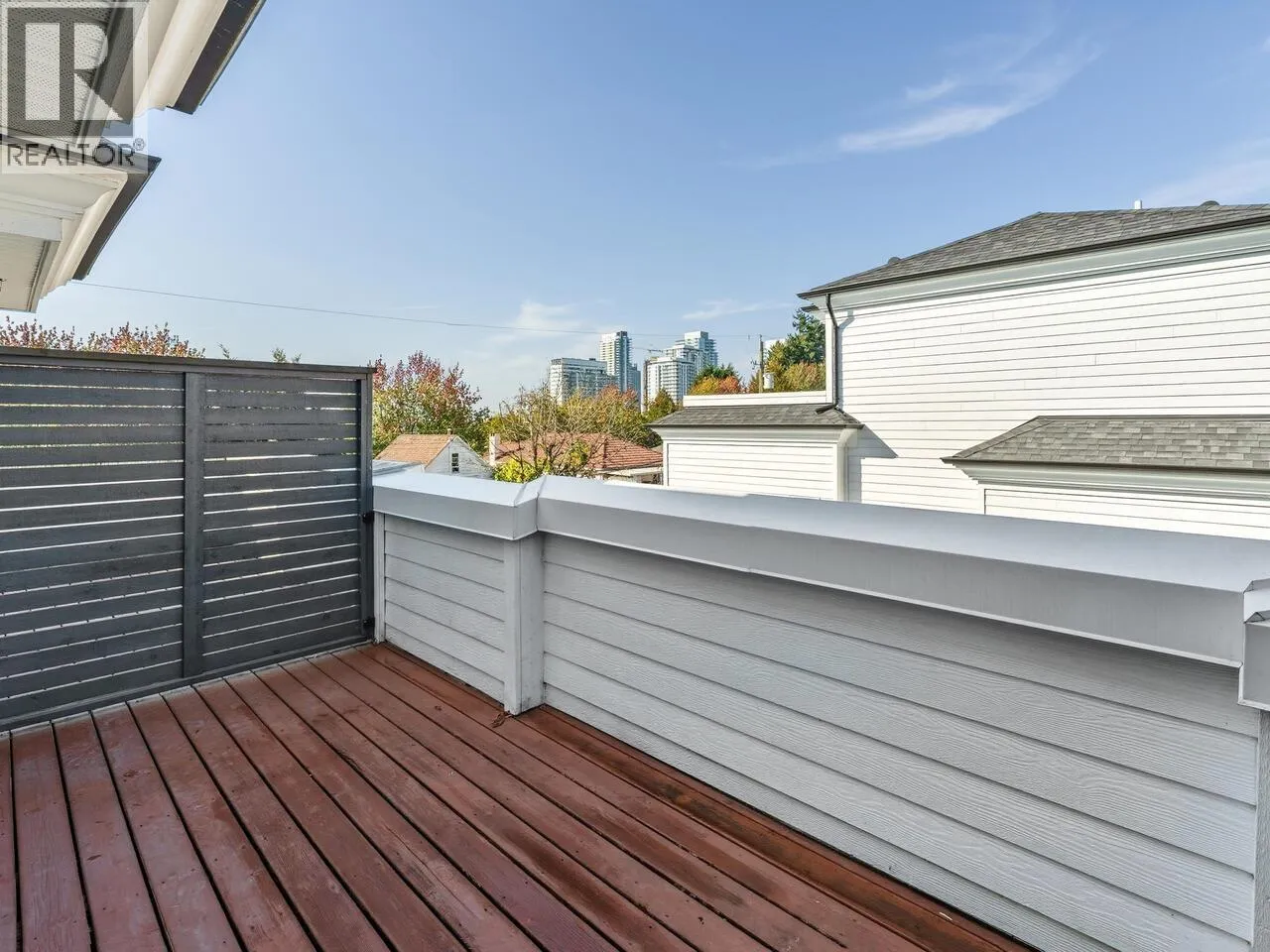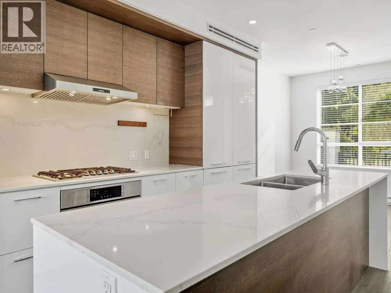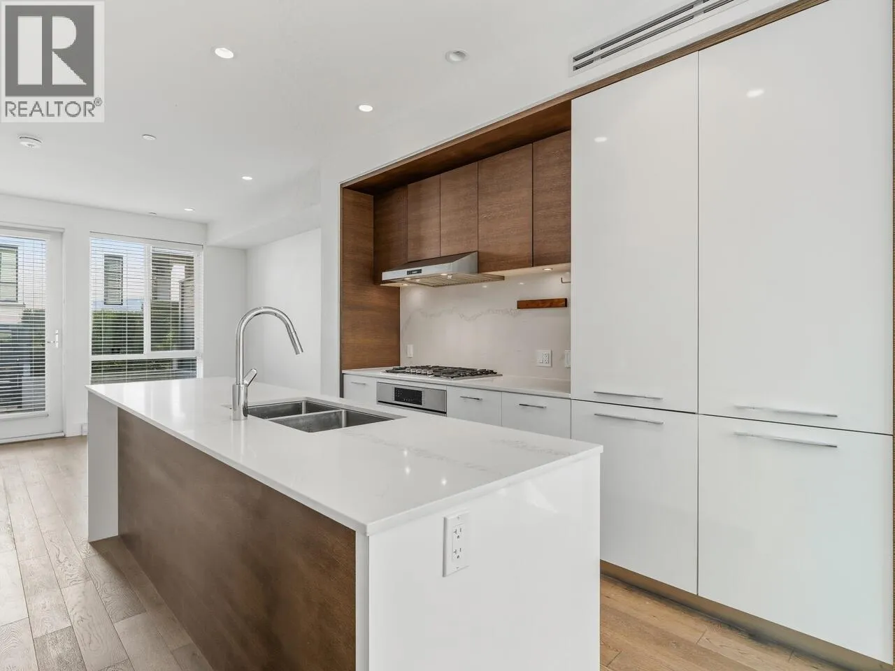 Outstanding 3 bedroom, 2.5 bath executive townhome in pristine condition. Thoughtfully designed, this beautiful home offers premium quality finishes including air conditioning for year round comfort. Bosch integrated appliances, gas cook top, stone counters & contemporary cabinetry create a sleek and streamlined kitchen. The home features a private patio on the main level plus a rooftop deck off the primary bedroom-perfect for relaxing. The lower level includes a generous sized storage or flex room, laundry and direct access to two secured parking stalls, including one EV. All of this located in a quiet, family-friendly area that offers easy access to the Canada Line, Winona Park, Langara Golf Course, excellent school catchments and nearby shops and restaurants. Showings by appointment. (id:27476)