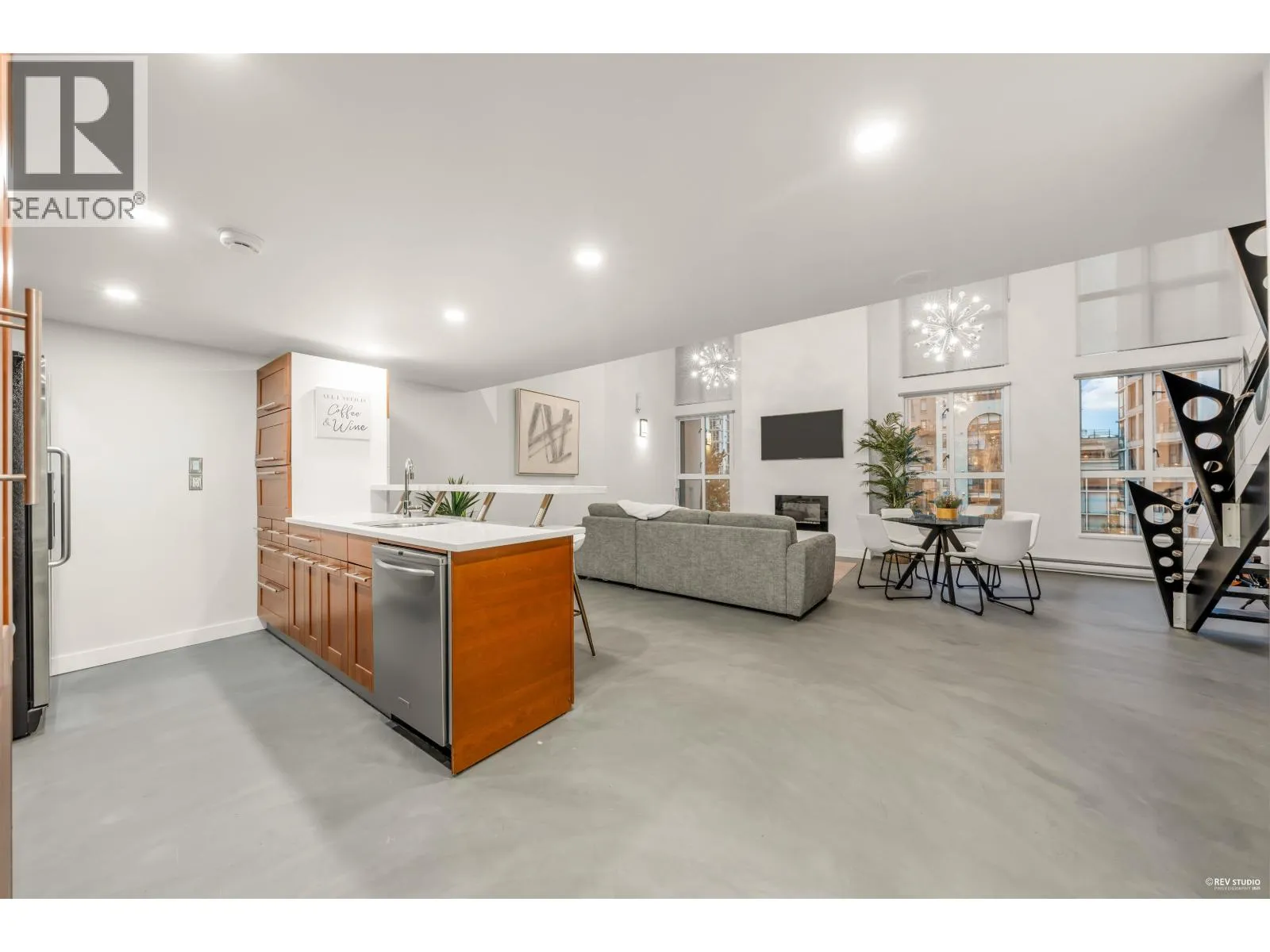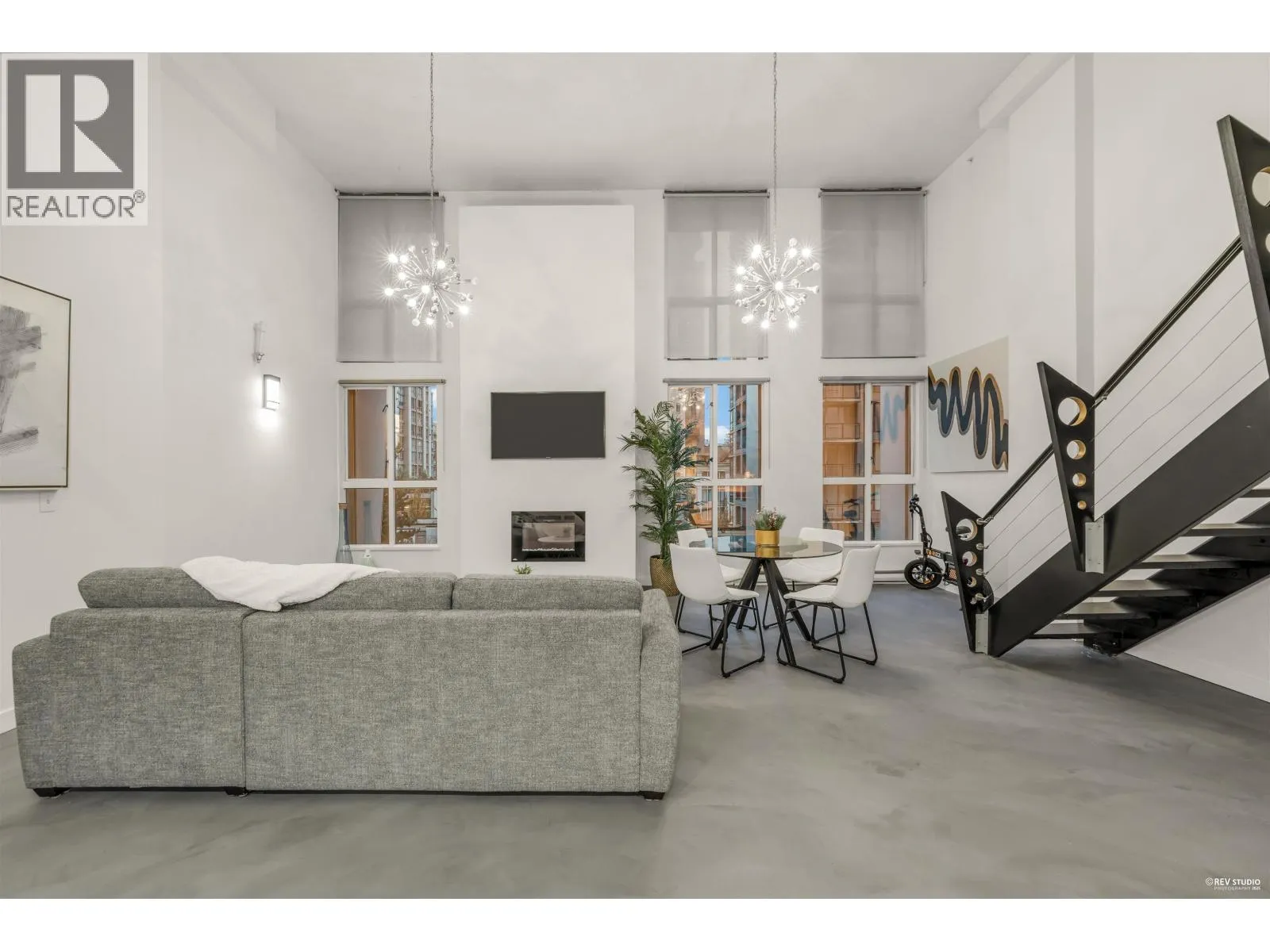 UNBEATABLE Value per square foot in the area!! Welcome to Space - a stunning two-level loft offering modern design, abundant natural light, and exceptionally open floor plan. Floor-to-ceiling windows, NEW CONCRETE flooring, FRESH paint, Stylish Staircase. Spacious master bedroom and customized walk-in closet complete with built-in organizers and drawers. The contemporary kitchen / quartz countertops. Enjoy fantastic eastern exposure and a quiet, private location within the building. Amenities including a rooftop deck, fitness centre, a media room, and ample bike storage. Located just steps from Yaletown, the Seawall, transit, parks, and countless shops, cafés, and conveniences-this is urban living at its finest. One extra-large parking included. (id:27476)