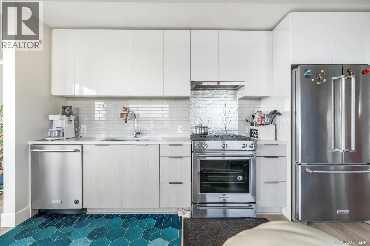 Welcome to Avalon Park 1 at the heart of the River District. Bright south-east Penthouse corner unit with a massive 2000 sq/ft plus rooftop deck. Open living space with high 9ft ceiling, full size kitchen, quartz countertops, high-end appliances and plenty of windows for natural light. In-floor radiant floor heating keeps the space comfortably warm during cooler seasons. Enjoy the amazing 3-storey world-class Sky Lounge with a well equipped gym, playground, garden lounge and much more. Very close to waterfront trails, golf course, soccer field, grocery stores, bank and restaurants. (id:27476)