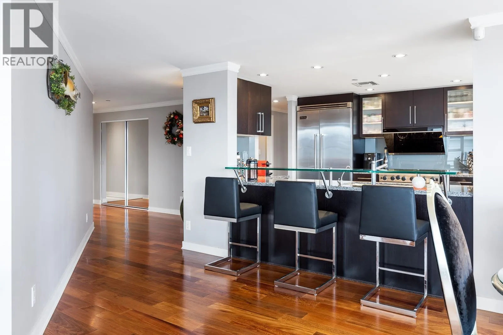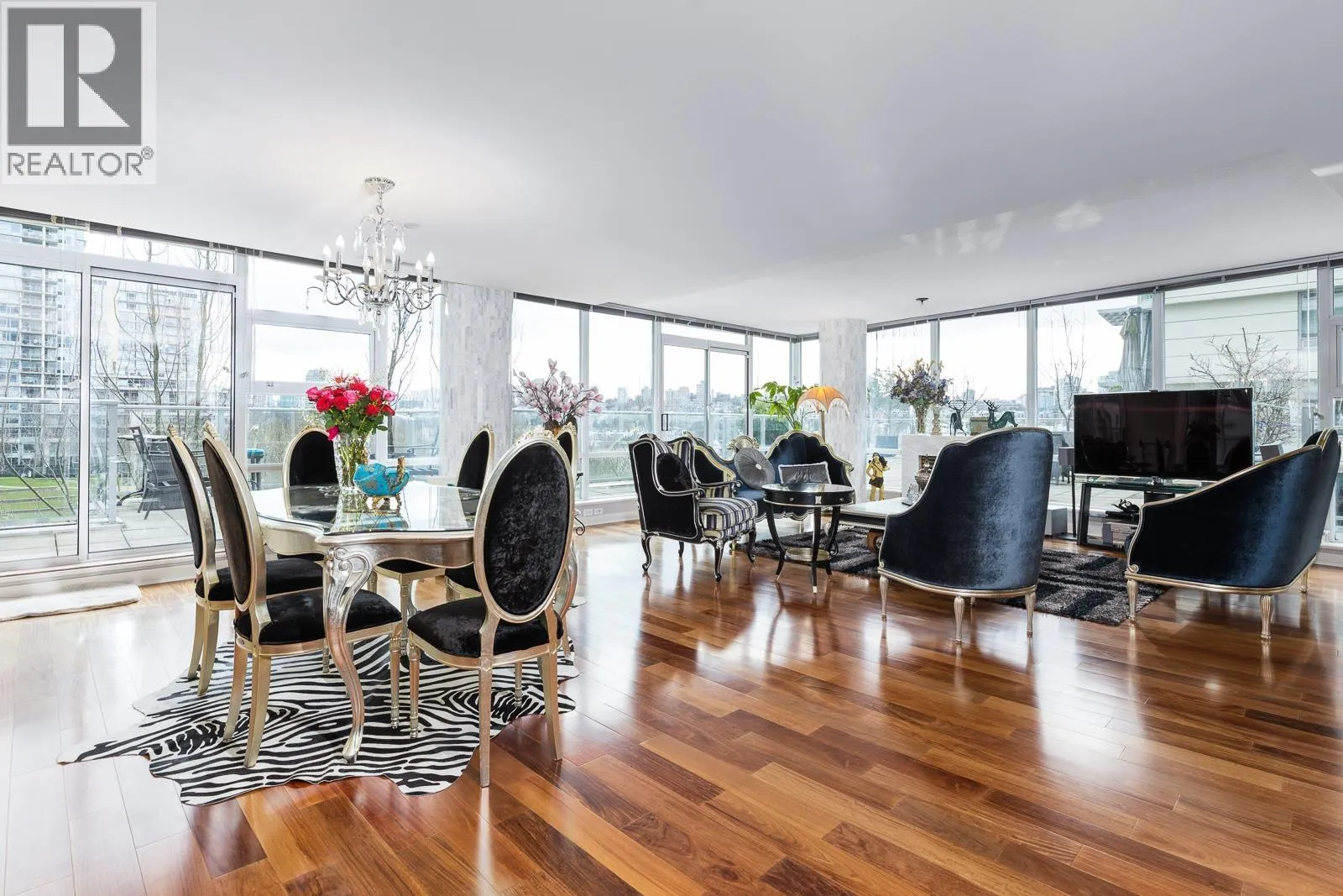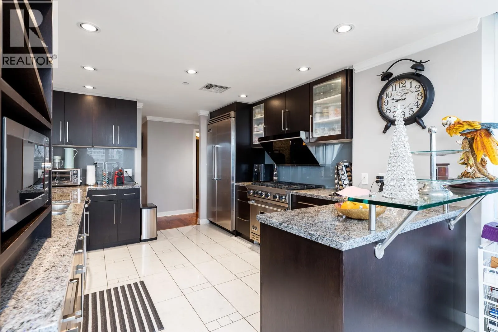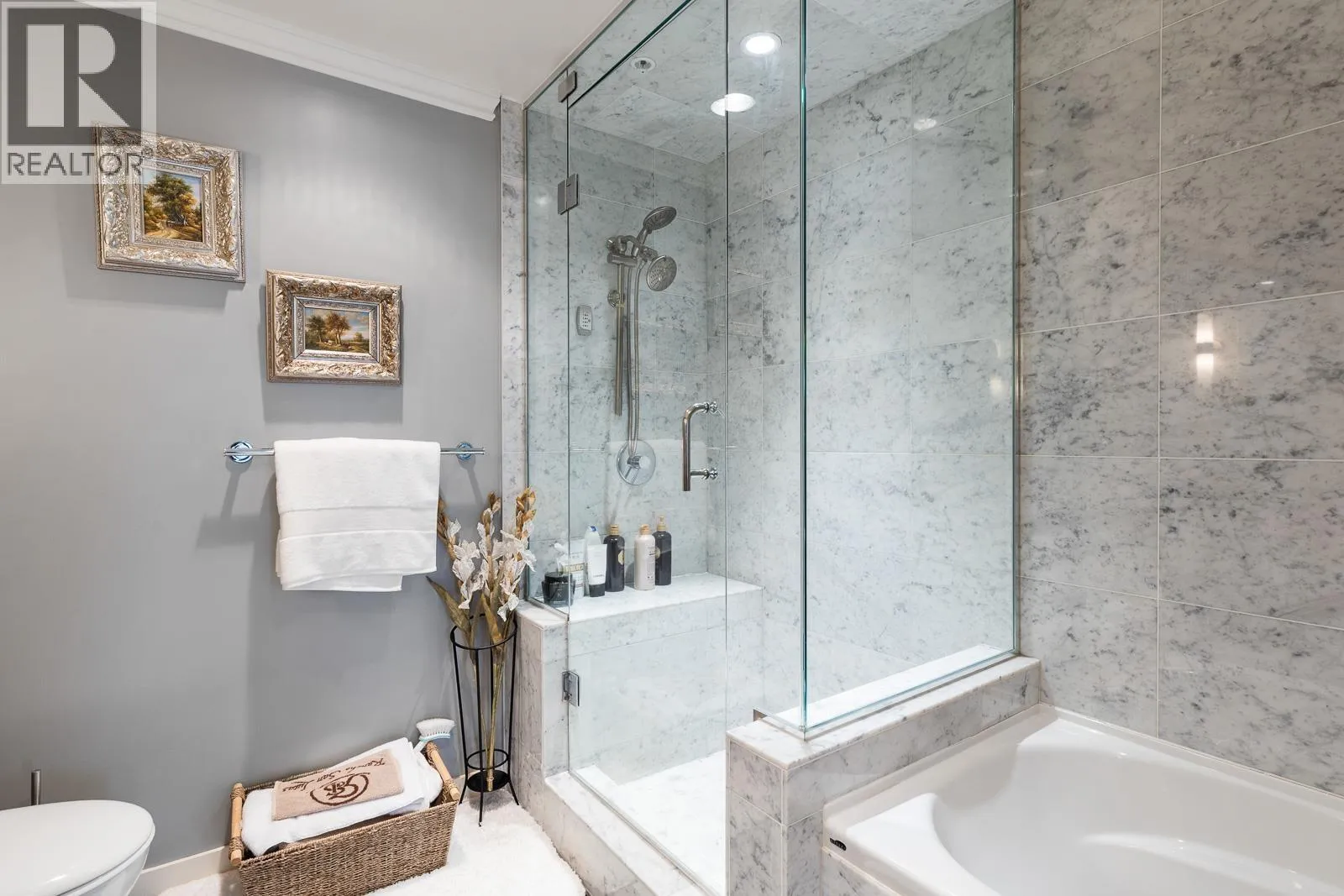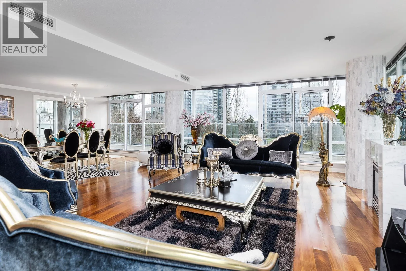 AIR CONDITIONED CORNER unit! Beautiful views directly overlooking park & water! South SUNNY & BRIGHT one of a kind unit. Well designed OPEN & SPACIOUS 2,172 sqft interior living w/A/C PLUS 1500 square ft of your own private landscaped terrace w/elegant gazebos & BBQ. 3rd floor perched up on the high side of the park. 2 bdrms + large den (could be 3rd bdrm) House size rooms w/chef's kitchen. Floor to ceiling windows completely surround the home & frame the NATURAL BEAUTY from outside! This most UNIQUE & SPECIAL home has penthouse quality finishings & appliances, marble gas fireplace. Inc. 2 side by side parking stalls. Prestigious, well run building. "The Icon I' offers concierge service, fitness center, pool, sauna (id:27476)