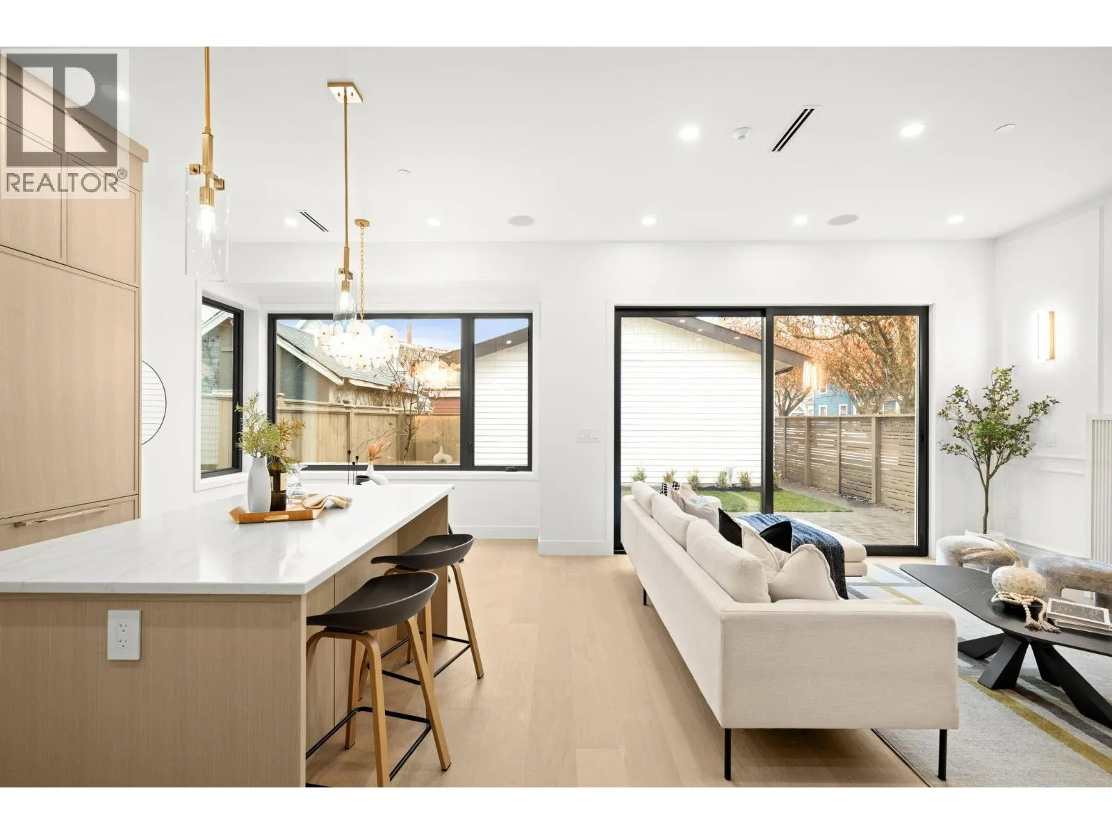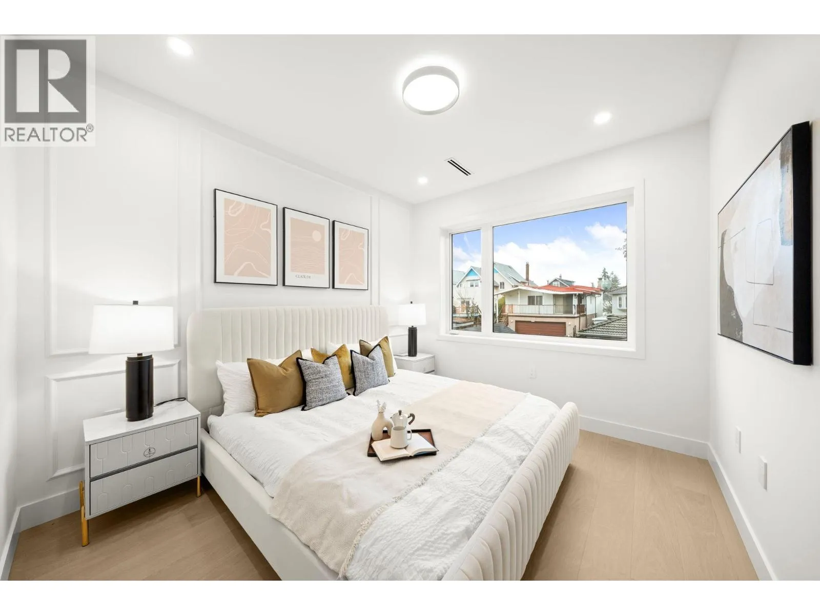 Stunning back duplex in Mount Pleasant with unbeatable mountain views from the upper bedrooms, your daily backdrop of sunrise and sunsets. Enjoy a completely private backyard perfect for pets, gardening, and outdoor entertaining. This 4 bed, 3.5 bath home features engineered hardwood floors, custom cabinetry, detailed millwork, radiant heating, and air conditioning. The sleek kitchen offers Fulgor appliances, a 6-burner gas range, and a large kitchen island with a separate dining space. EV-ready parking and a spacious crawl space for storage. Minutes away from Charles Dickens Elementary and Tupper Secondary catchments, steps to parks, cafés, transit, and more. Book your private showing today! (id:27476)