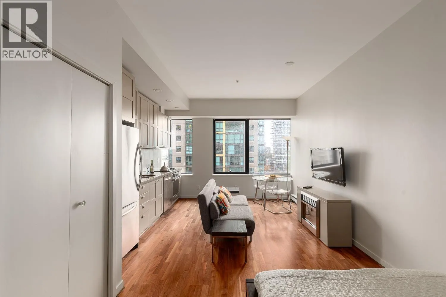Fully furnished turkey studio perfect for INVESTOR, FIRST TIME BUYER or a PIED A TERRE. The ICONIC QUBE building in Coal Harbor; an ARCHITECTUAL landmark, a marval of Engineer design said to be Earthquake resistant. This late 60's mid-century building was converted to strata properties in 06. The unit is furnished; the kitchen has stainless steel appliance package, granite counters, ample cabinets; insuite laundry, hardwood floors, FP and nearly 10 foot ceiling plus lots of closet space. Comes with 1 parking + 1 storage locker which is literally steps from the suite on the same floor. Perfectly located just minutes from the Seawall, marina, Robson street, Stanley Park and the business district. Bonus, 4 fast elevators! Pets ok, Rentals ok - 1 month minimum. OPEN SAT NOV 22nd 2-3:30pm. (id:27476)