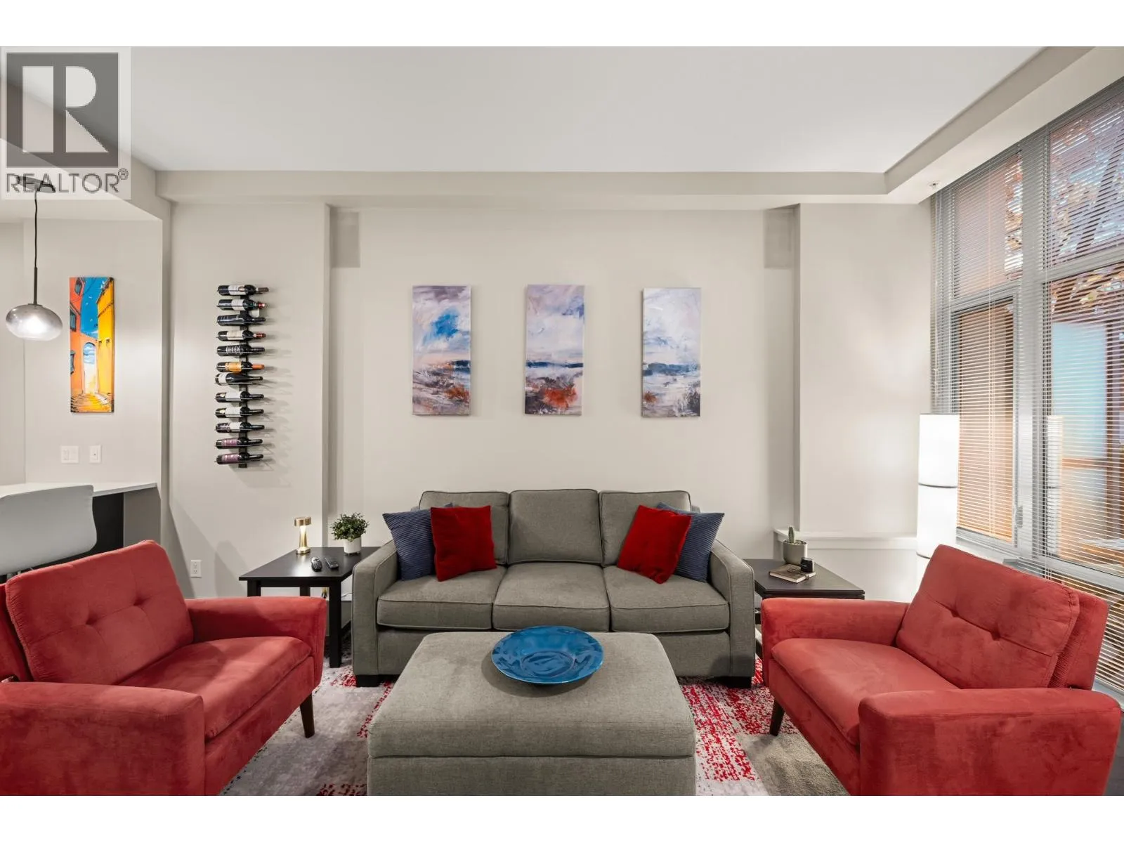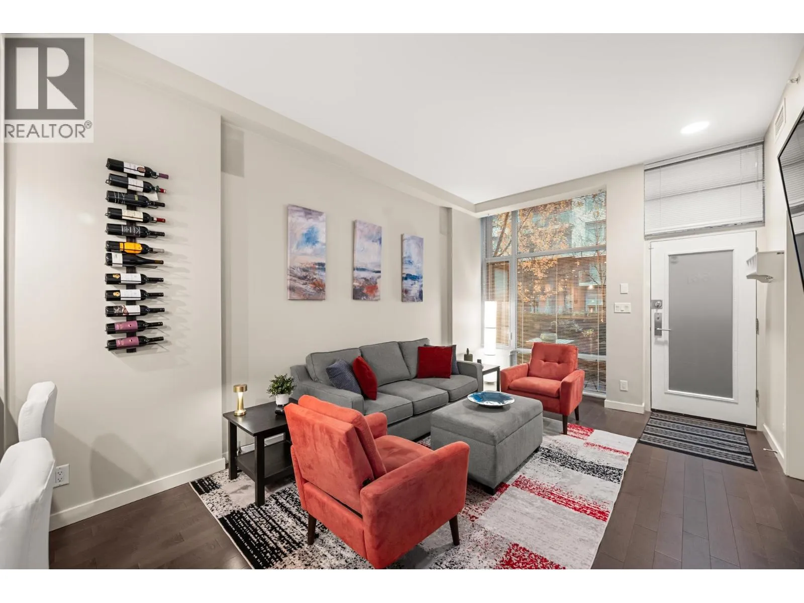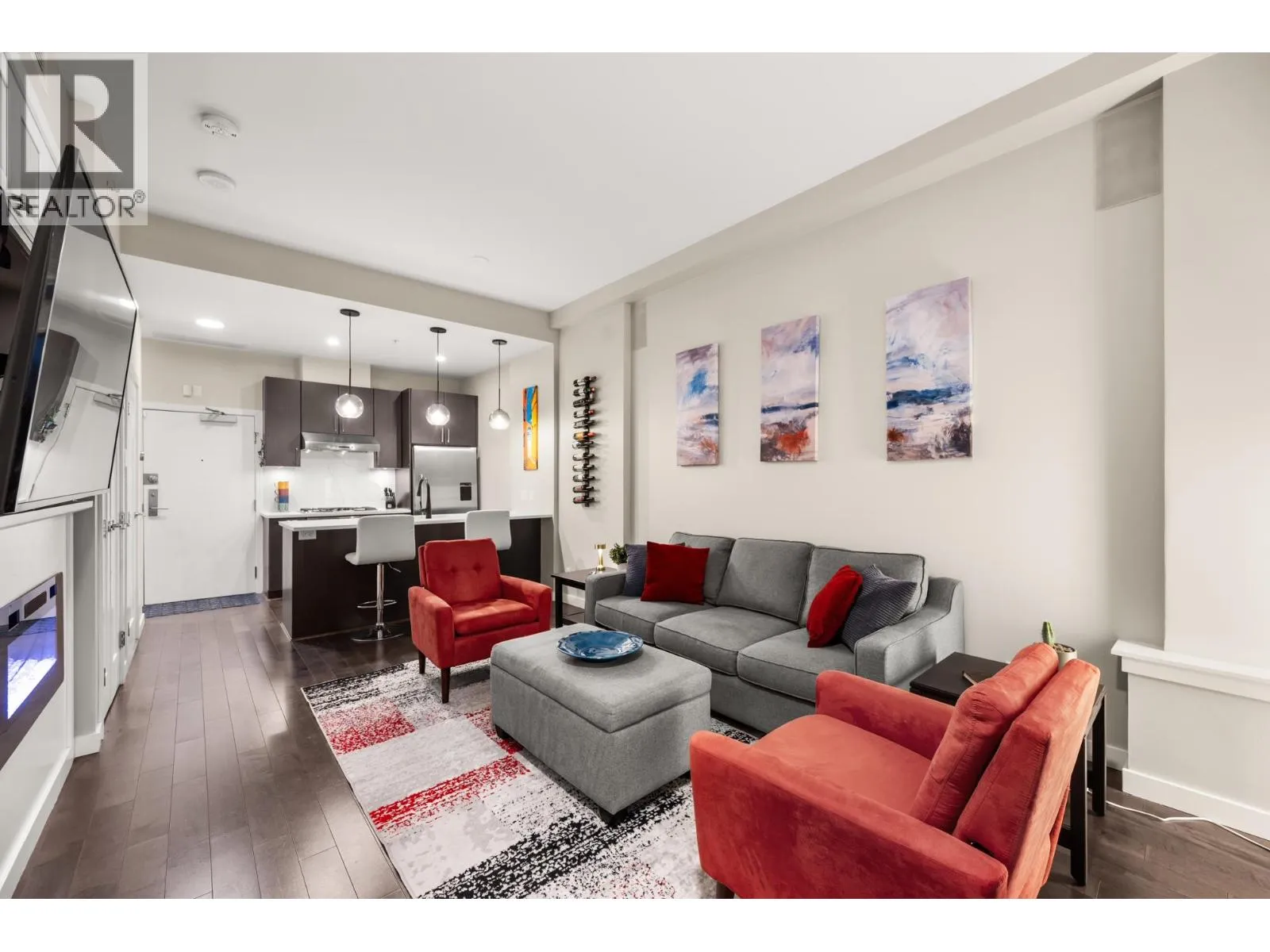 Contemporary design meets everyday function in this rarely available 2 bedroom + office (or 3rd bdrm), 2.5 bath, air-conditioned townhome. The home features a terrific layout with floor-to-ceiling windows, hardwood floors, fireplace, premium stainless steel appliances, large kitchen pantry and loads of storage. Upstairs are 2 bedrooms incl a primary suite w/spacious walkthrough closet & 5 piece bathroom with soaker tub and separate shower. The main floor is where the office or 3rd bedroom can be found with extra room for expansion or storage. Enjoy top-tier amenities including a rooftop infinity pool, hot tub, gym & party room. Steps to the SkyTrain, Seawall, Science World, grocery stores, great cafés & restaurants, dog parks and more! Two side-by-side parking stalls, locker & bike room included. (id:27476)