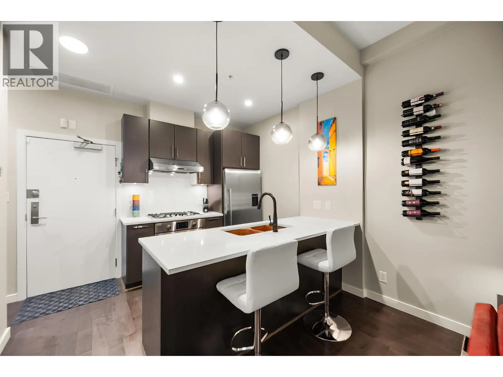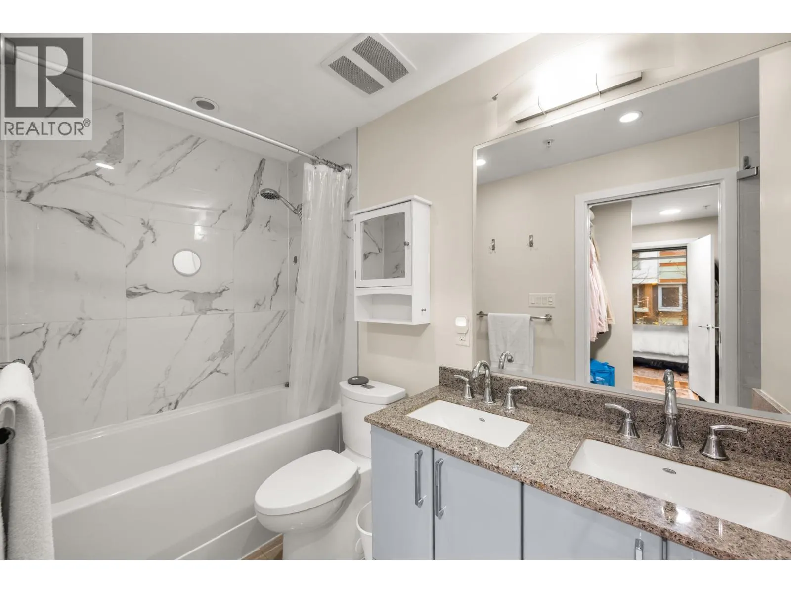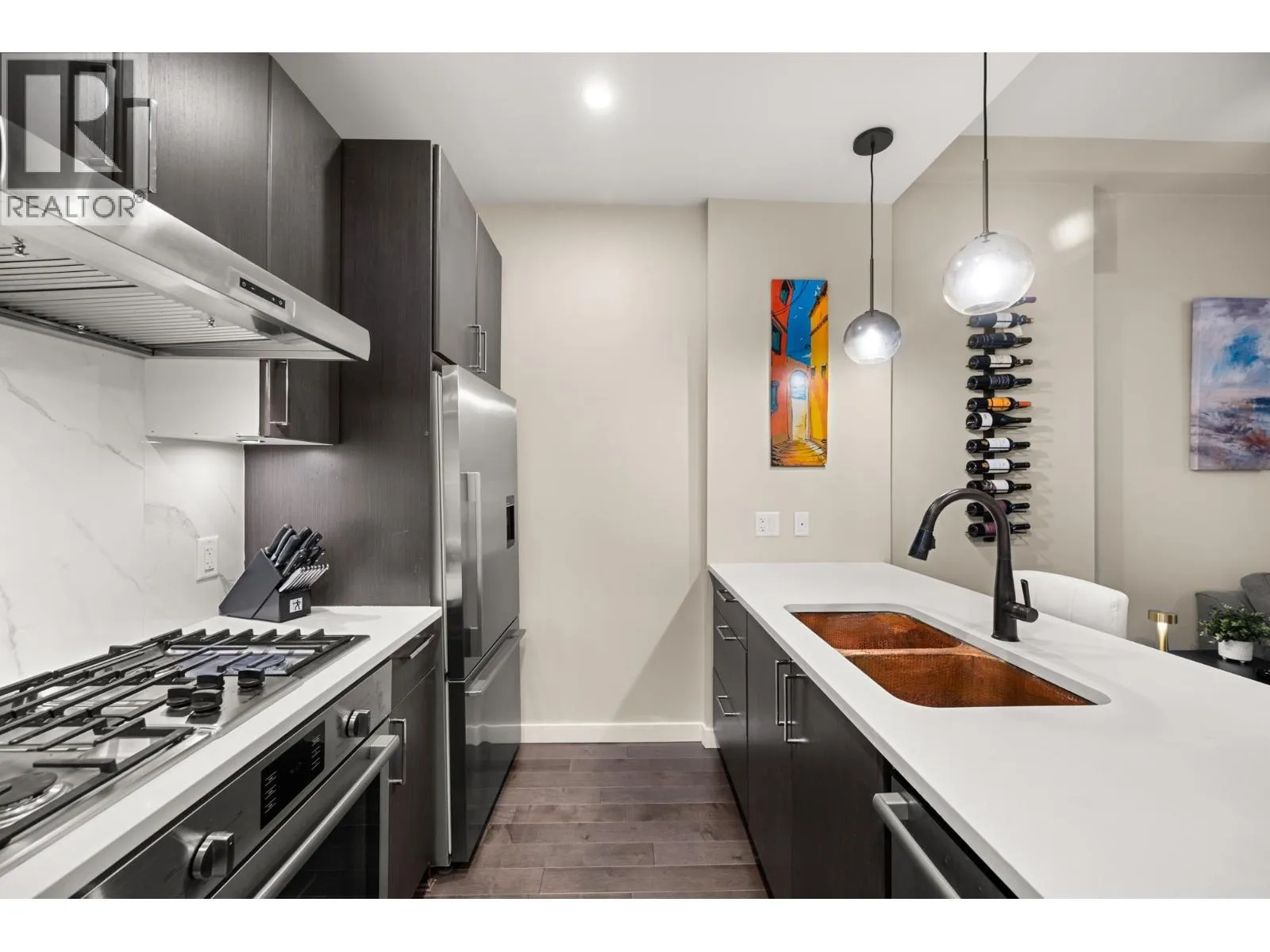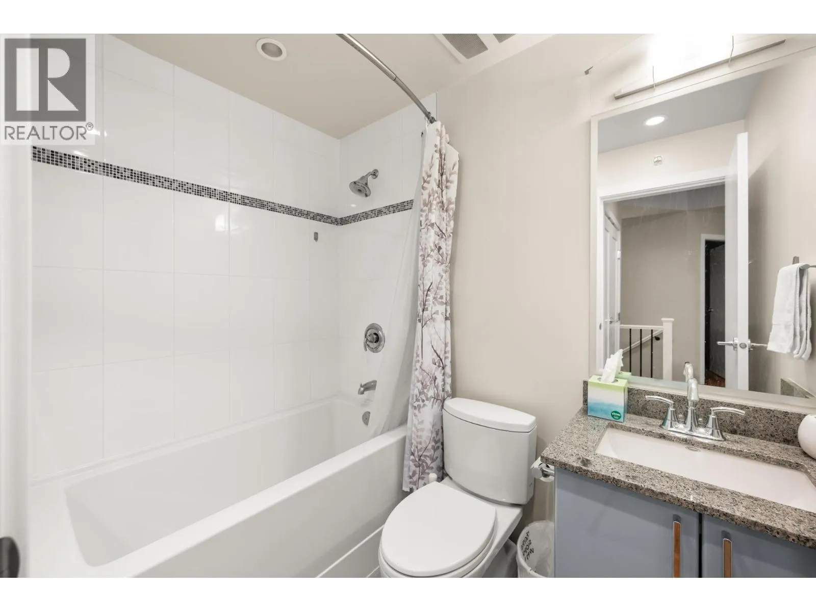Contemporary design meets everyday function in this rarely available 2 bedroom + office (or 3rd bdrm), 2.5 bath, air-conditioned townhome. The home features a terrific layout with floor-to-ceiling windows, hardwood floors, fireplace, premium stainless steel appliances, large kitchen pantry and loads of storage. Upstairs are 2 bedrooms incl a primary suite w/spacious walkthrough closet & 5 piece bathroom with soaker tub and separate shower. The main floor is where the office or 3rd bedroom can be found with extra room for expansion or storage. Enjoy top-tier amenities including a rooftop infinity pool, hot tub, gym & party room. Steps to the SkyTrain, Seawall, Science World, grocery stores, great cafés & restaurants, dog parks and more! Two side-by-side parking stalls, locker & bike room included. (id:27476)