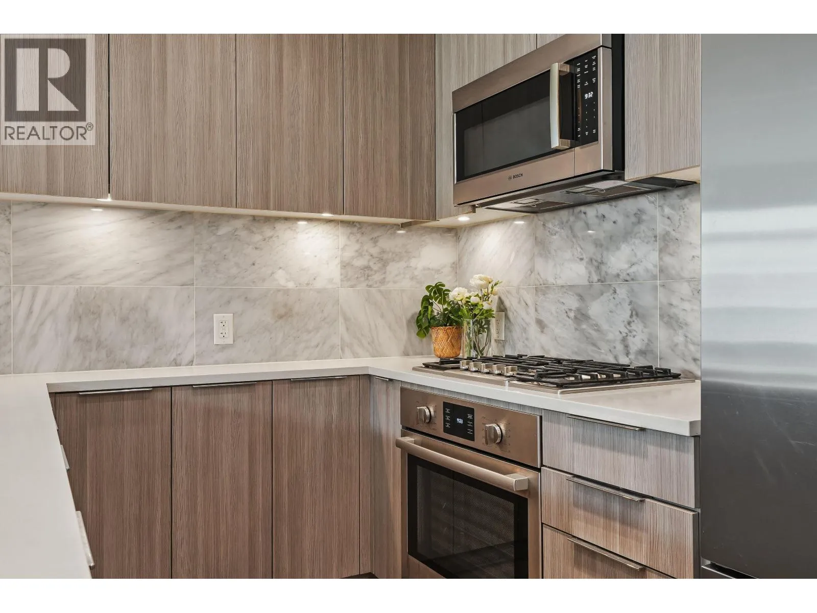 Welcome to R+R by Polygon! This beautifully designed unit features a large, open-plan living and dining room that opens out to north-facing balcony views, adjoining a gourmet kitchen equipped with high-end appliances, polished quartz countertops, and an expansive island that is perfect for entertaining. The primary bedroom offers a luxurious ensuite and a walk-in closet with organizers. Interior highlights include IN-FLOOR RADIANT HEATING and new laminate flooring in both bedrooms! Ideally situated in Vancouver's newest family-oriented and waterfront community, THE RIVER DISTRICT; with an assortment of boutique shops, services and restaurants with an open-air feel of streets and plaza.Future Community Center and elementary school. 1 parking & 1 storage included (id:27476)