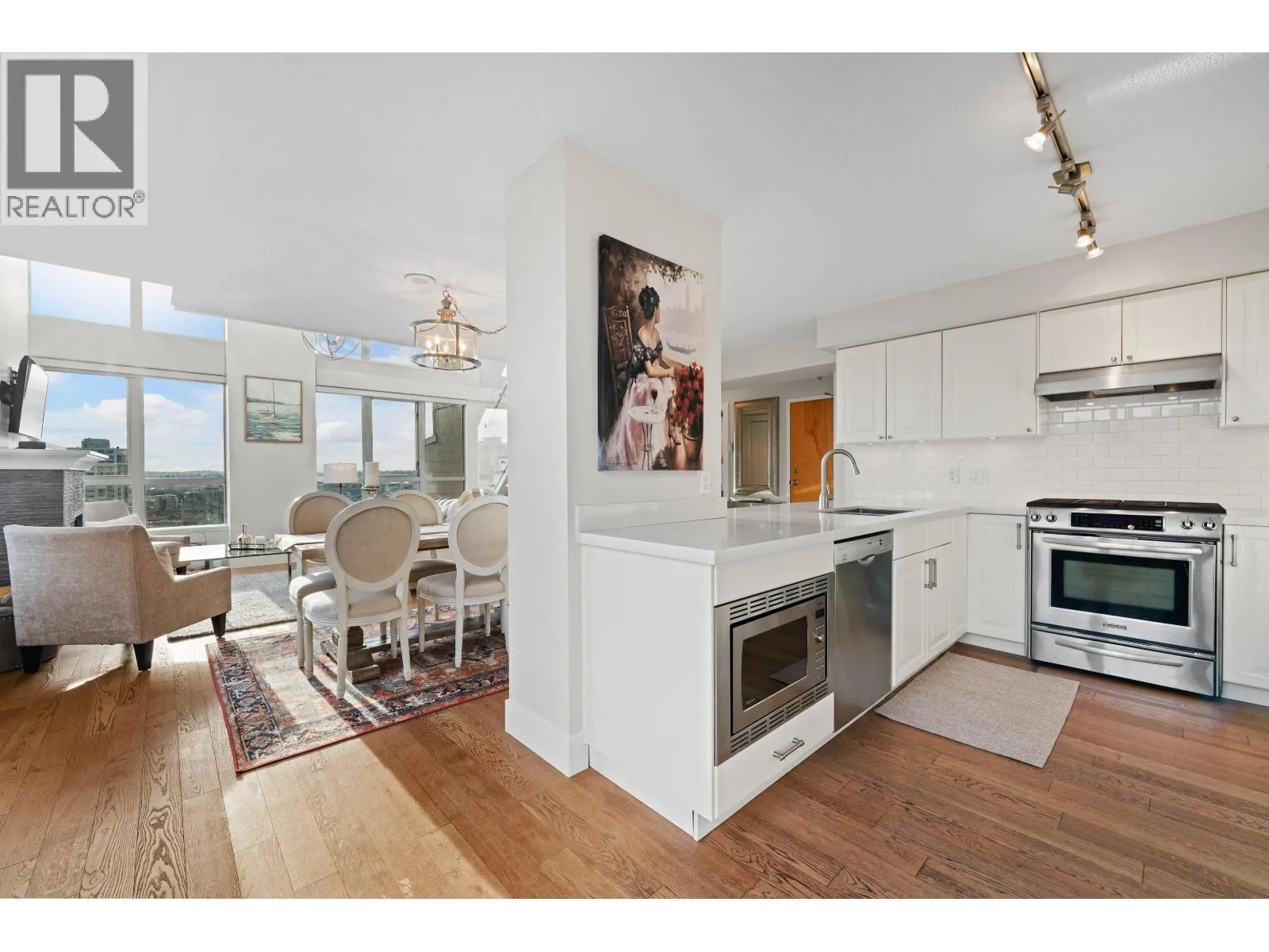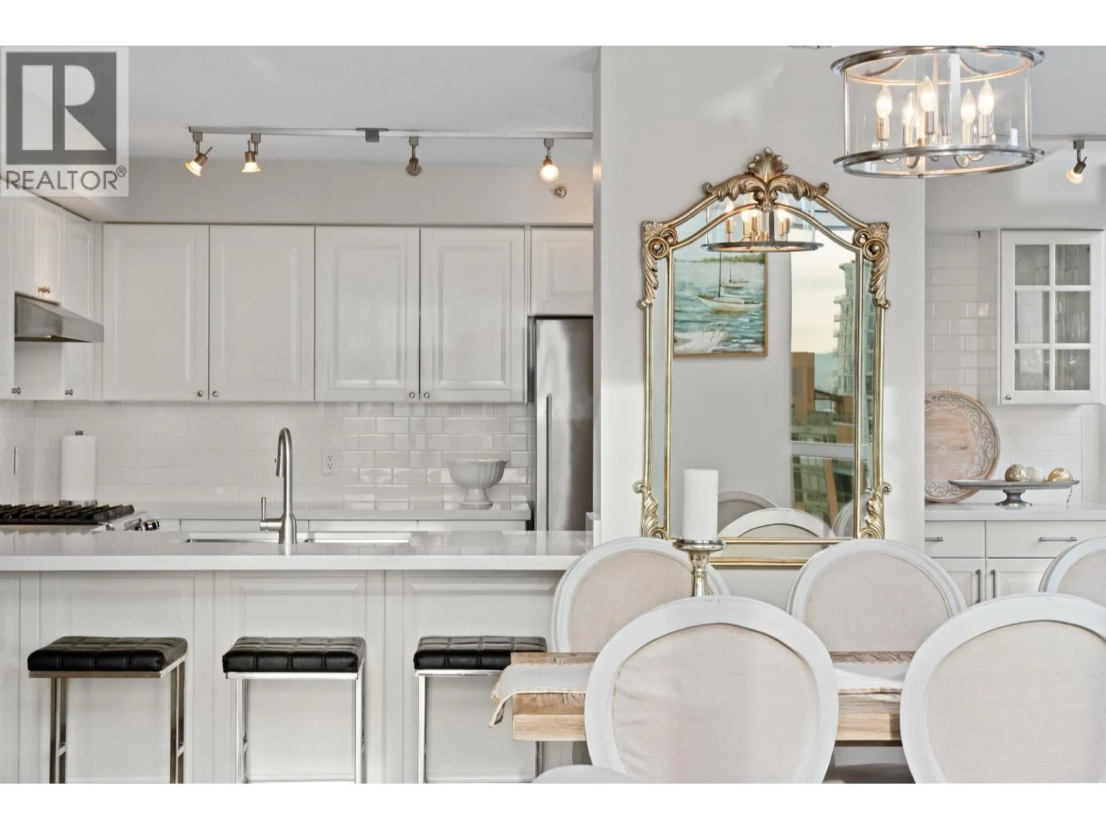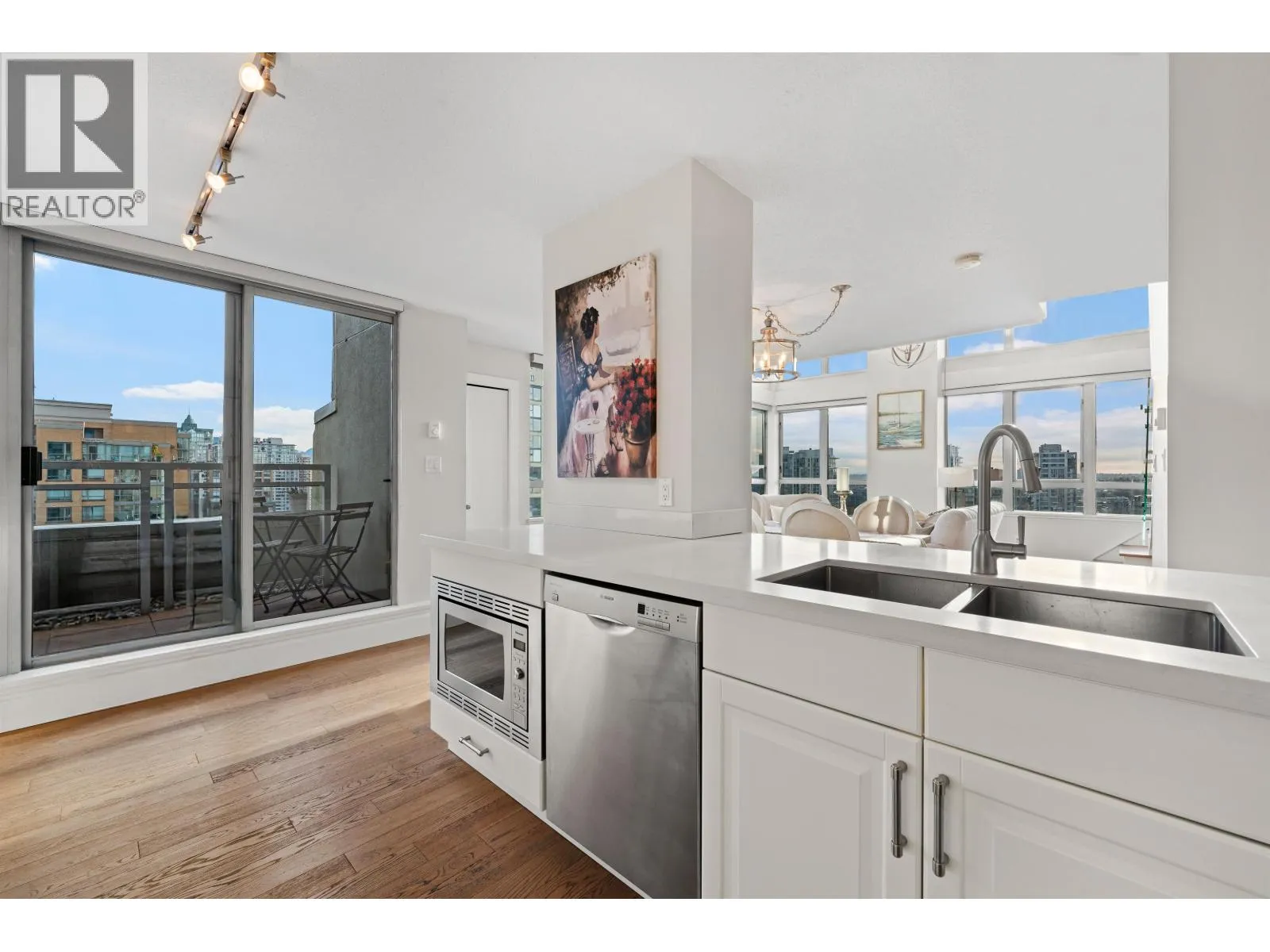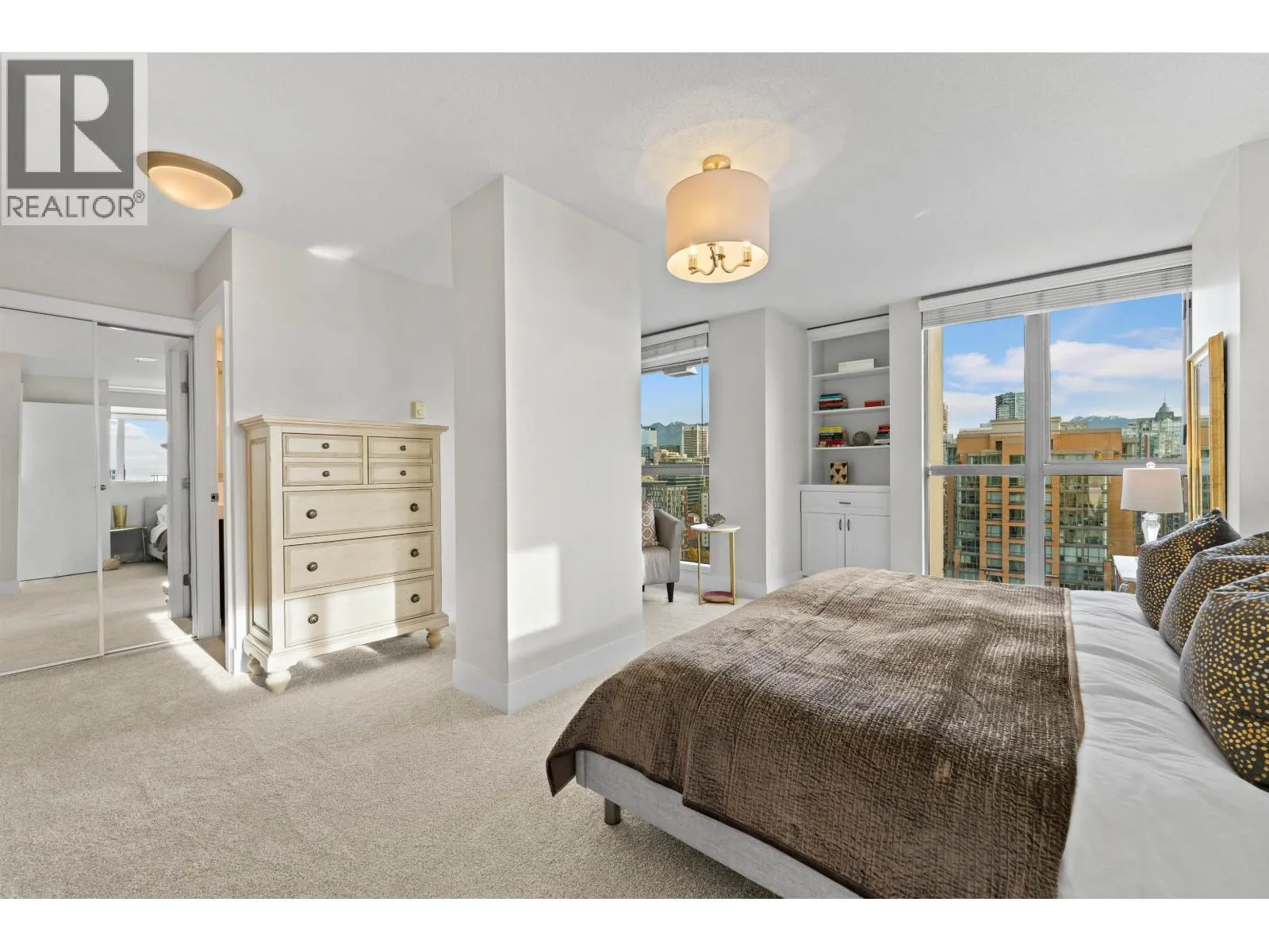 A true Yaletown icon. With 1,542 square ft of living space, 16-foot ceilings, and panoramic city-to-mountain views, this bright two-level corner loft at The Metropolis delivers both style and comfort. The fluid layout merges a granite-clad kitchen and open dining area with a dramatic double-height living room wrapped in glass and filled with natural light. Upstairs, the mezzanine reveals the primary suite with dual closets, ensuite, and a versatile den. A second bedroom on the main level provides ideal separation for guests. Set within a well-managed concrete building all just steps from the Seawall, parks, cafés, and Yaletown shopping. (id:27476)