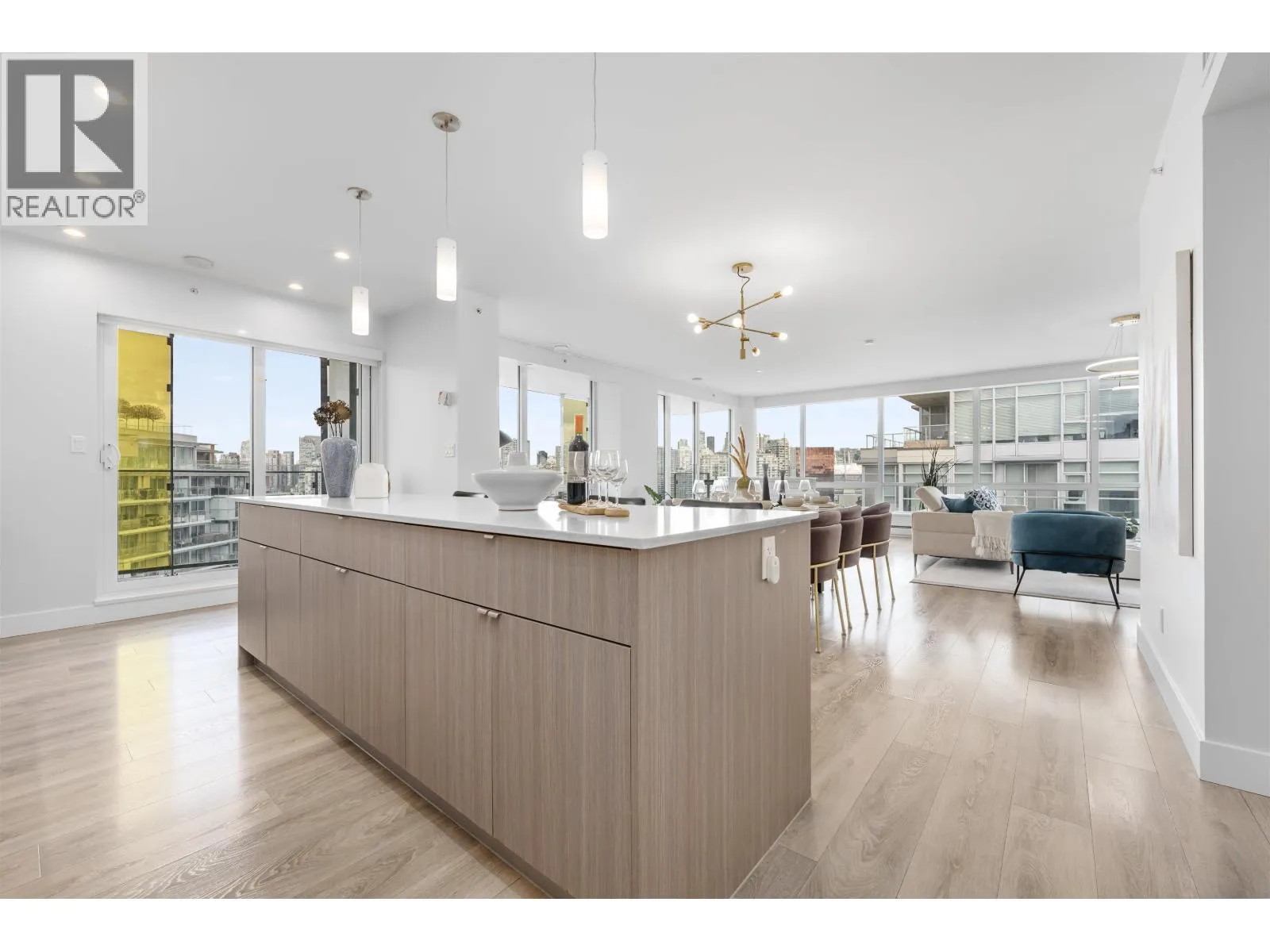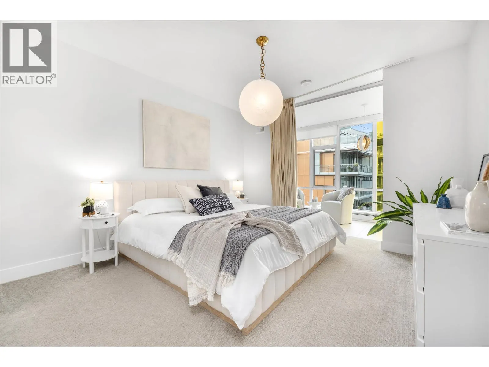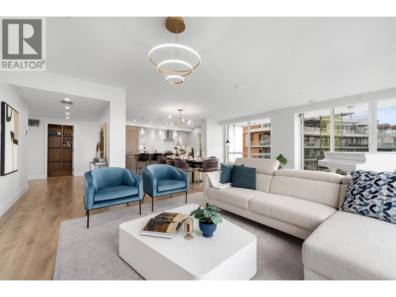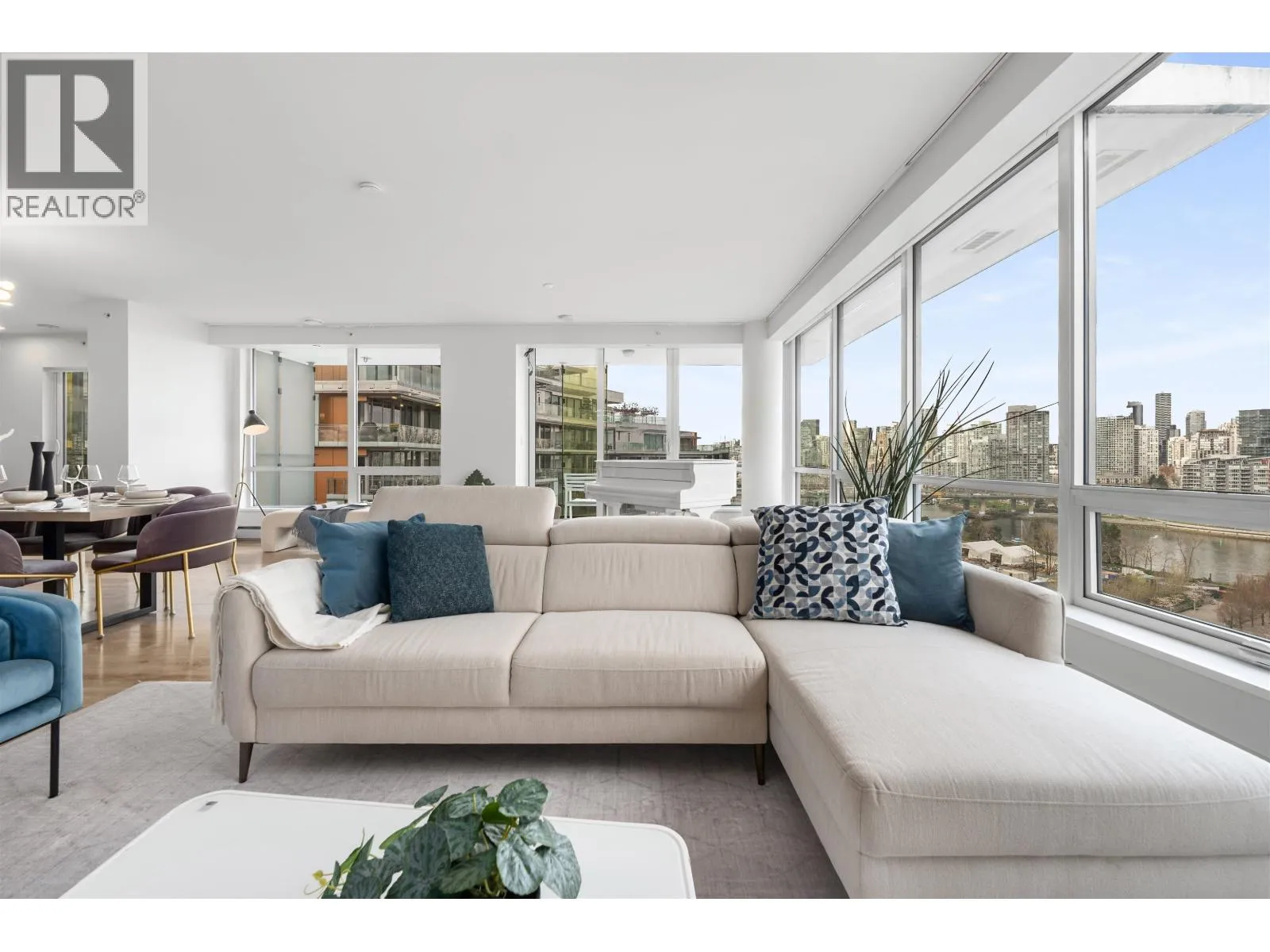 Enjoy waterfront living in this 3 Bedroom + Den, 3 Bathroom penthouse at Epic at West in Olympic Village. Bright & spacious with large windows providing views of the downtown city skyline, tranquil False Creek waterfront & the North Shore mountains. Featuring 8´8" ceilings, A/C, 9' kitchen island, Quartz composite counters & backsplash, wide plank laminate floors, porcelain tiles & remote blinds in the living room. Providing contemporary luxury including an integrated sub-zero fridge, Wolf gas range, Blomberg dishwasher & washer/dryer, a wine cellar room with thermostat controls, dual-vanity in primary ensuite, walk-in pantry/storage, 2 balconies & a private solarium off the primary bedroom. With 2 side by side parking & 3 lockers you´ll never run out of space! BY APPOINTMENT ONLY. (id:27476)