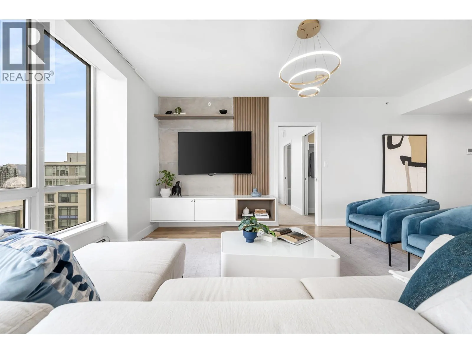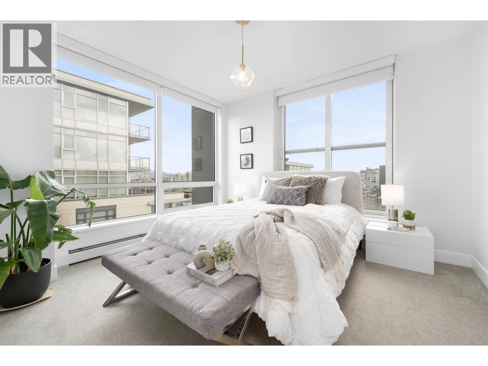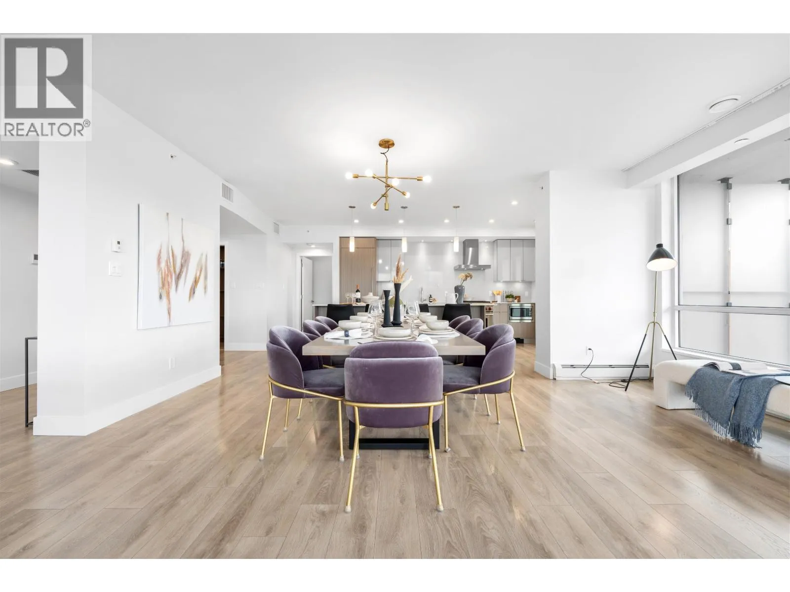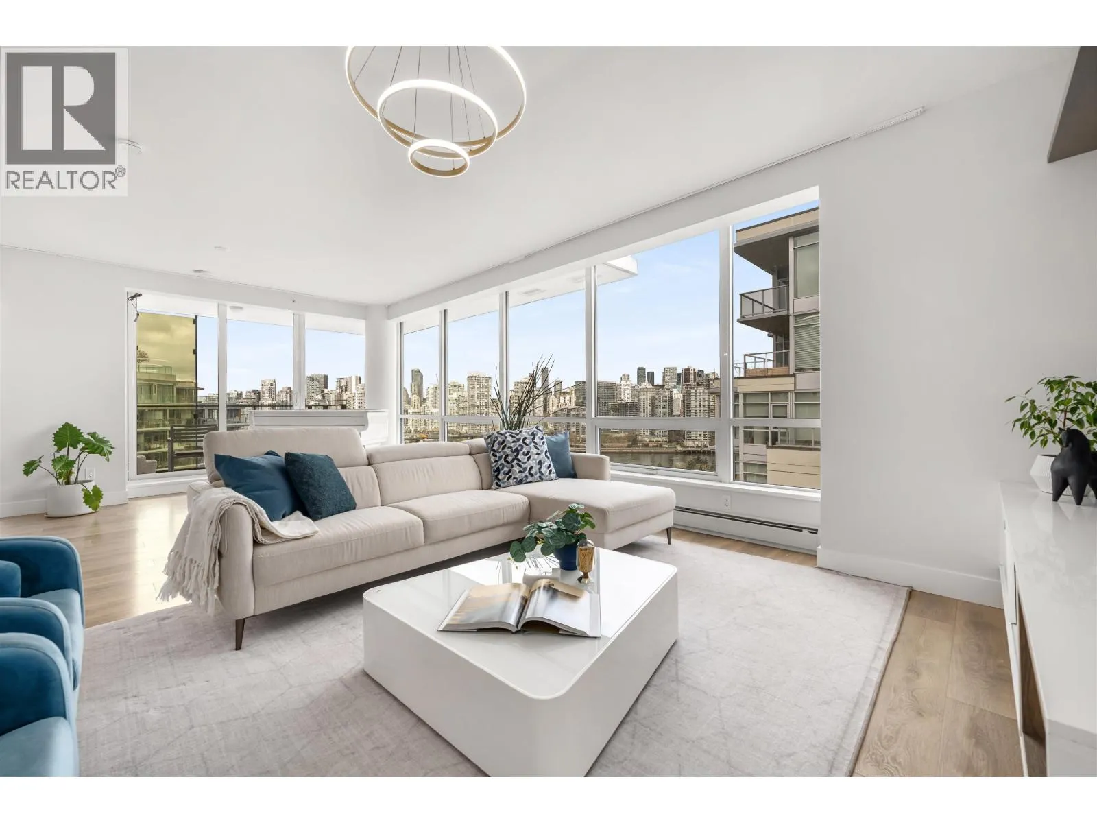 Enjoy waterfront living in this 3 Bedroom + Den, 3 Bathroom penthouse at Epic at West in Olympic Village. Bright & spacious with large windows providing views of the downtown city skyline, tranquil False Creek waterfront & the North Shore mountains. Featuring 8´8" ceilings, A/C, 9' kitchen island, Quartz composite counters & backsplash, wide plank laminate floors, porcelain tiles & remote blinds in the living room. Providing contemporary luxury including an integrated sub-zero fridge, Wolf gas range, Blomberg dishwasher & washer/dryer, a wine cellar room with thermostat controls, dual-vanity in primary ensuite, walk-in pantry/storage, 2 balconies & a private solarium off the primary bedroom. With 2 side by side parking & 3 lockers you´ll never run out of space! BY APPOINTMENT ONLY. (id:27476)