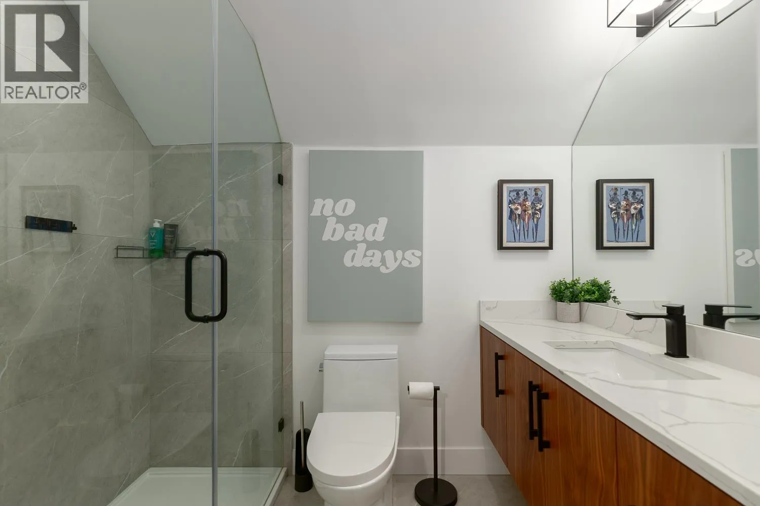Welcome to this gorgeous front-half duplex in the heart of Mount Pleasant, one of the best family communities in the city. This rare four-bedroom, four-bath home spans three beautifully finished levels. The main floor impresses with 10ft ceilings, wide-plank oak floors, walnut millwork, roll-out kitchen shelving, a gas fireplace, and a chef-inspired Fisher & Paykel kitchen with quartz counters. Upstairs offers three generous bedrooms and two baths, while the top floor provides a private retreat with its own bedroom, bath, and year-round covered balcony. Thoughtful details include A/C, smart home features, Riobel fixtures, irrigation, and excellent storage throughout. Outside, 12ft cedar hedges create privacy around the yard, and the garage is equipped with an EV charger. (id:27476)