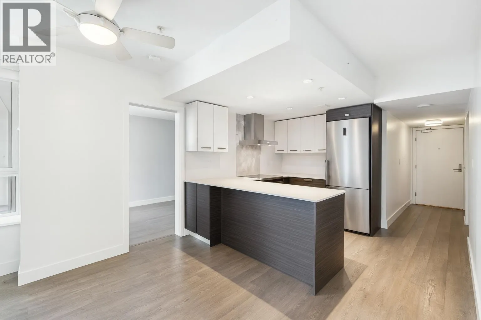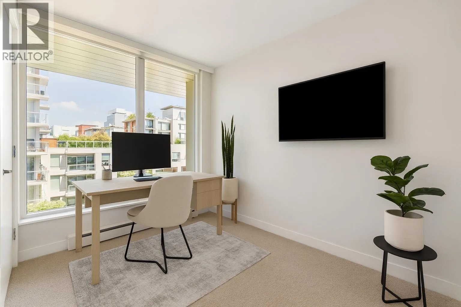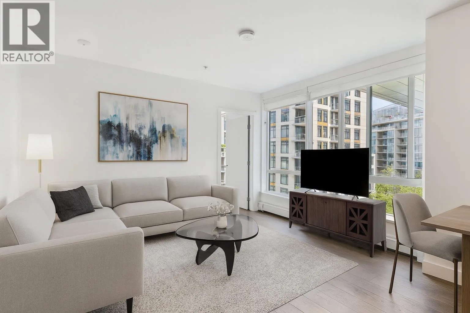 Discover urban living at its finest in this well maintained 2-bedroom + den, 1-bathroom condo with large pantry/storage at Residences at West. Tucked away on the quiet side of the building, this unit overlooks a tranquil courtyard, providing a peaceful retreat. Enjoy the convenience of 1 parking spot and 1 locker, along with pet-friendly policies allowing up to two pets (cats or dogs) weighing 40 lbs each. Located in the heart of Olympic Village, you're steps from shops, restaurants, parks, and recreational activities, with easy access to transit, the sea bus, and the scenic seawall. This well-maintained home features modern finishes, combining comfort and style for the ultimate lifestyle experience. Disclaimer: Photos virtually staged (id:27476)
