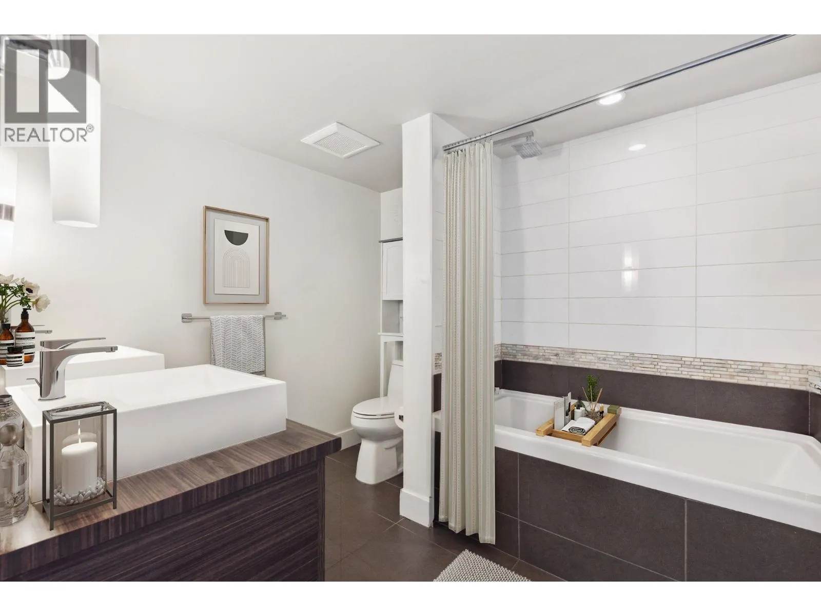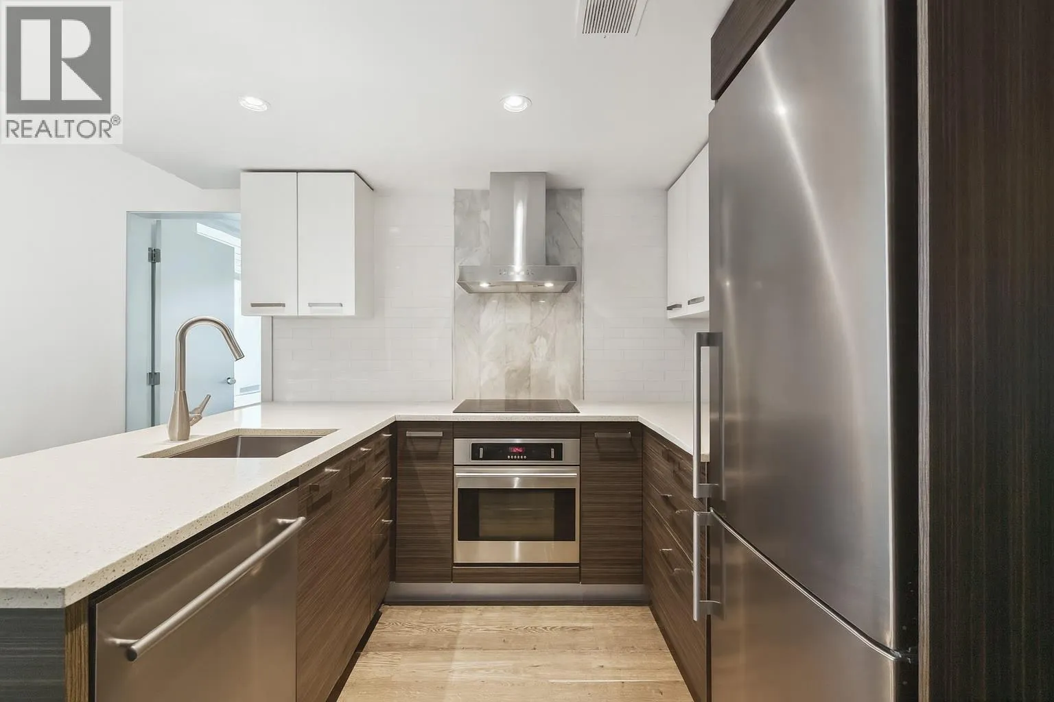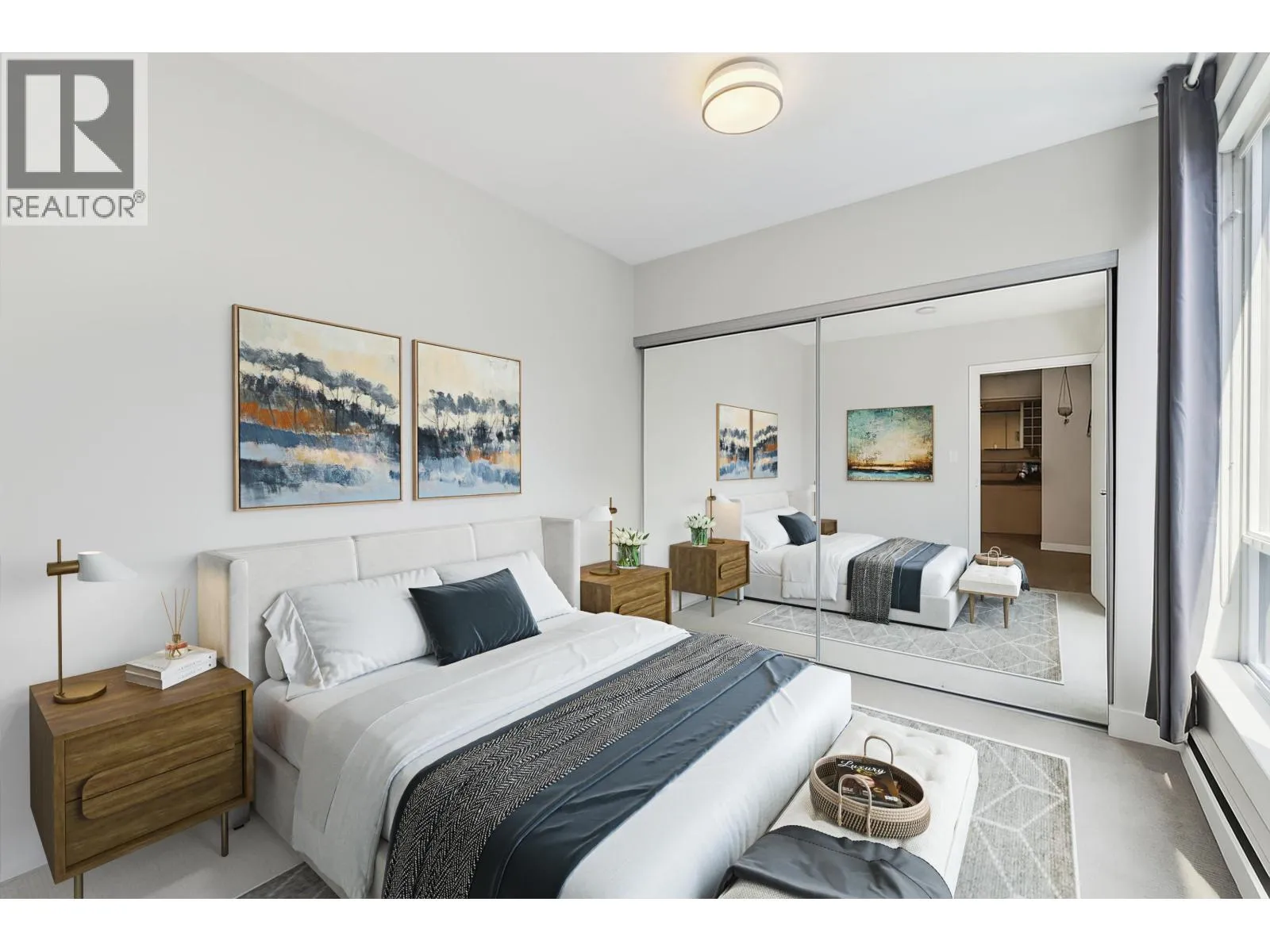 Discover urban living at its finest in this well maintained 2-bedroom + den, 1-bathroom condo with large pantry/storage at Residences at West. Tucked away on the quiet side of the building, this unit overlooks a tranquil courtyard, providing a peaceful retreat. Enjoy the convenience of 1 parking spot and 1 locker, along with pet-friendly policies allowing up to two pets (cats or dogs) weighing 40 lbs each. Located in the heart of Olympic Village, you're steps from shops, restaurants, parks, and recreational activities, with easy access to transit, the sea bus, and the scenic seawall. This well-maintained home features modern finishes, combining comfort and style for the ultimate lifestyle experience. Disclaimer: Photos virtually staged (id:27476)