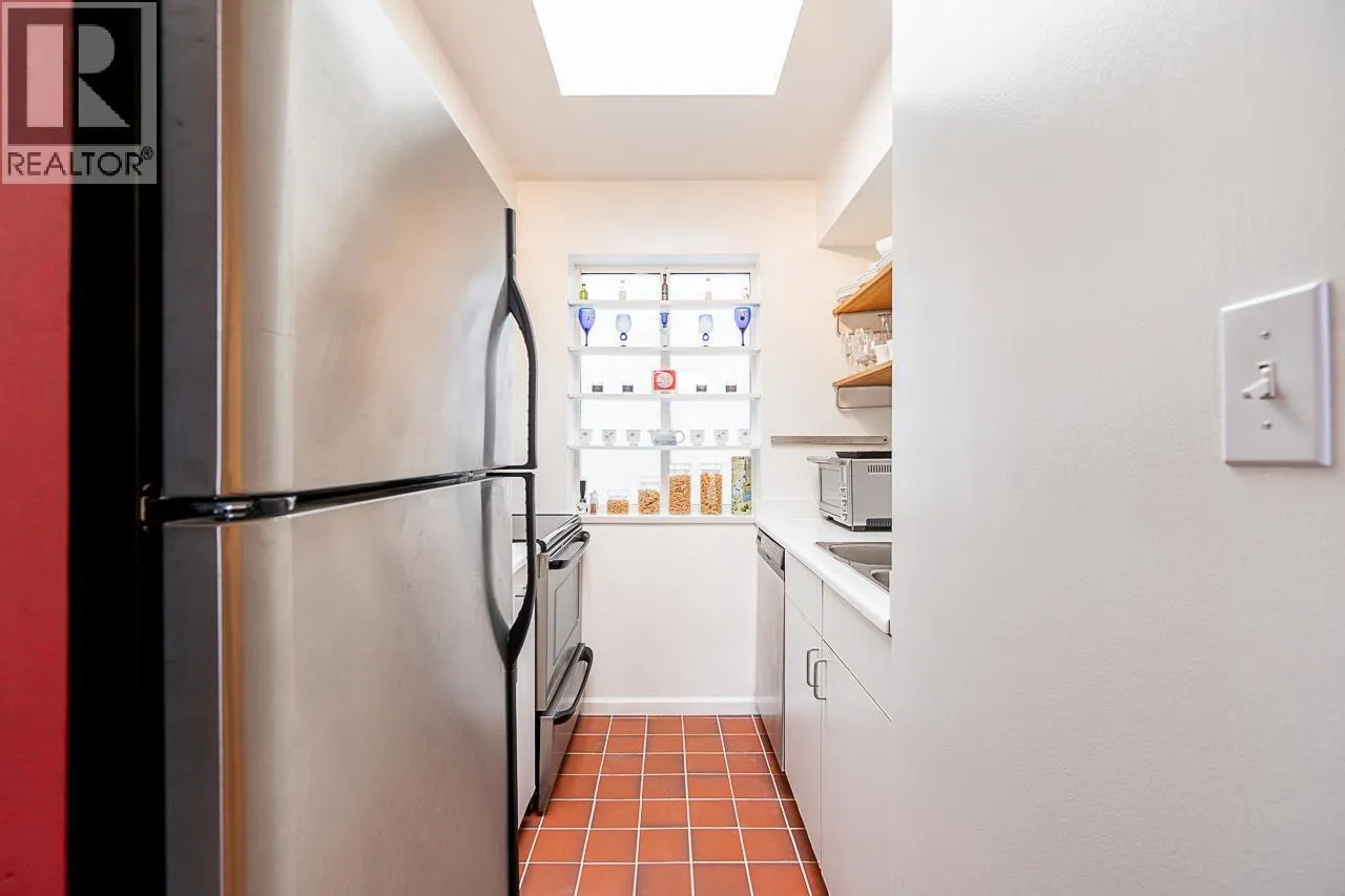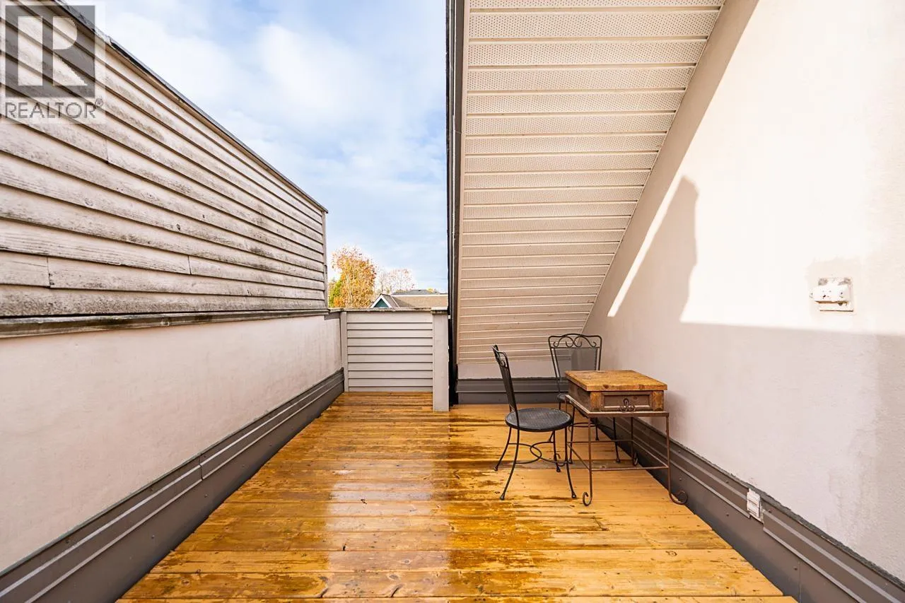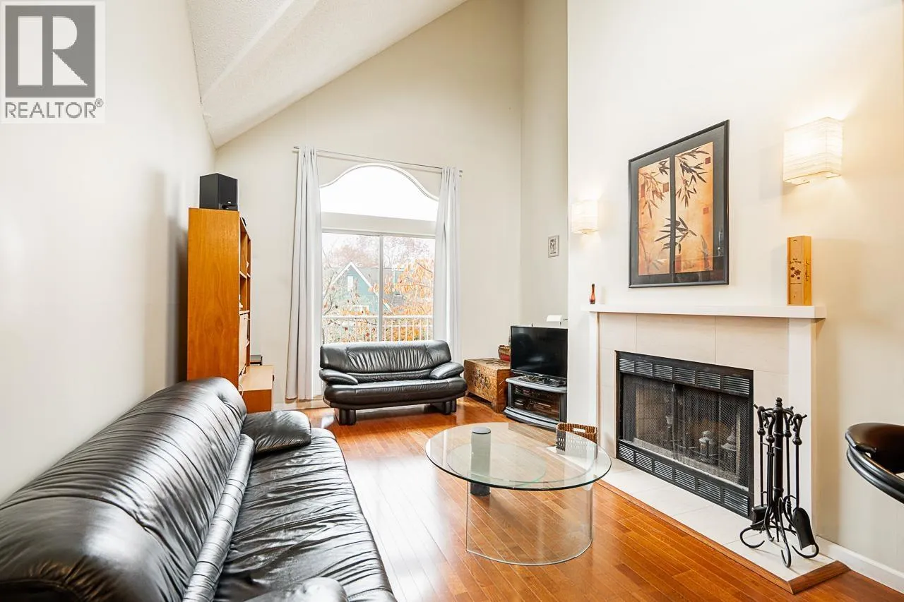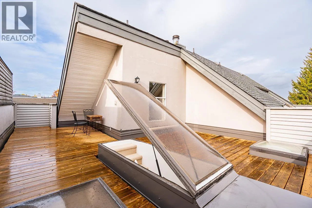 Stunning Top-Floor suite just one block from vibrant Cambie Village. Experience dramatic, light-filled living in this exceptional top-floor home featuring soaring vaulted ceilings and an open staircase leading to your private 432 sqft rooftop deck-the perfect space for entertaining or unwinding. The spacious living and dining areas are enhanced by engineered hardwood flooring, a cozy wood-burning fireplace, and a west-facing balcony that captures afternoon sun. The bright kitchen and bathroom each enjoy natural light from overhead skylights. Located on quiet Ash Street, this home offers unmatched walkability to shops, restaurants, parks, and located between 2 skytrain stations. A rare opportunity to own a unique, architecturally impressive home. (id:27476)