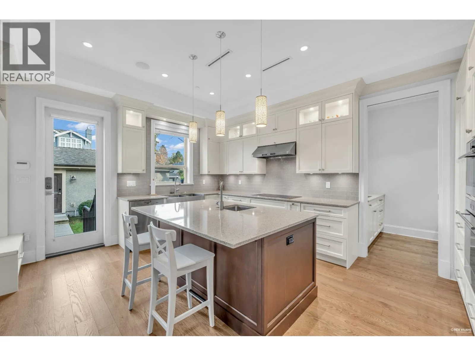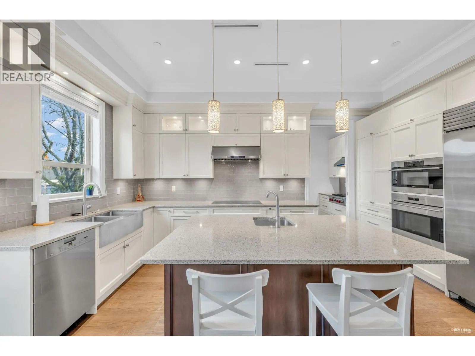 Welcome to this exceptional 6 bed, 6 bath European-style custom home in prestigious S.W. Marine on Vancouver´s Westside. Thoughtfully designed with 4 spacious ensuite bedrooms upstairs and a luxurious main level featuring an open kitchen + wok kitchen with VIATERA quartz, SUB-ZERO & WOLF appliances. Elegant living and family rooms flow seamlessly to a sun-soaked backyard. The flexible basement includes a rec room and suite potential. Premium IBC boiler, custom millwork, and home office complete the picture. Steps from McKechnie Elementary and in the Magee catchment. A rare Westside family home in a top school catchment! Open house 2-4pm Saturday Dec 6th (id:27476)