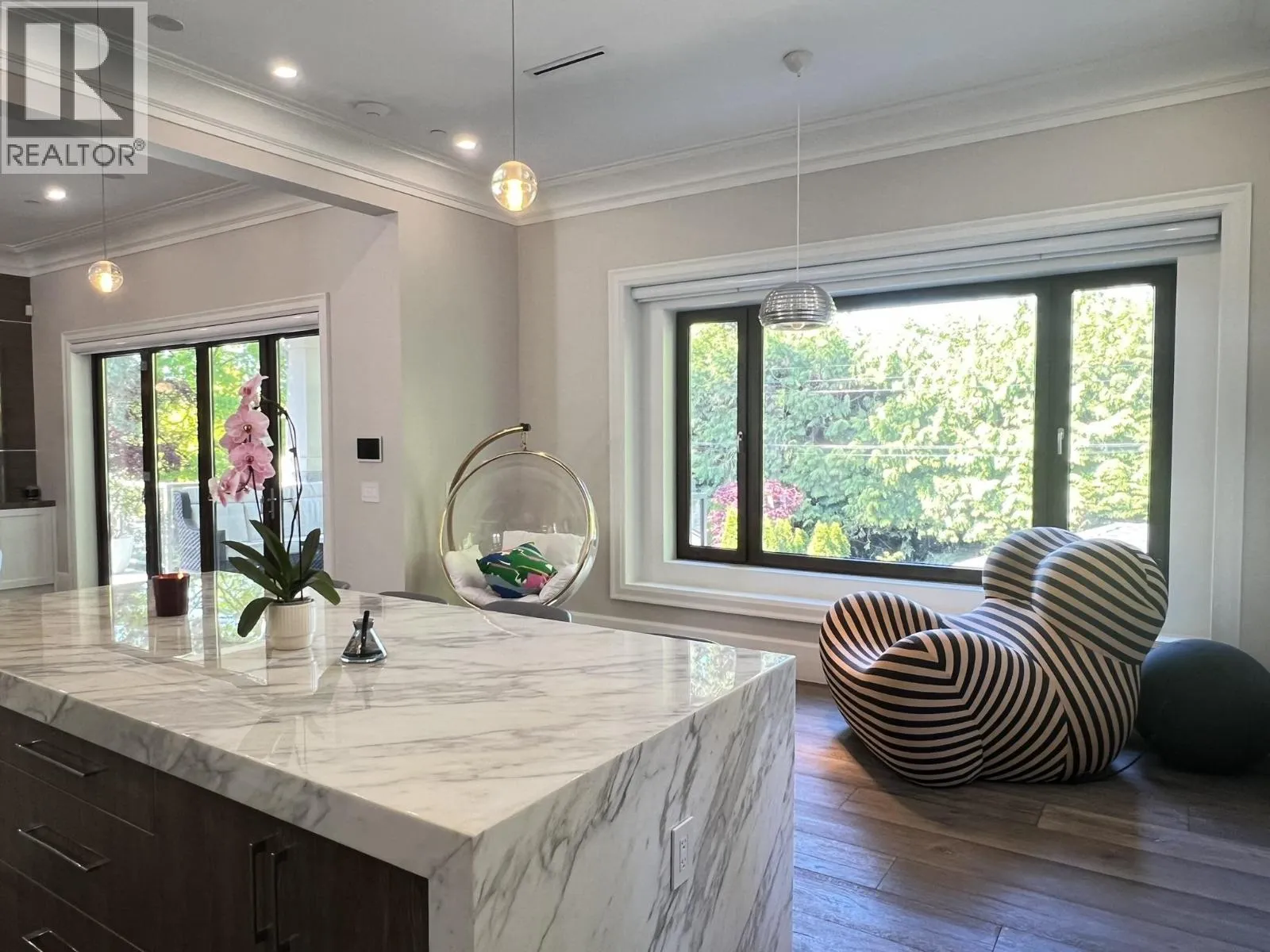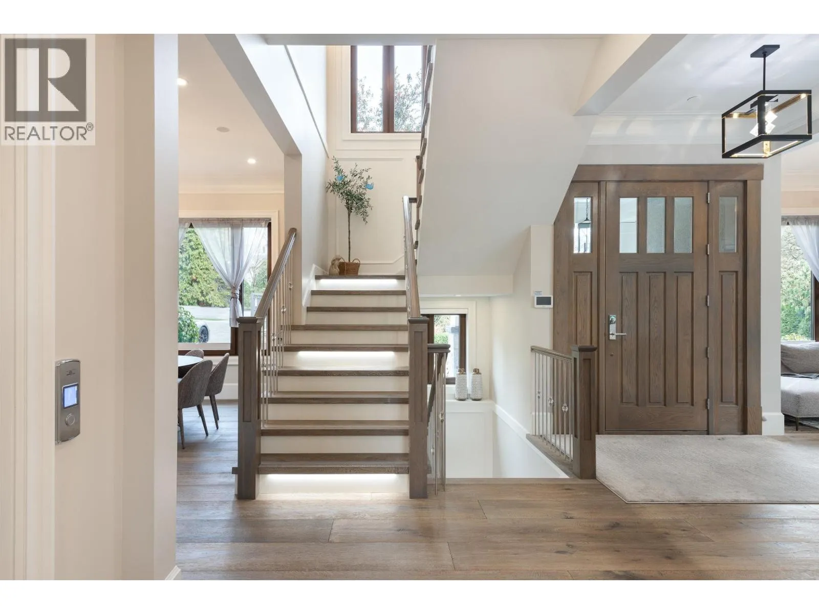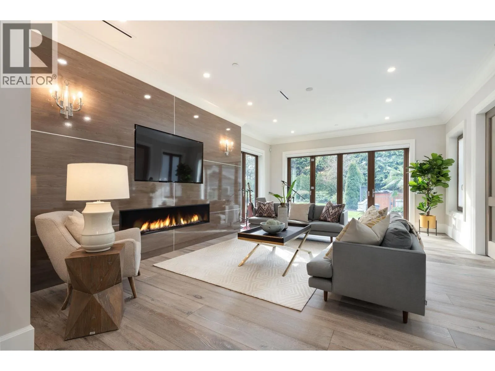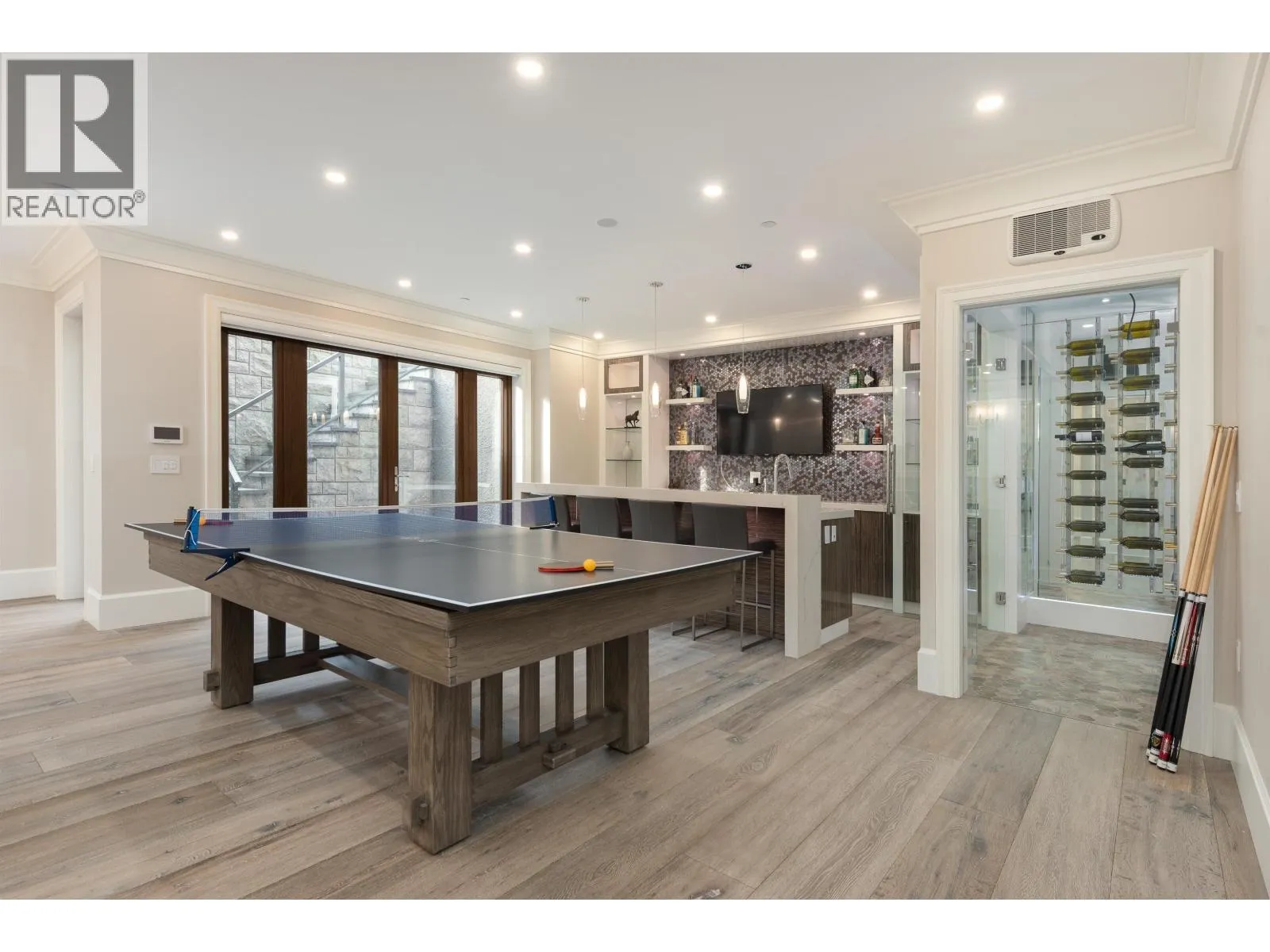 An extraordinary 4-level, 5-bedroom, 6.5-bathroom elevator served West Coast Modern masterpiece, nestled in the prestigious Shaughnessy neighborhood. As you step through the solid core front door, you are immediately welcomed into an expansive open-plan living space, elegantly appointed with Bocci chandeliers and exquisite White Oak solid wide plank flooring. The west-facing orientation and expansive turn-and-tilt windows fill the home with a generous flow of natural light, creating an inviting ambiance. The chef´s kitchen and wok kitchen showcase high-gloss cabinetry, Calcutta Gold waterfall countertops, and elite appliances, including a cappuccino machine and steam oven, designed for the most discerning culinary enthusiasts. Entertaining at this residence is effortless, generous living areas adorned with marble fireplaces, large patios that overlook beautifully manicured gardens, a state-of-the-art theatre room, a sophisticated wet bar, and a climate-controlled wine room that caters to the connoisseur. (id:27476)