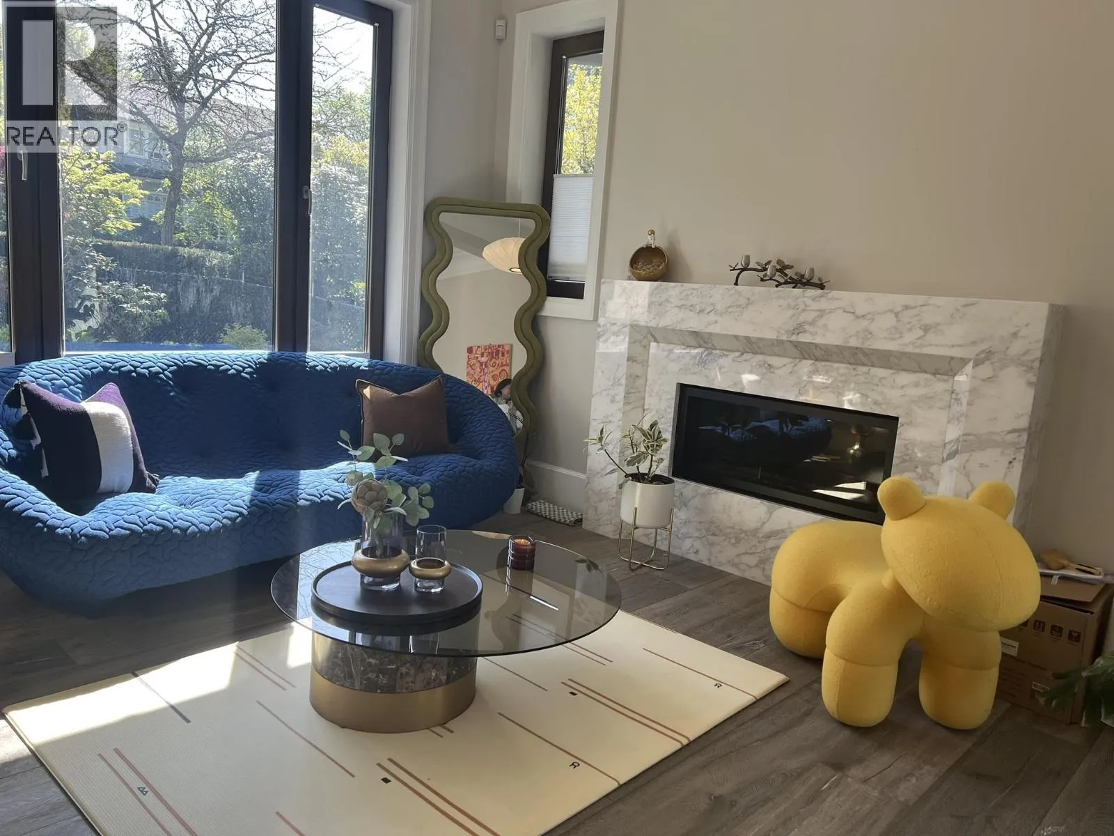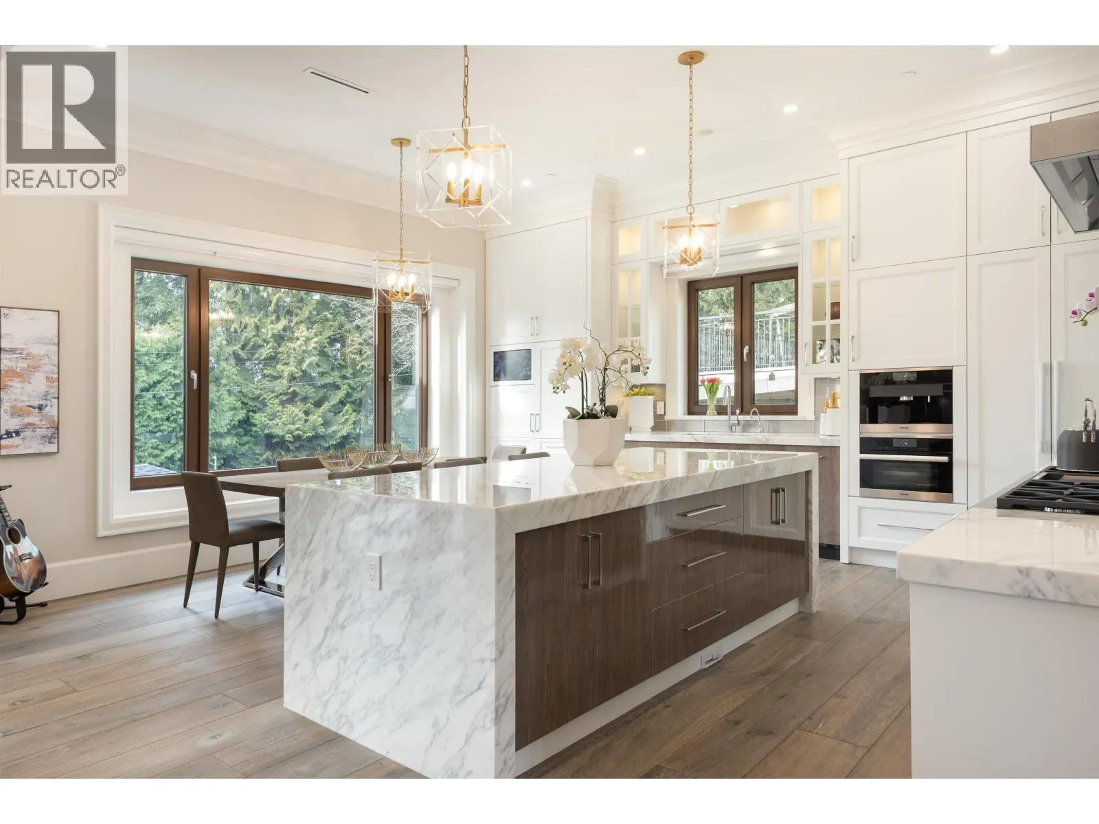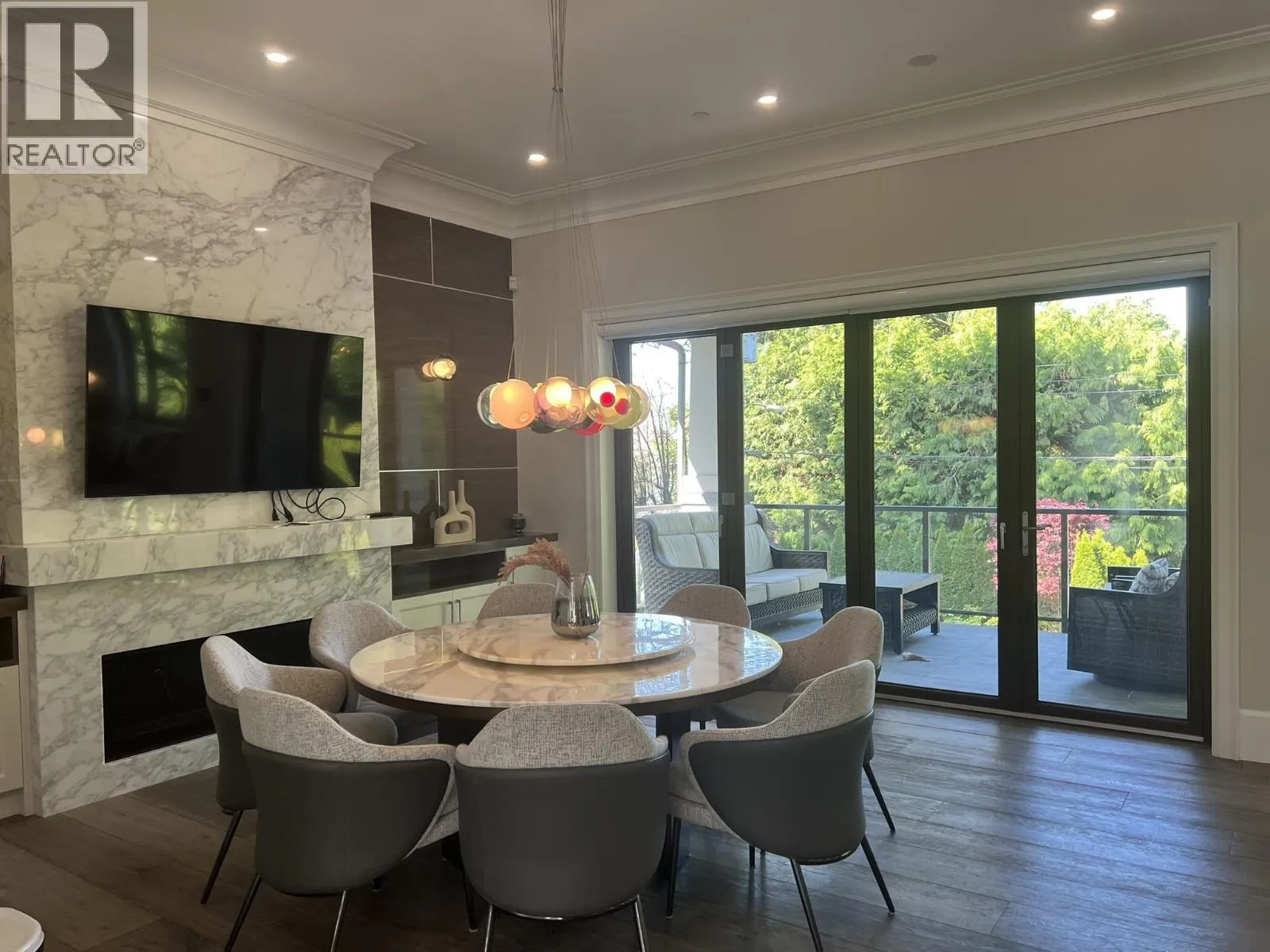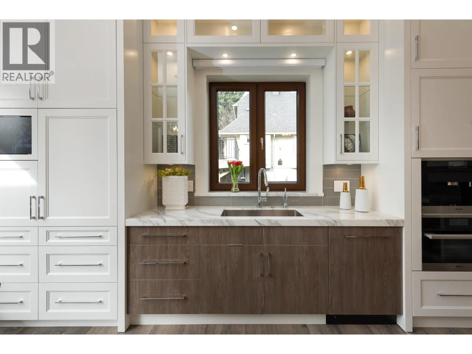 An extraordinary 4-level, 5-bedroom, 6.5-bathroom elevator served West Coast Modern masterpiece, nestled in the prestigious Shaughnessy neighborhood. As you step through the solid core front door, you are immediately welcomed into an expansive open-plan living space, elegantly appointed with Bocci chandeliers and exquisite White Oak solid wide plank flooring. The west-facing orientation and expansive turn-and-tilt windows fill the home with a generous flow of natural light, creating an inviting ambiance. The chef´s kitchen and wok kitchen showcase high-gloss cabinetry, Calcutta Gold waterfall countertops, and elite appliances, including a cappuccino machine and steam oven, designed for the most discerning culinary enthusiasts. Entertaining at this residence is effortless, generous living areas adorned with marble fireplaces, large patios that overlook beautifully manicured gardens, a state-of-the-art theatre room, a sophisticated wet bar, and a climate-controlled wine room that caters to the connoisseur. (id:27476)