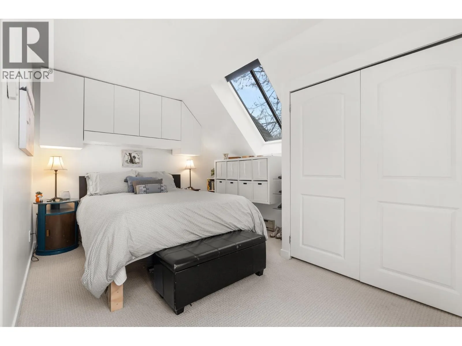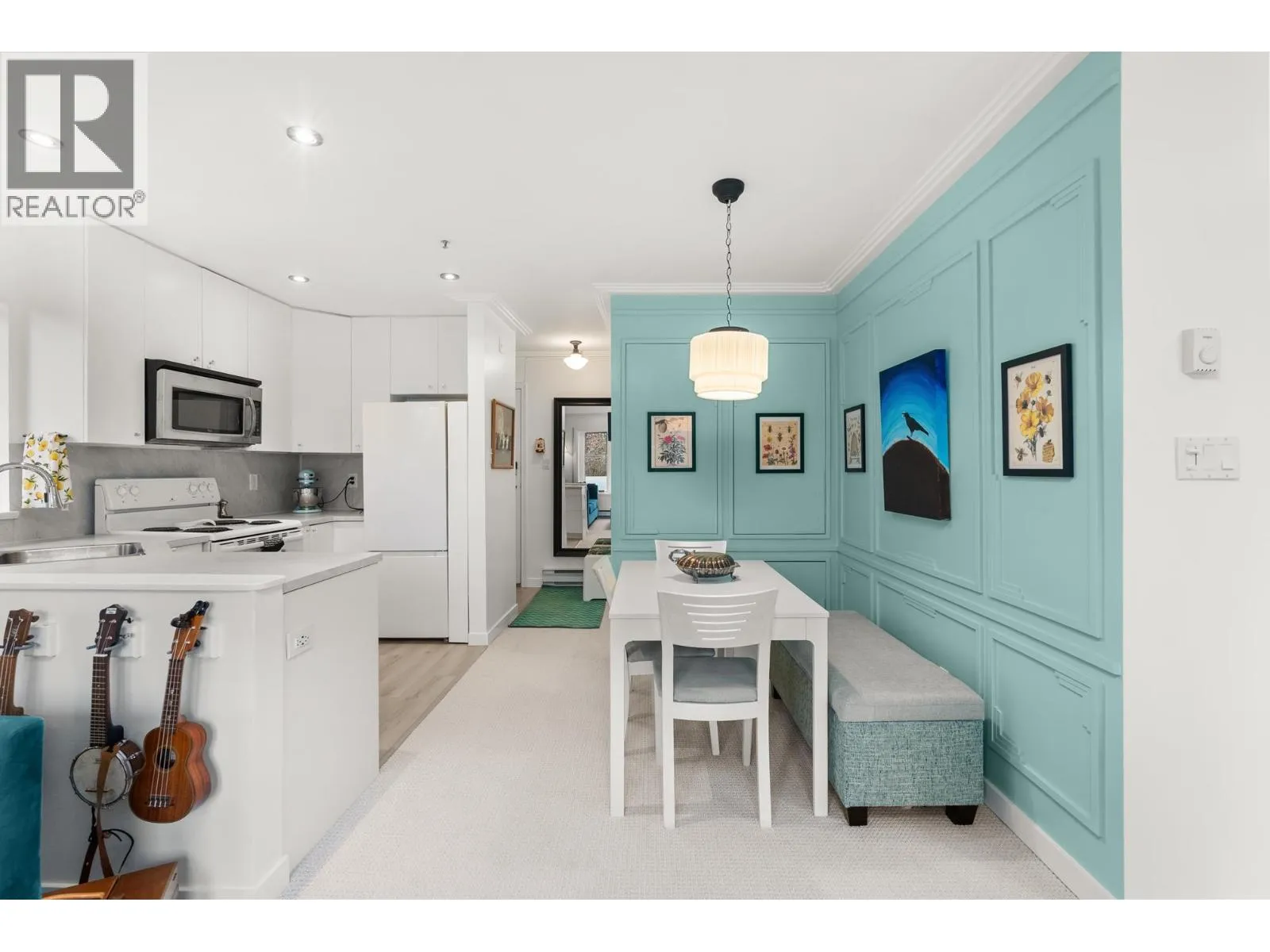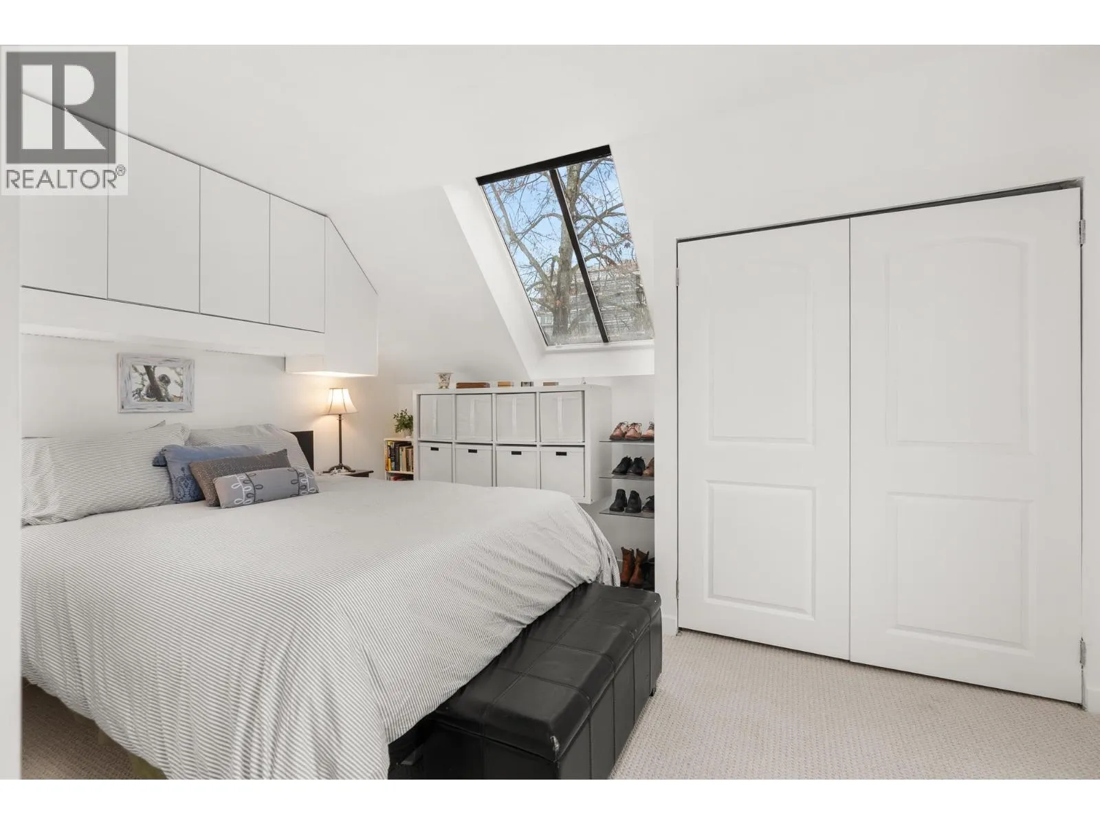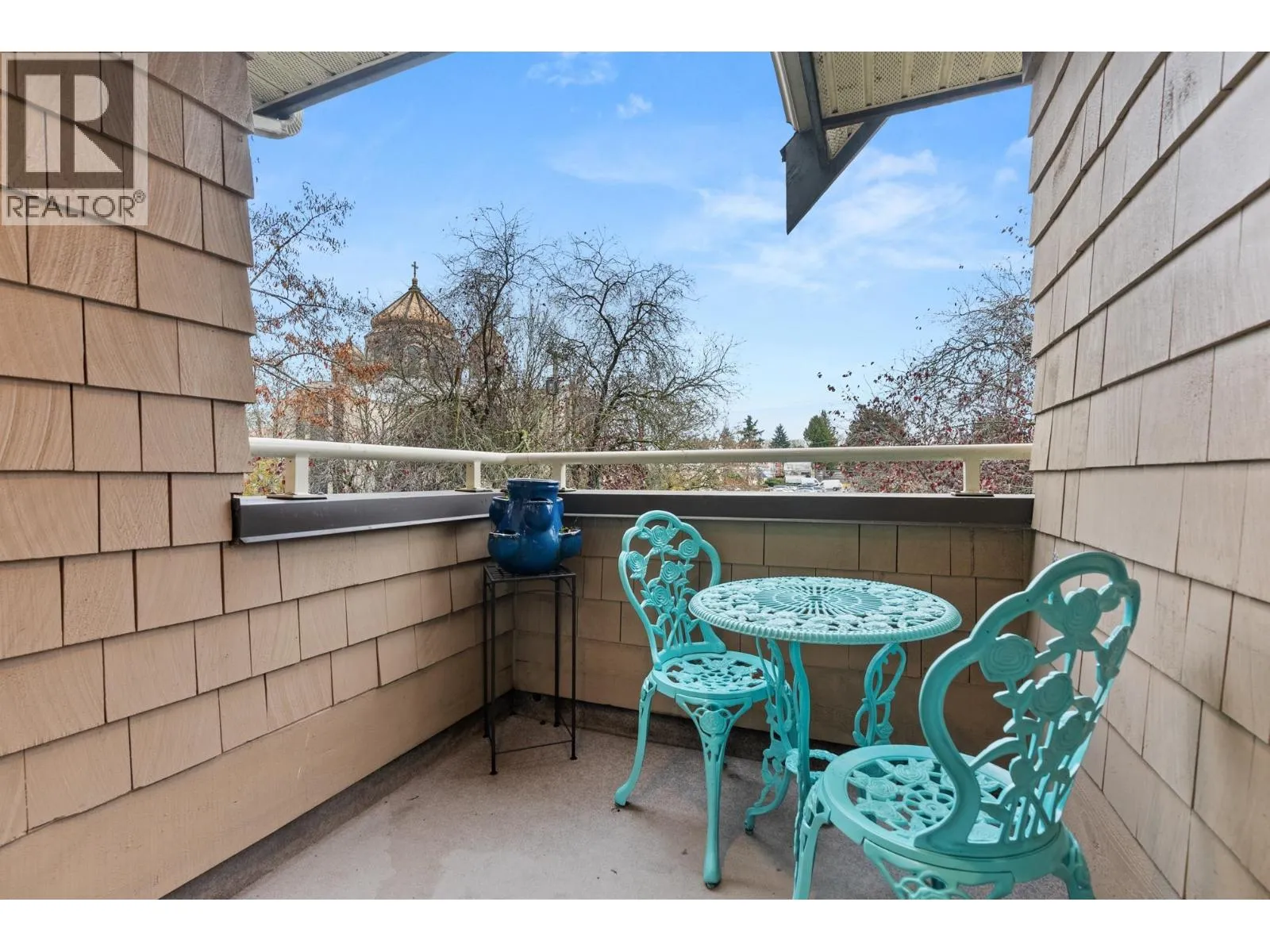 Perched on the top floor corner looking south, this open plan 1 bed & 1 bath almost 600 sqft apartment is in the sought after Connaught Estates. An abundance of windows on three sides plus a skylight in the bedroom floods this home with light. An open kitchen flows into the living and dining room, smart built ins throughout for added storage with crown moldings, smoothed out ceiling, newer carpet and kitchen flooring and paint. Enjoy the quiet with only one common wall, outlook to open green space across the street & far enough from traffic. With new elevators, recent work to balconies, this building is so well maintained. Steps to Cambie, the Canada & Broadway Subway Line, VGH, shops, restaurants and all the benefits of Fairview & the Cambie Corridor. (id:27476)