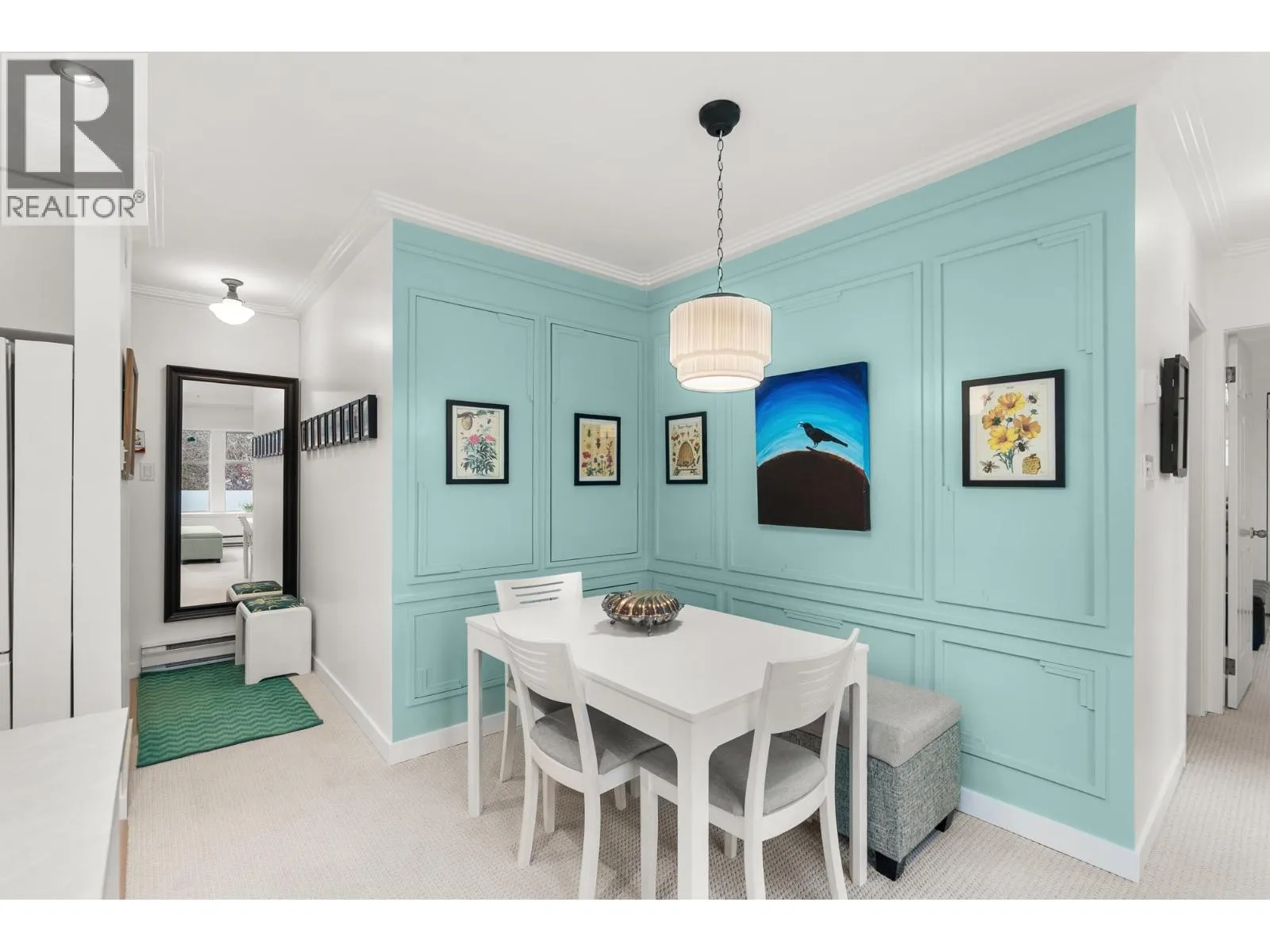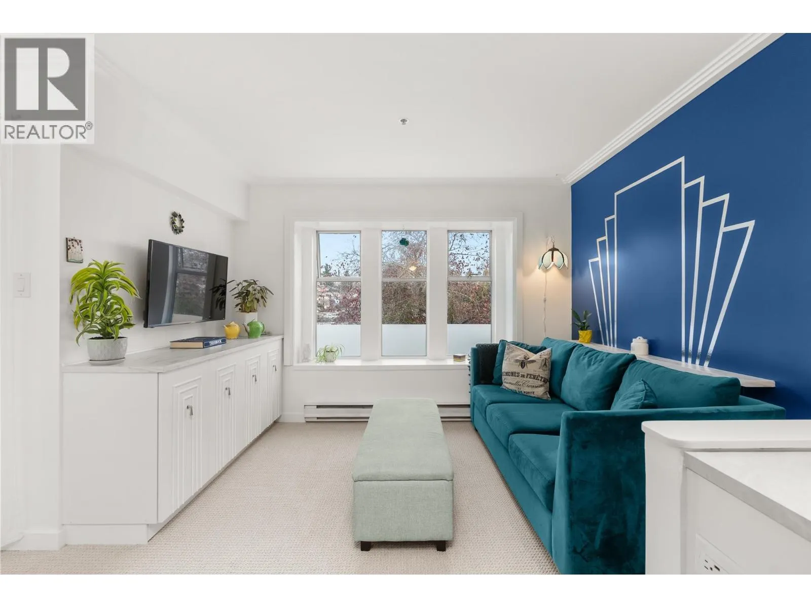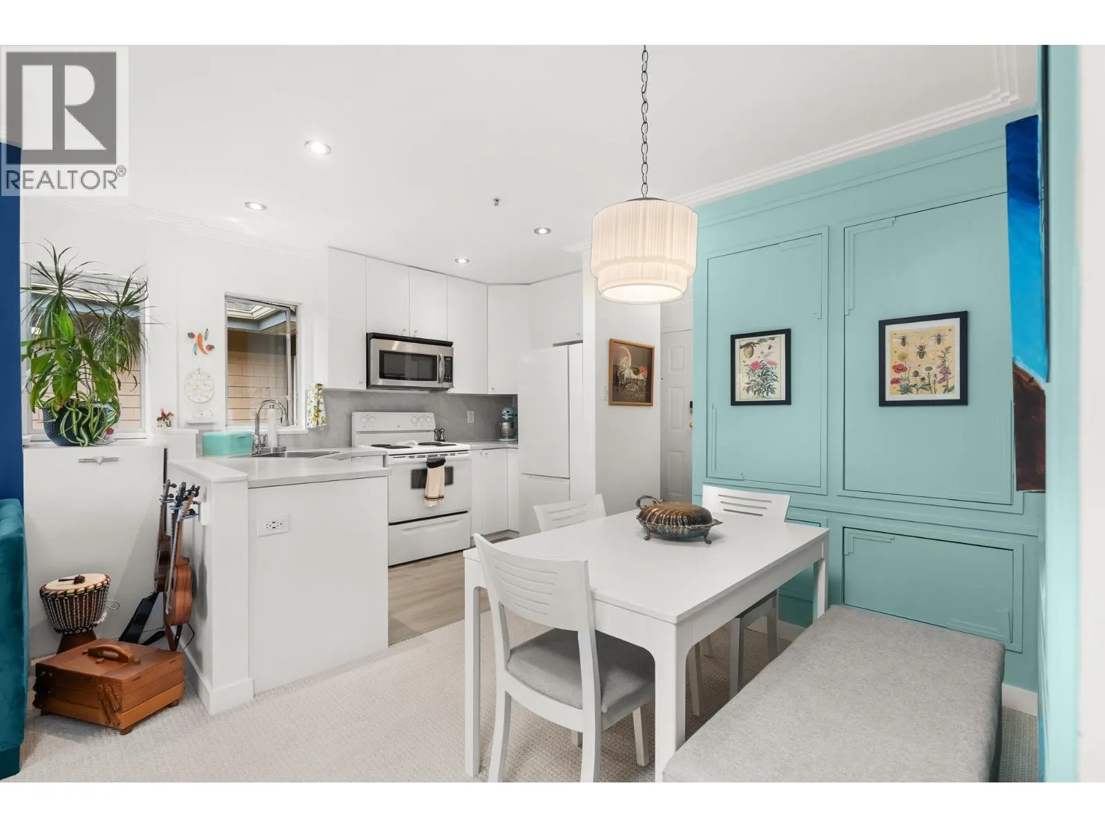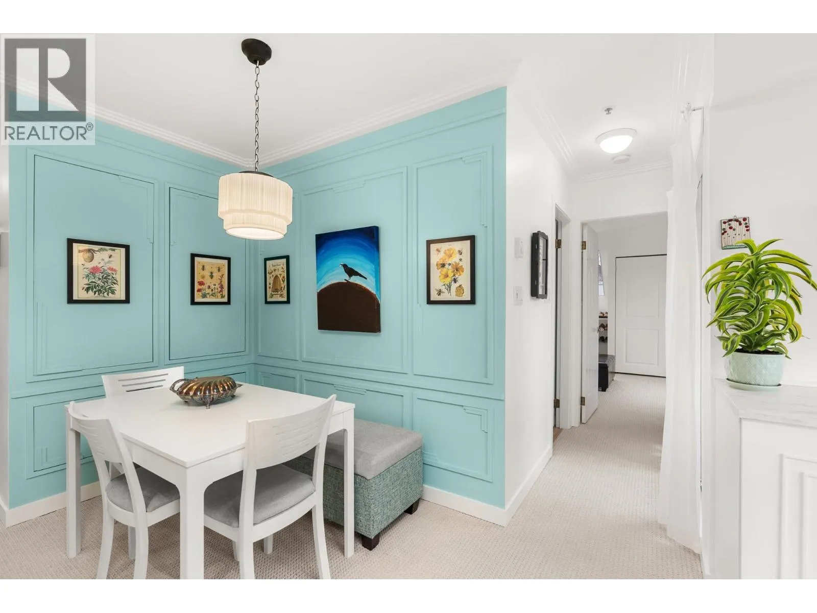 Perched on the top floor corner looking south, this open plan 1 bed & 1 bath almost 600 sqft apartment is in the sought after Connaught Estates. An abundance of windows on three sides plus a skylight in the bedroom floods this home with light. An open kitchen flows into the living and dining room, smart built ins throughout for added storage with crown moldings, smoothed out ceiling, newer carpet and kitchen flooring and paint. Enjoy the quiet with only one common wall, outlook to open green space across the street & far enough from traffic. With new elevators, recent work to balconies, this building is so well maintained. Steps to Cambie, the Canada & Broadway Subway Line, VGH, shops, restaurants and all the benefits of Fairview & the Cambie Corridor. (id:27476)